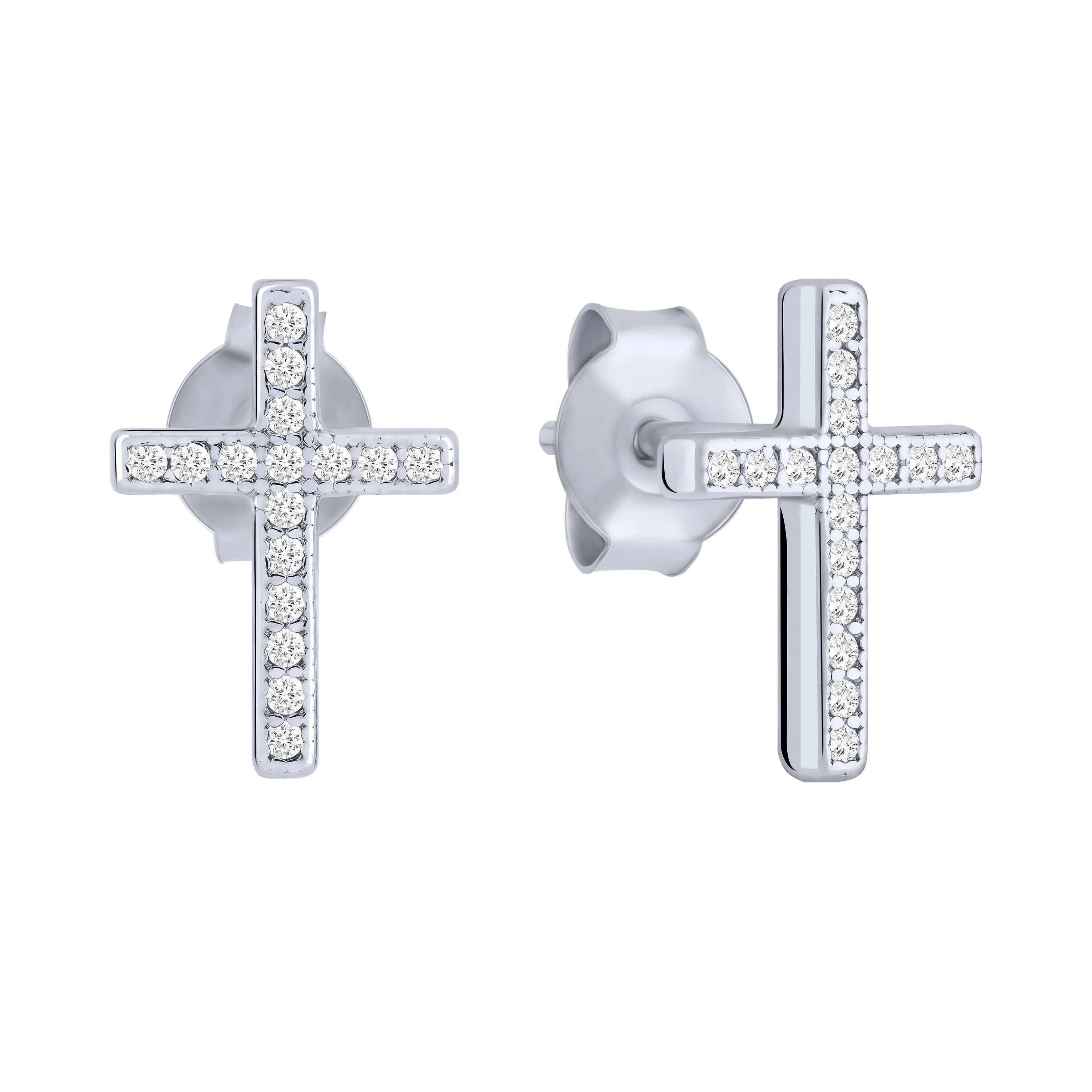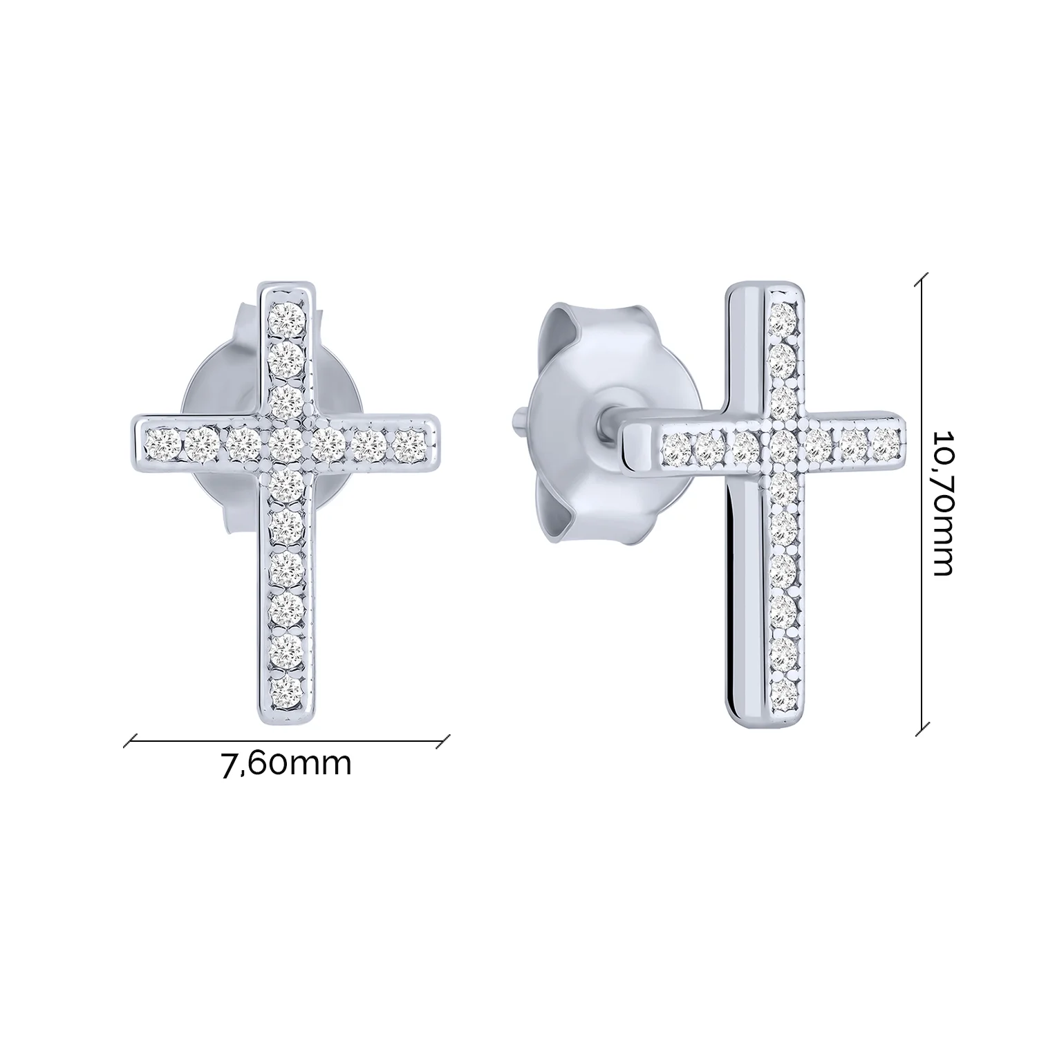 Срібні сережки-пусети "Хрестик" з фіанітами - 2090531