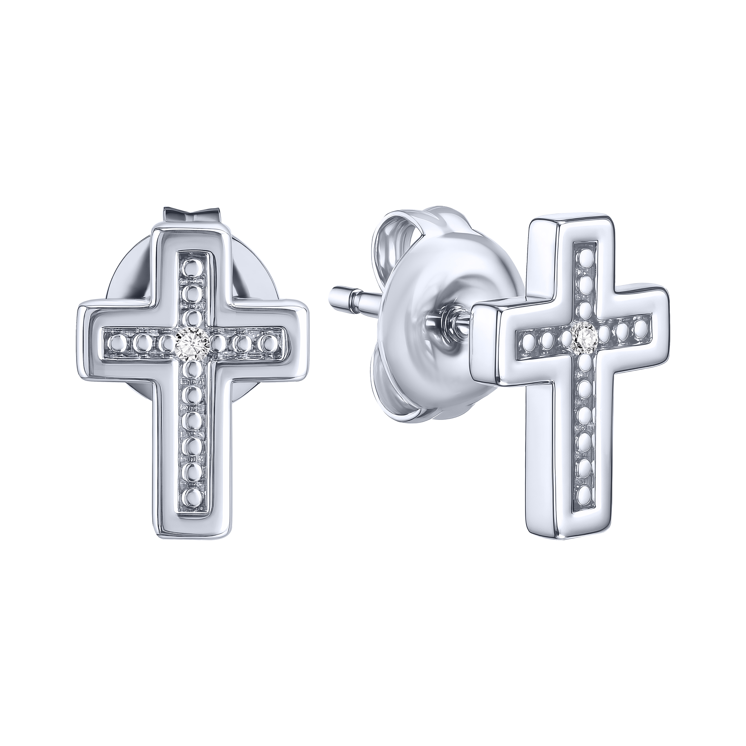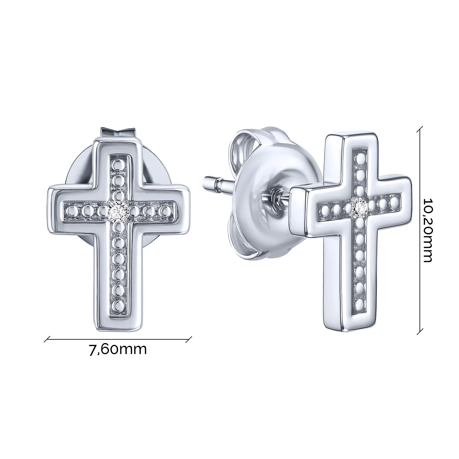 Срібні сережки-пусети "Хрестик" з фіанітом - 2159983