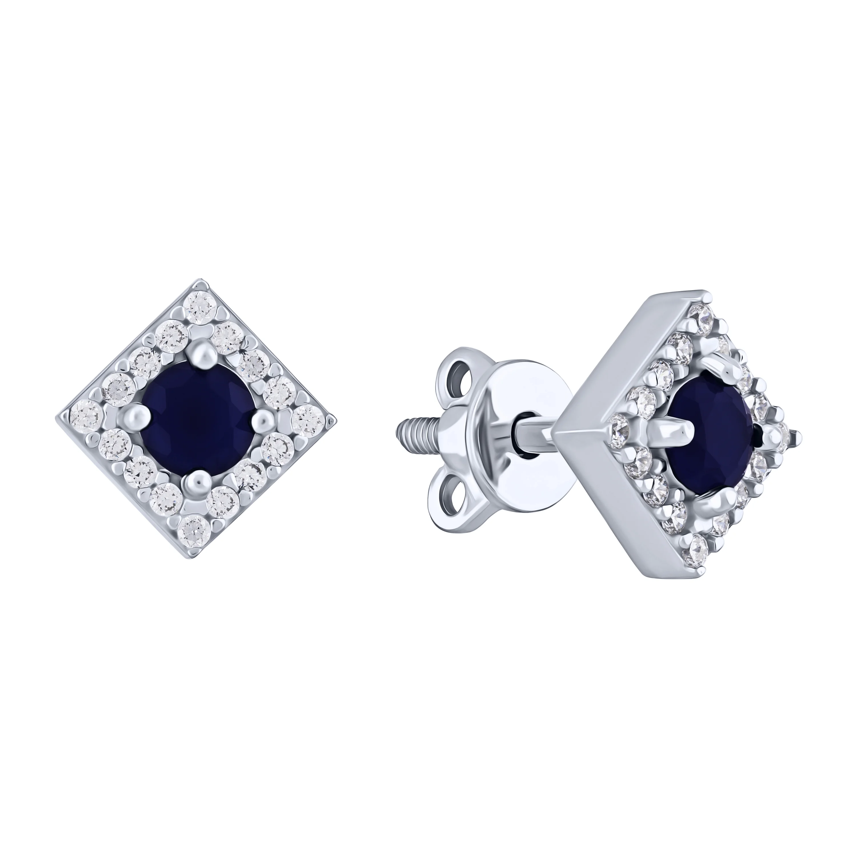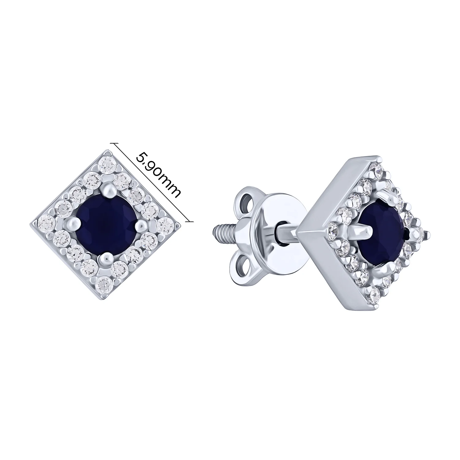 Срібні Сережки-пусети "Квадрат" з фіанітами - 2138053