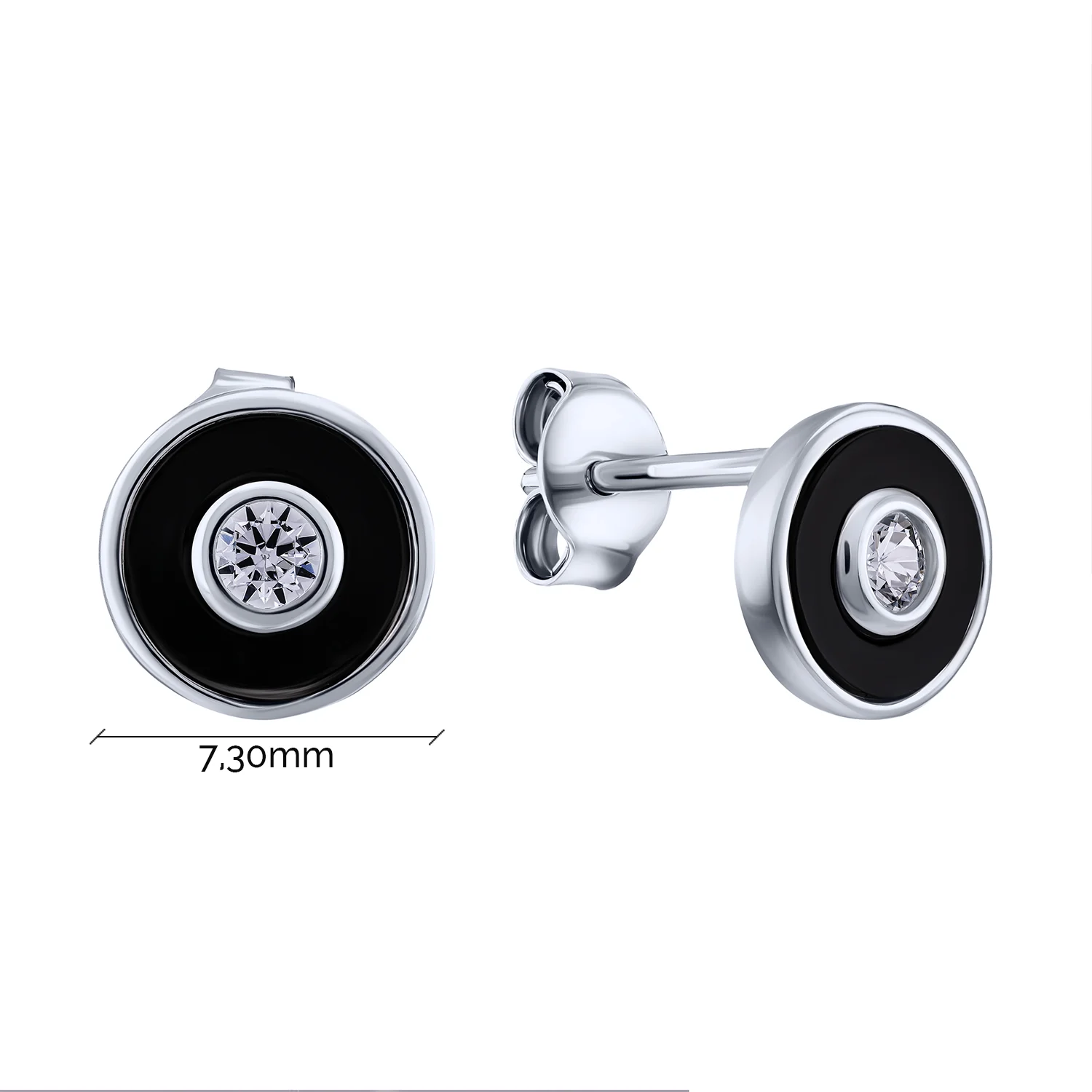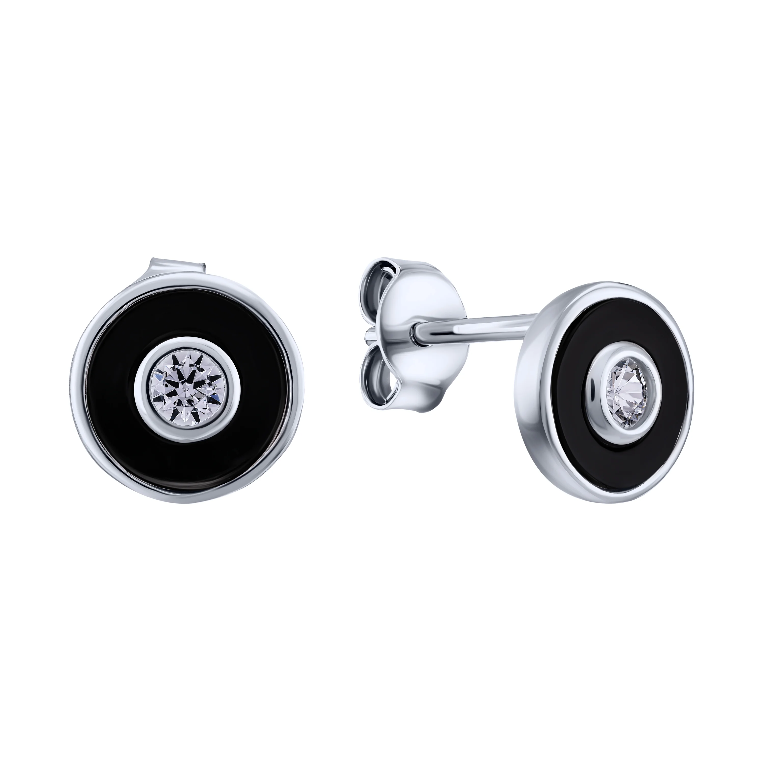 Срібні сережки-пусети з фіанітом та емаллю - 2095689