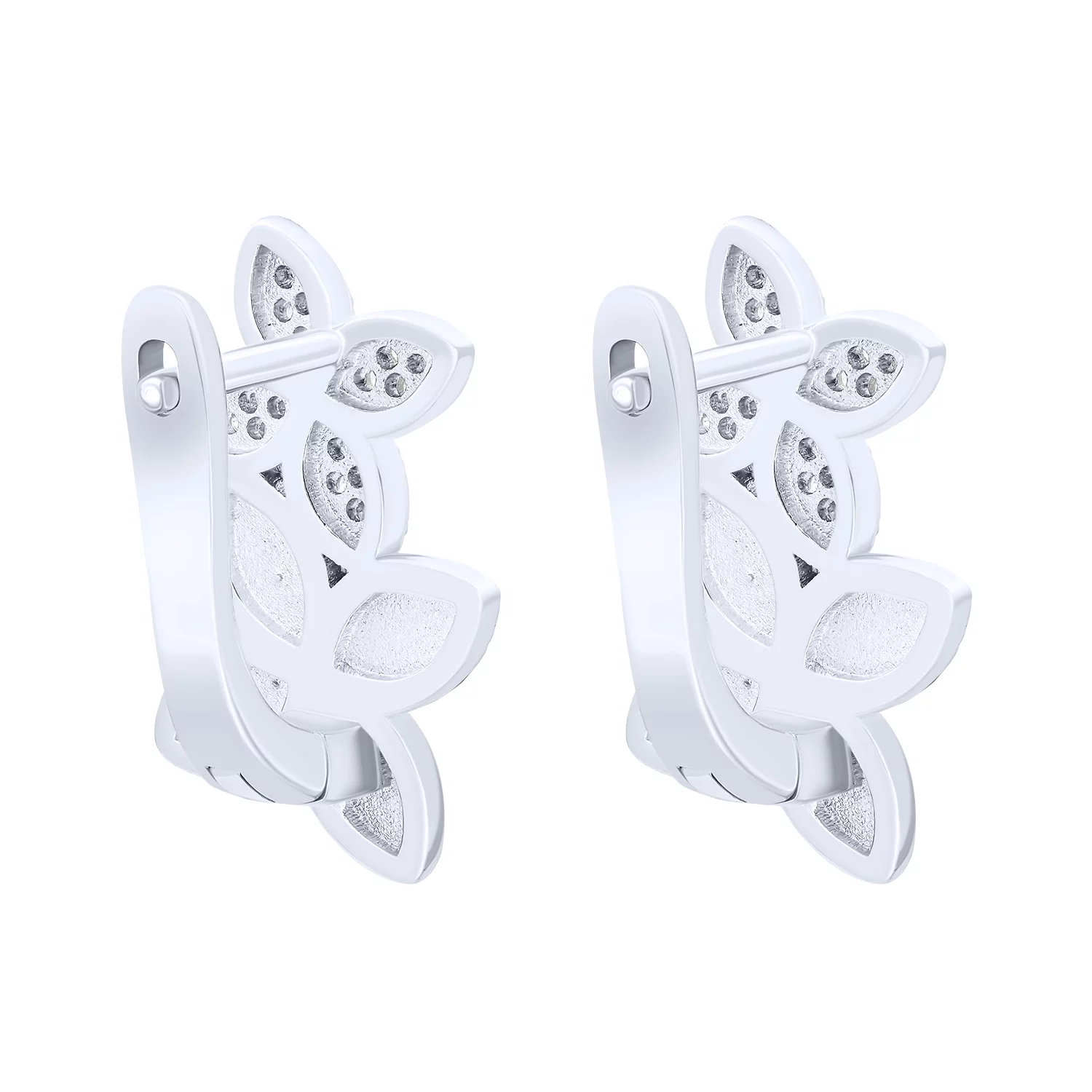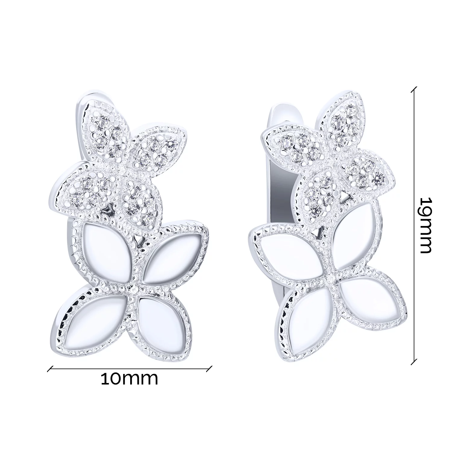 Стильні сережки-гвоздики "Флора" з червоного золота з емаллю та фіанітом - 1927691