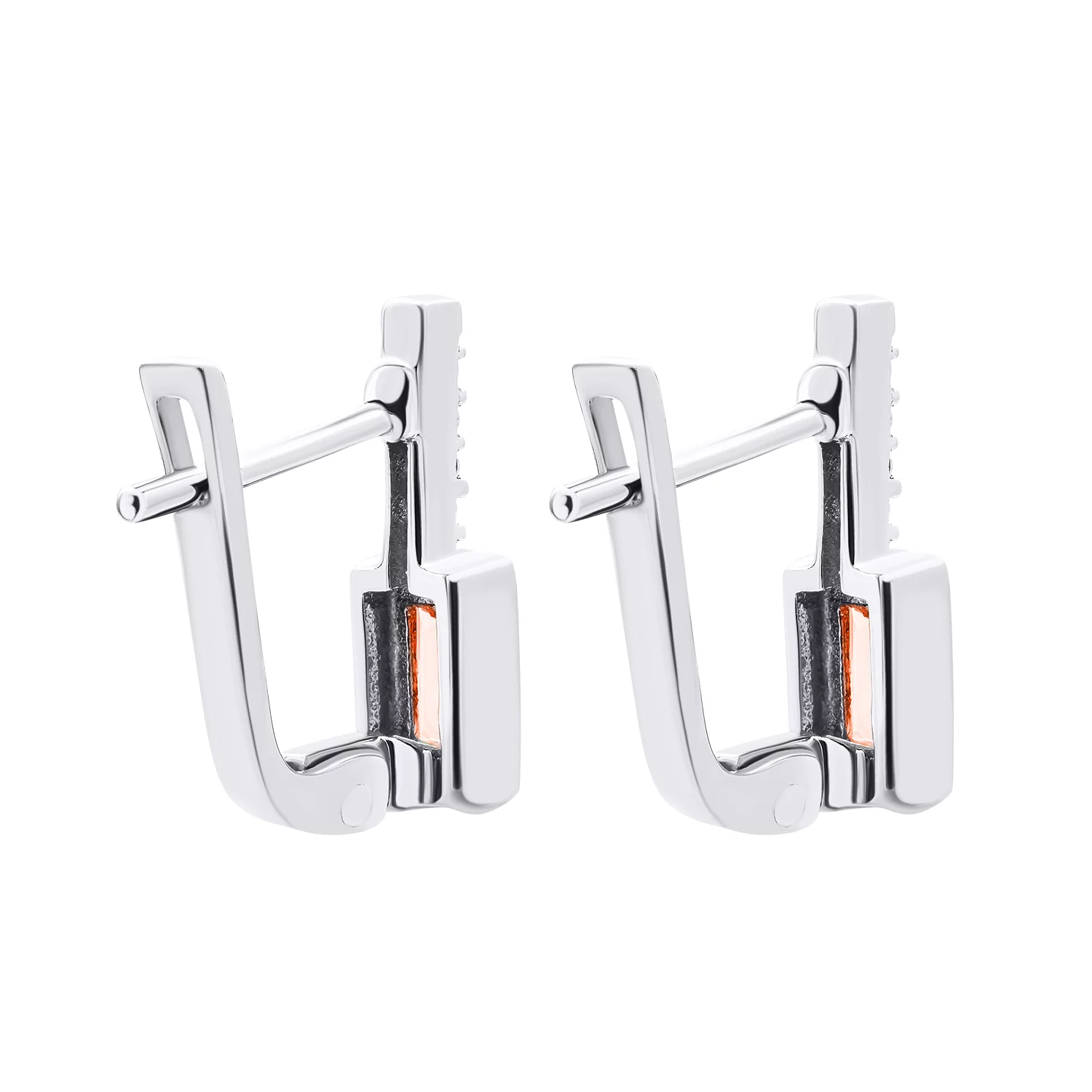 Сережки зі срібла з підвісом "Пантера" з альпінітами та фіанітами - 1809813