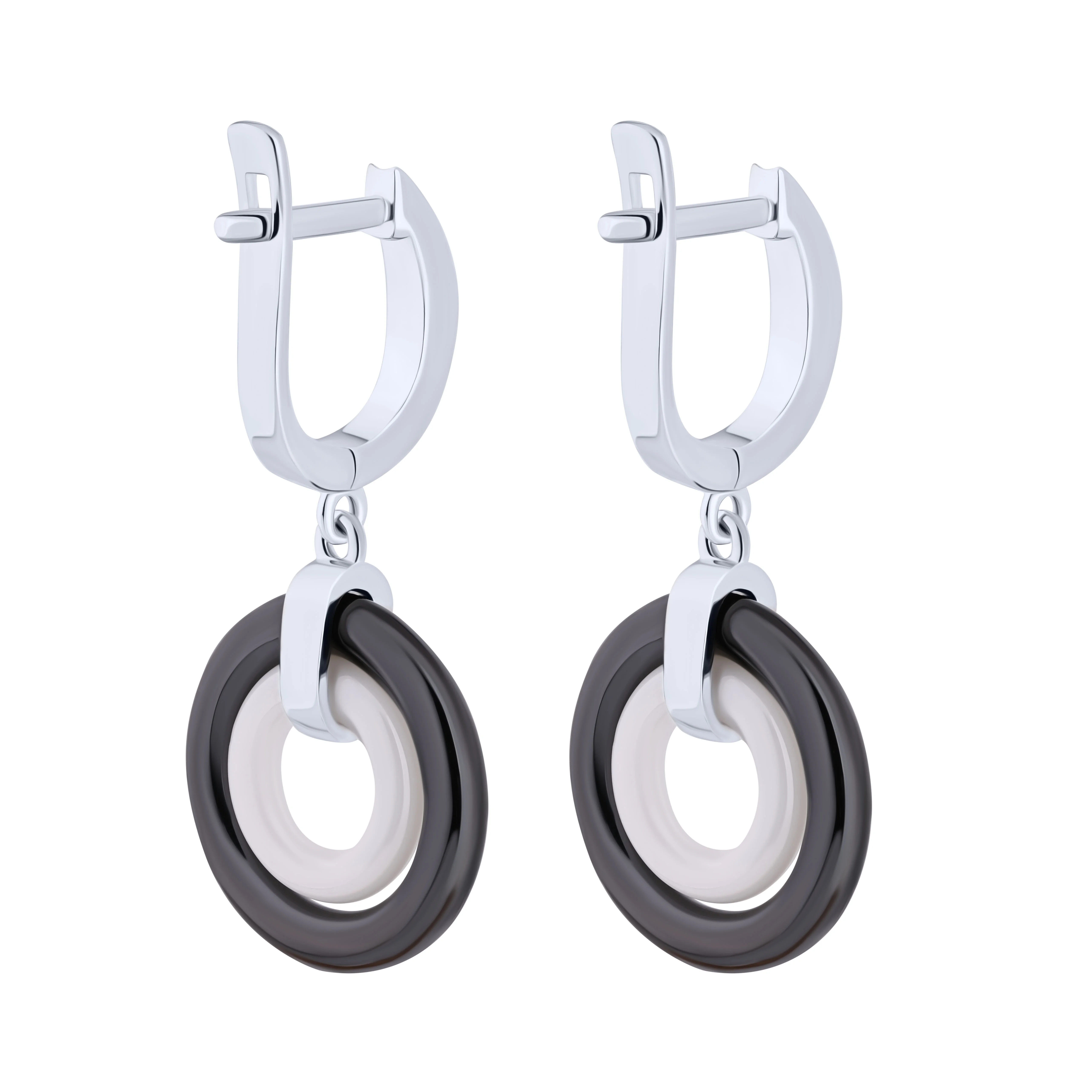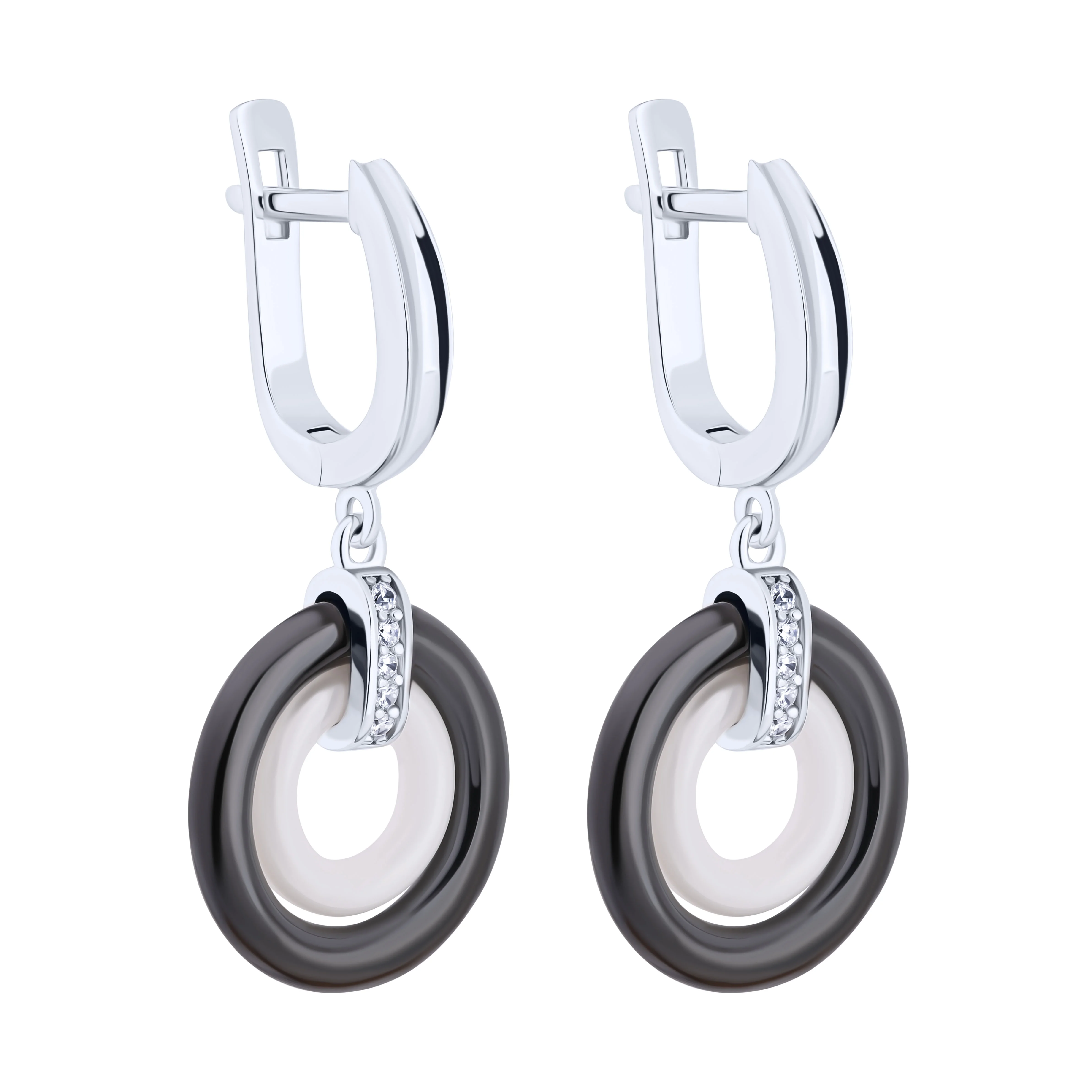 Срібні сережки з підвісами із кераміки та з фіанітами - 2149478