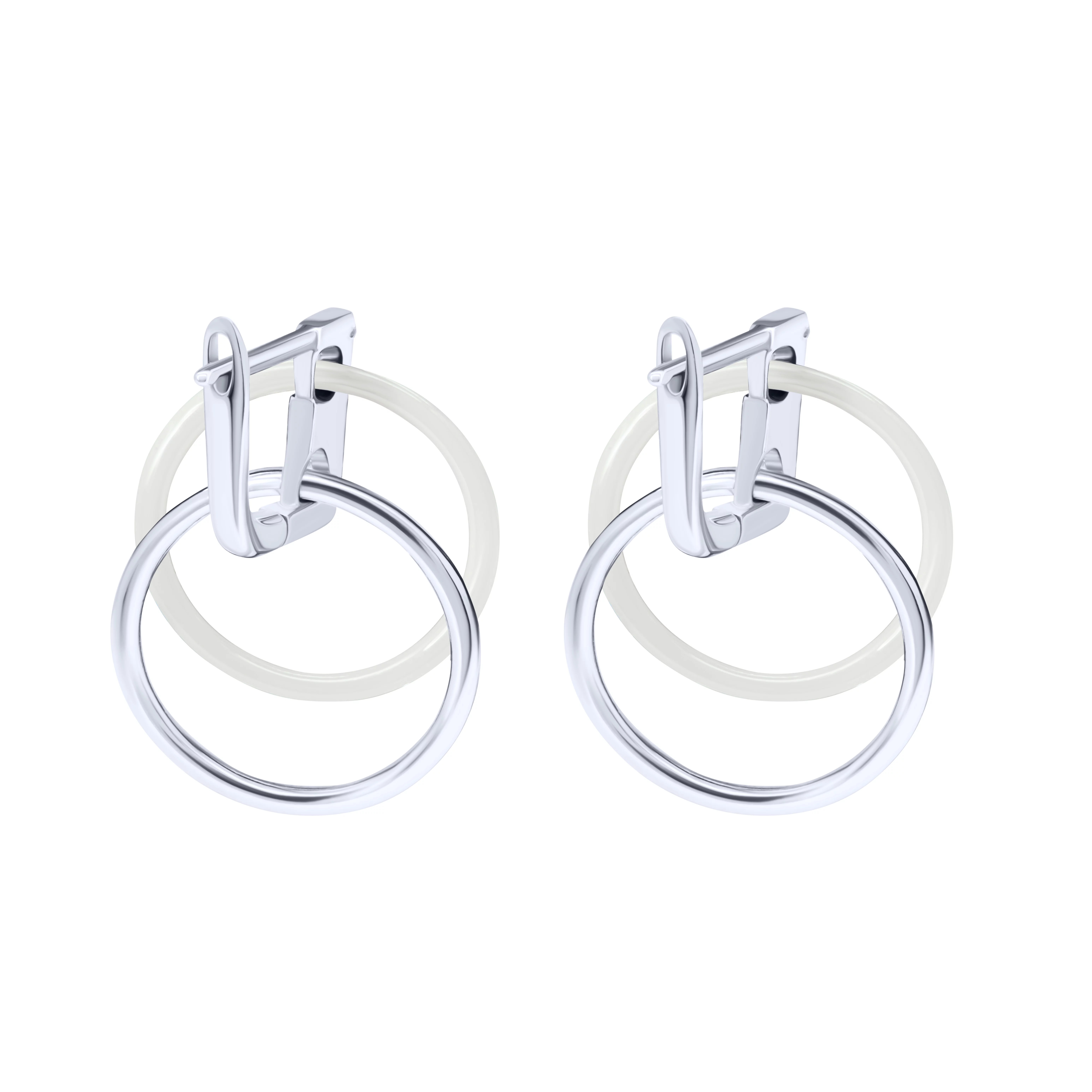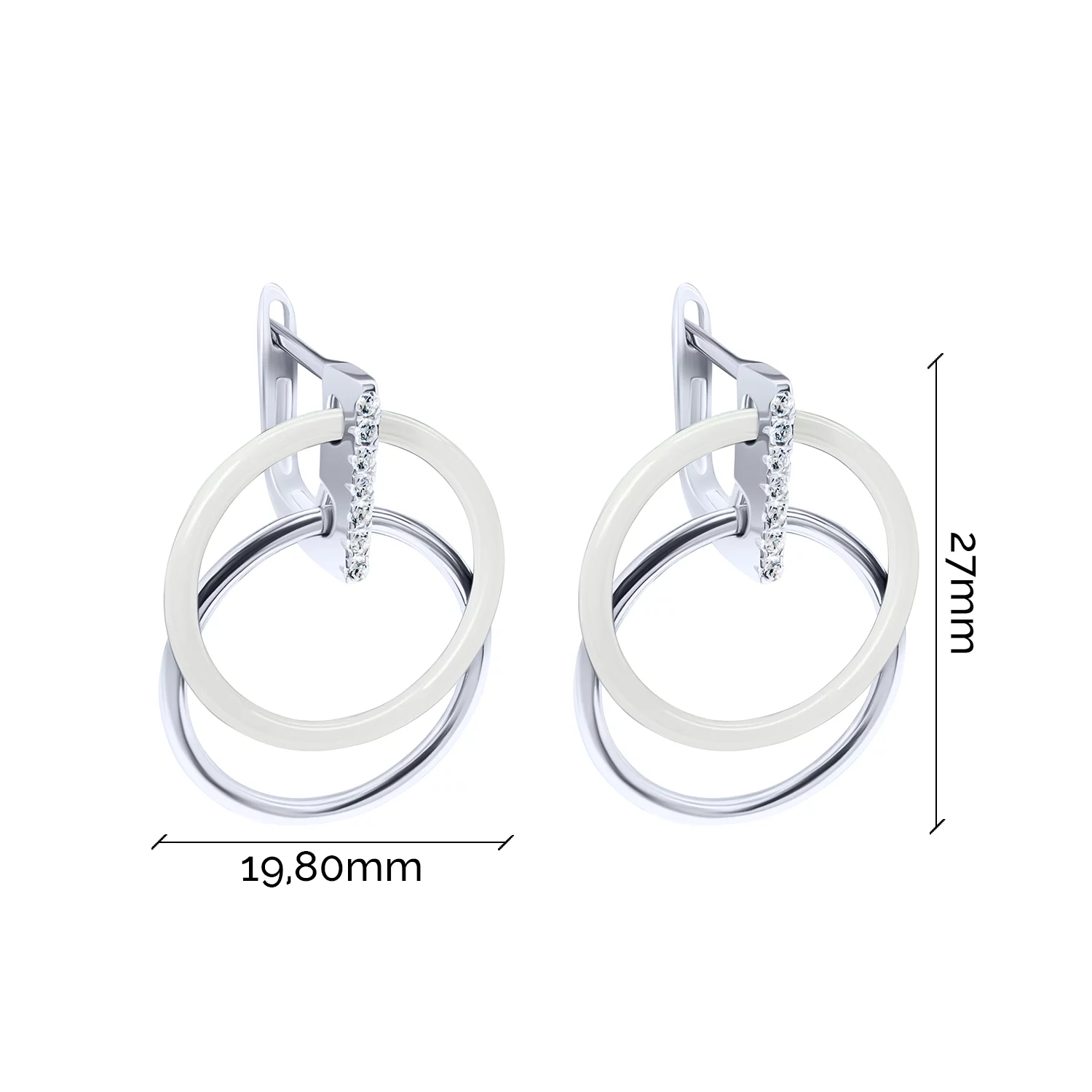Сережки зі срібла з підвісами "Переплетення Кілець" з фіанітами - 968613
