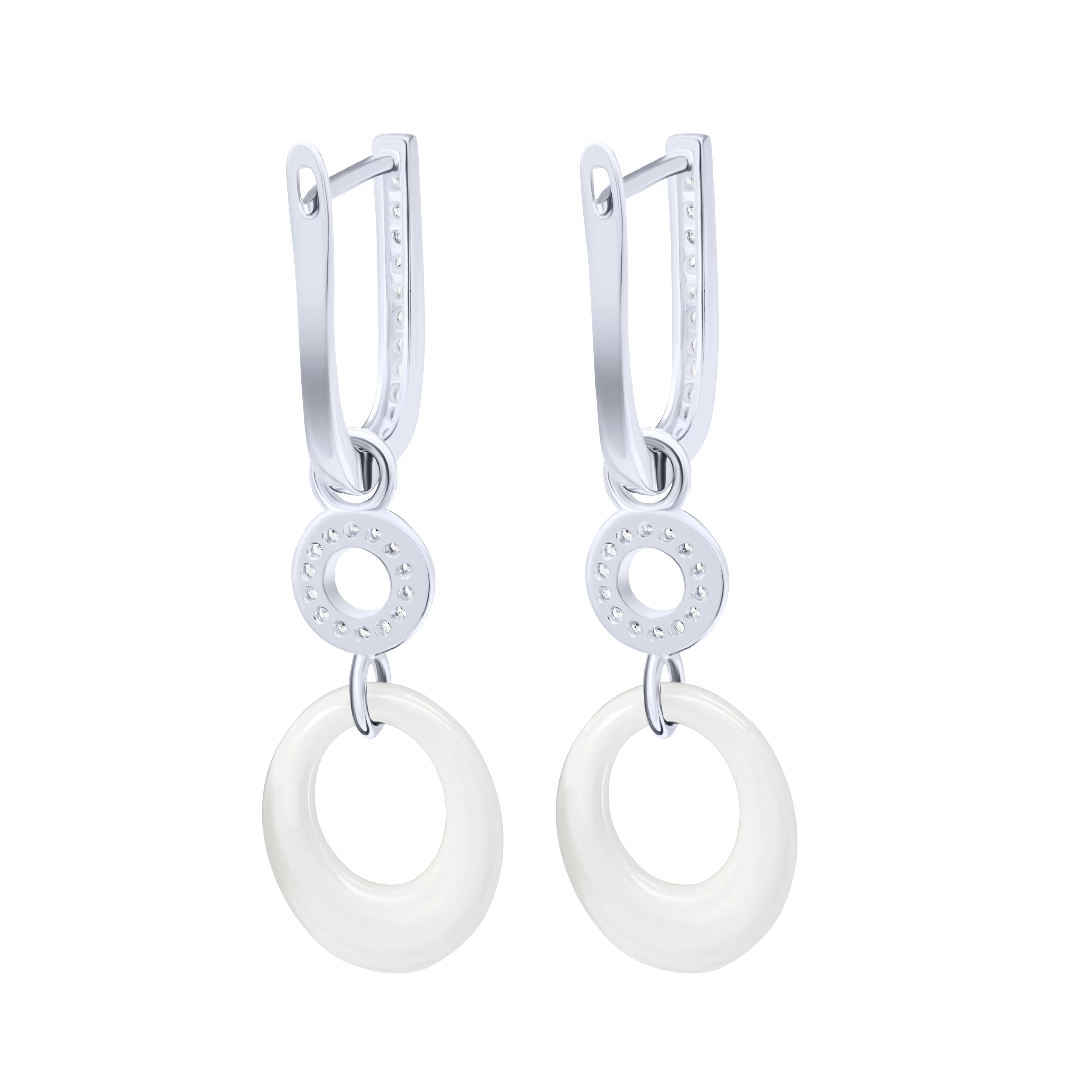 Сережки зі срібла з підвісами "Переплетення Кілець" з фіанітами - 968613