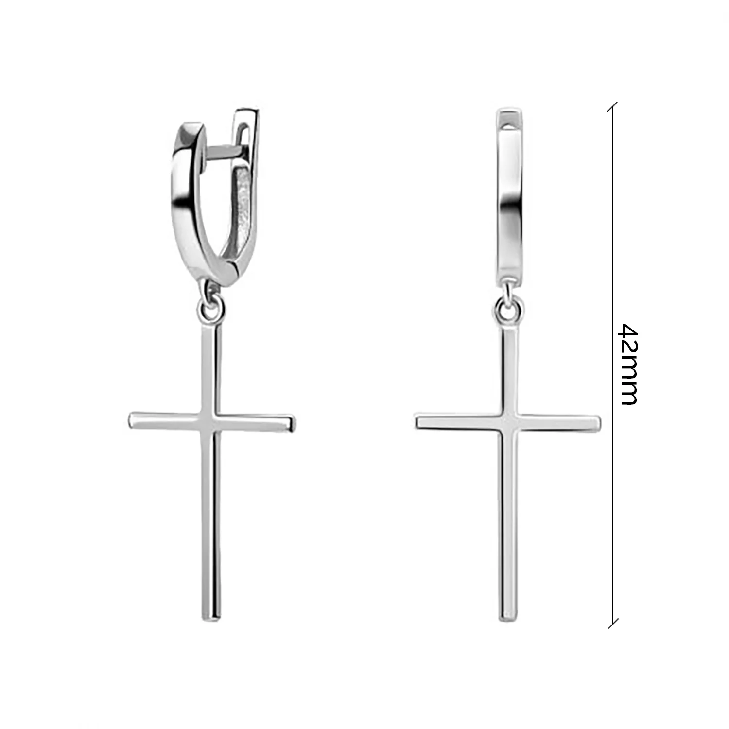 невеликі підвіски, що складаються з двох перетнутих перекладин без декору. Сережки виготовлені зі срібла 925 проби. Воно має нейтральний холодний відтінок і приглушений блиск. Виріб ідеально підходить до будь-якого одягу та кольоротипу зовнішності. Універсальна модель матиме доречний вигляд у жіночих та чоловічих вухах.