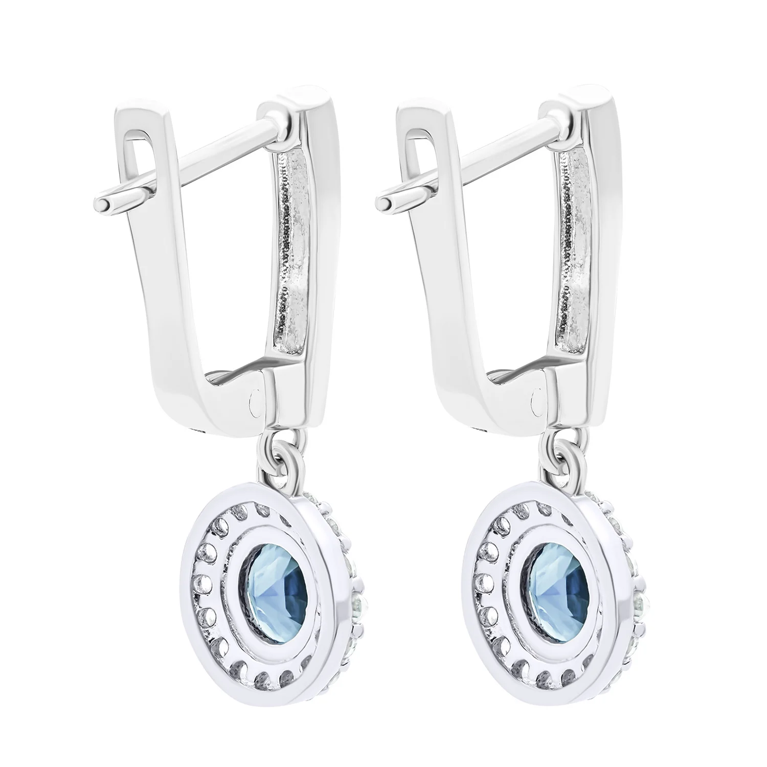 Сережки з підвісами з червоного золота з топазом лондон і фіанітами - 1919551