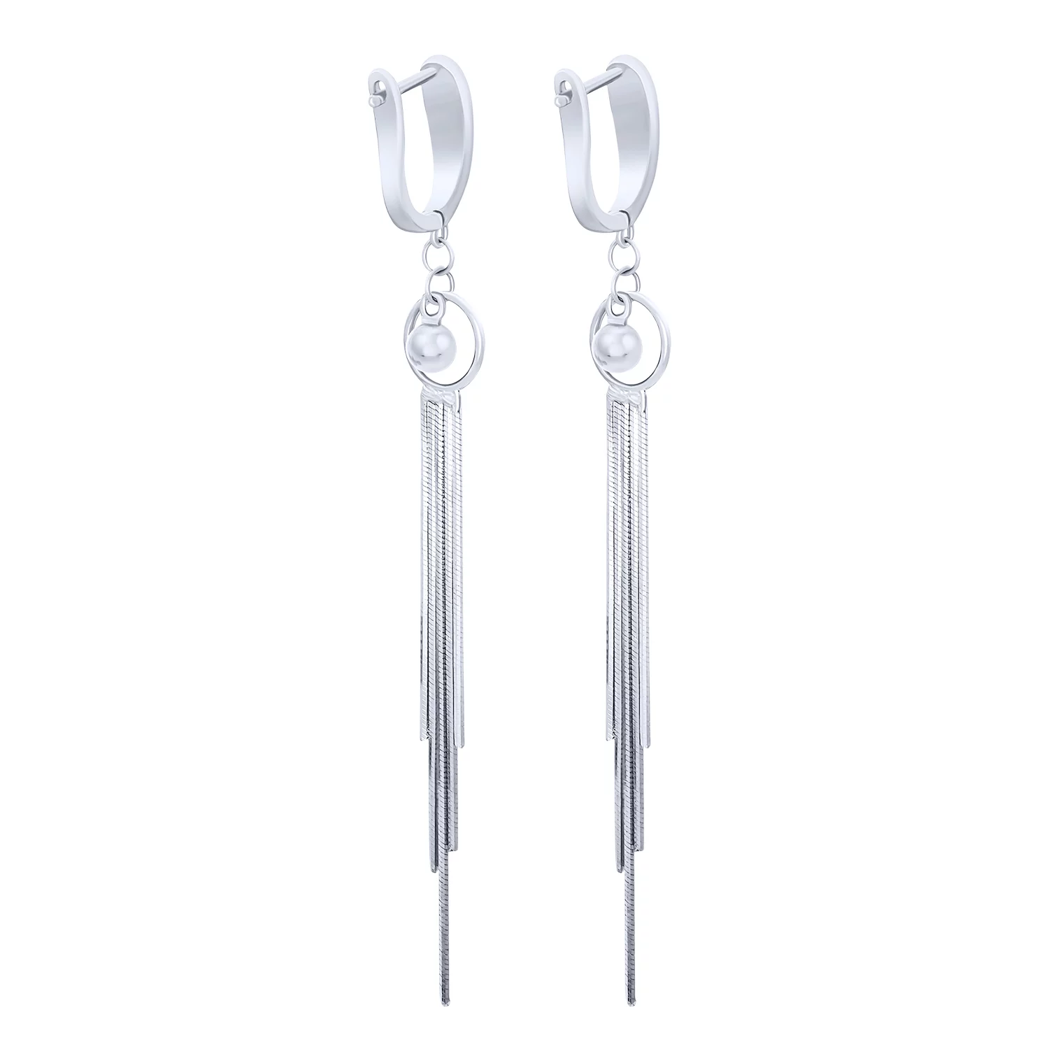 Сережки-гвоздики трансформери срібні з підвісками "Геометрія" та емаллю - 1548699