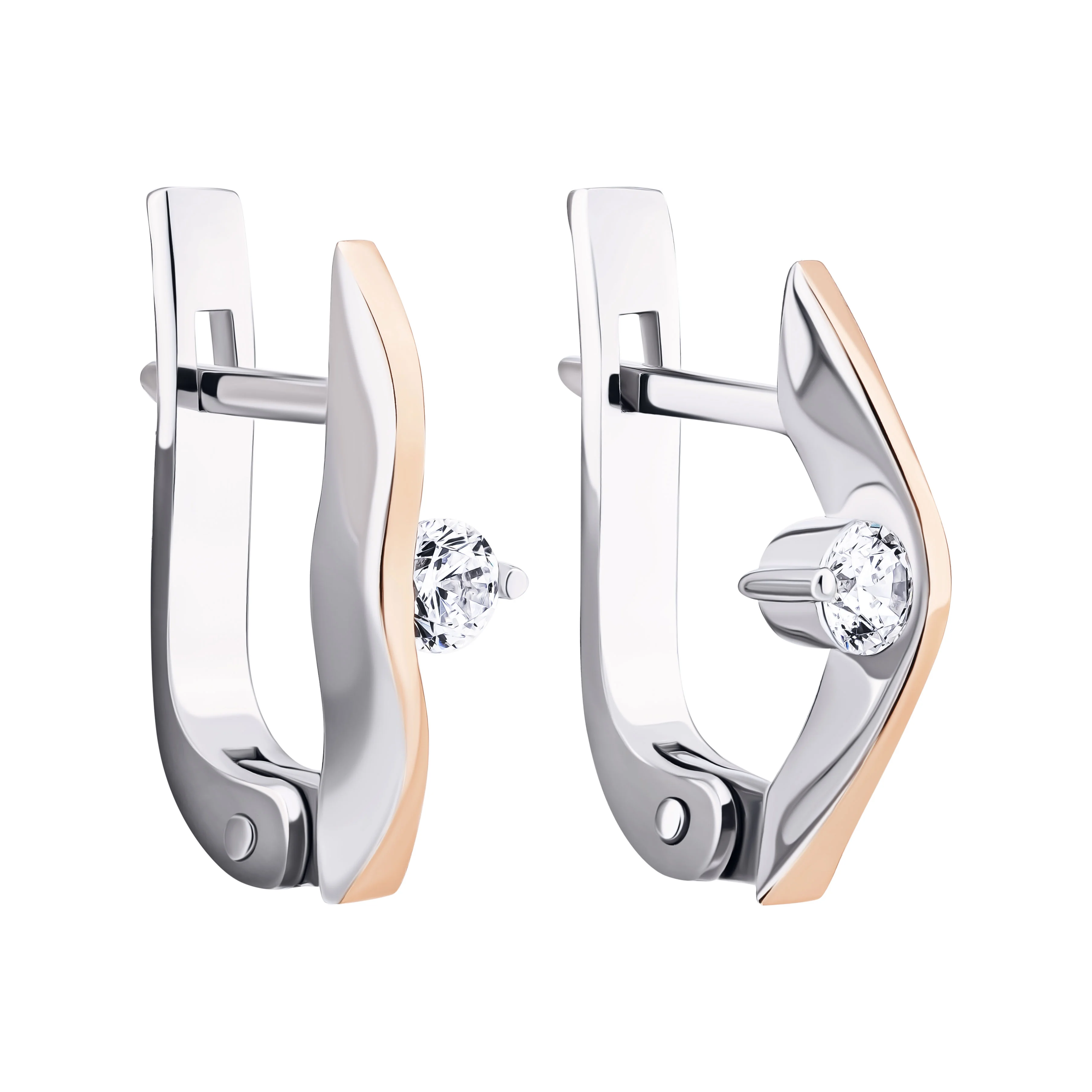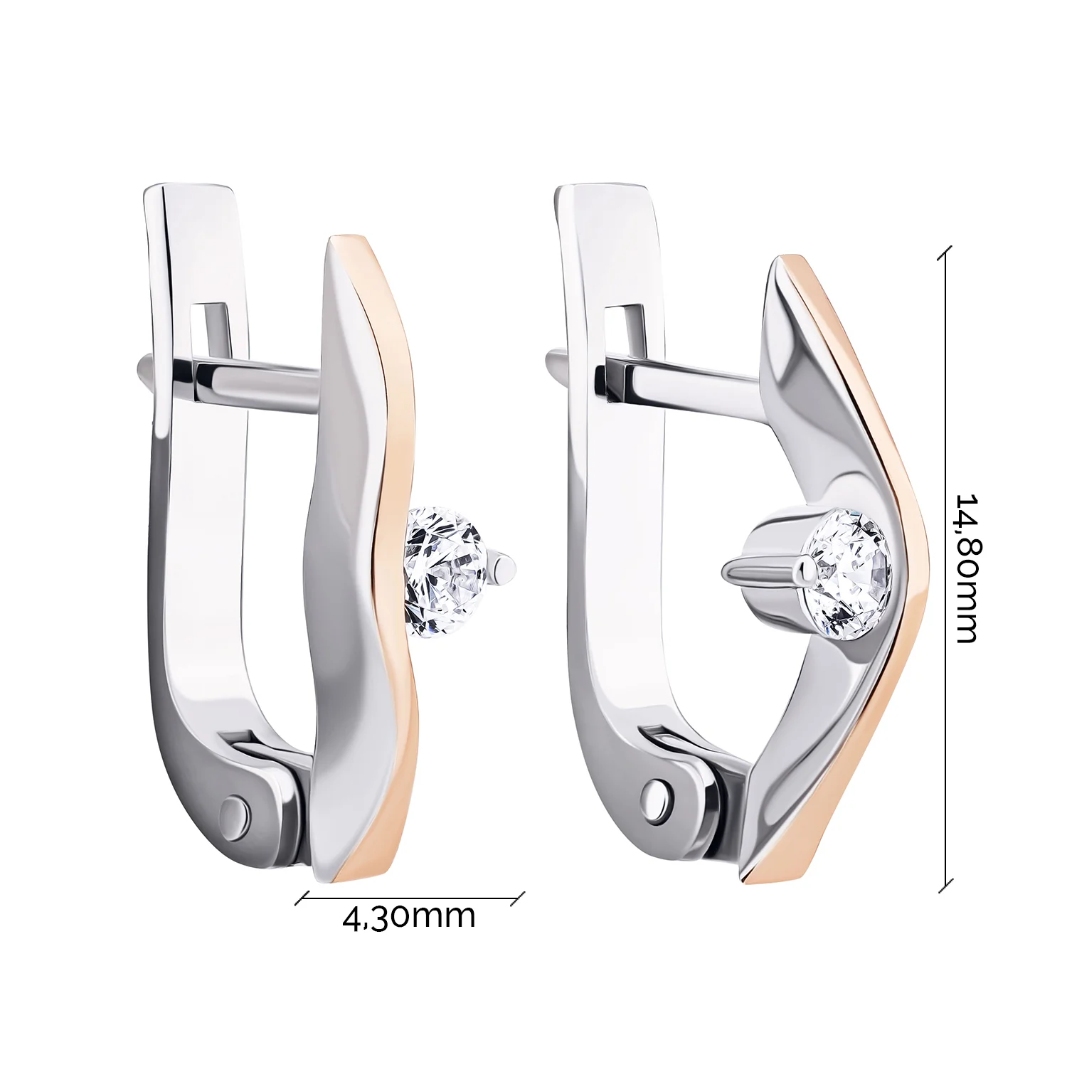Срібні сережки з золотою накладкою та фіанітом - 2112365