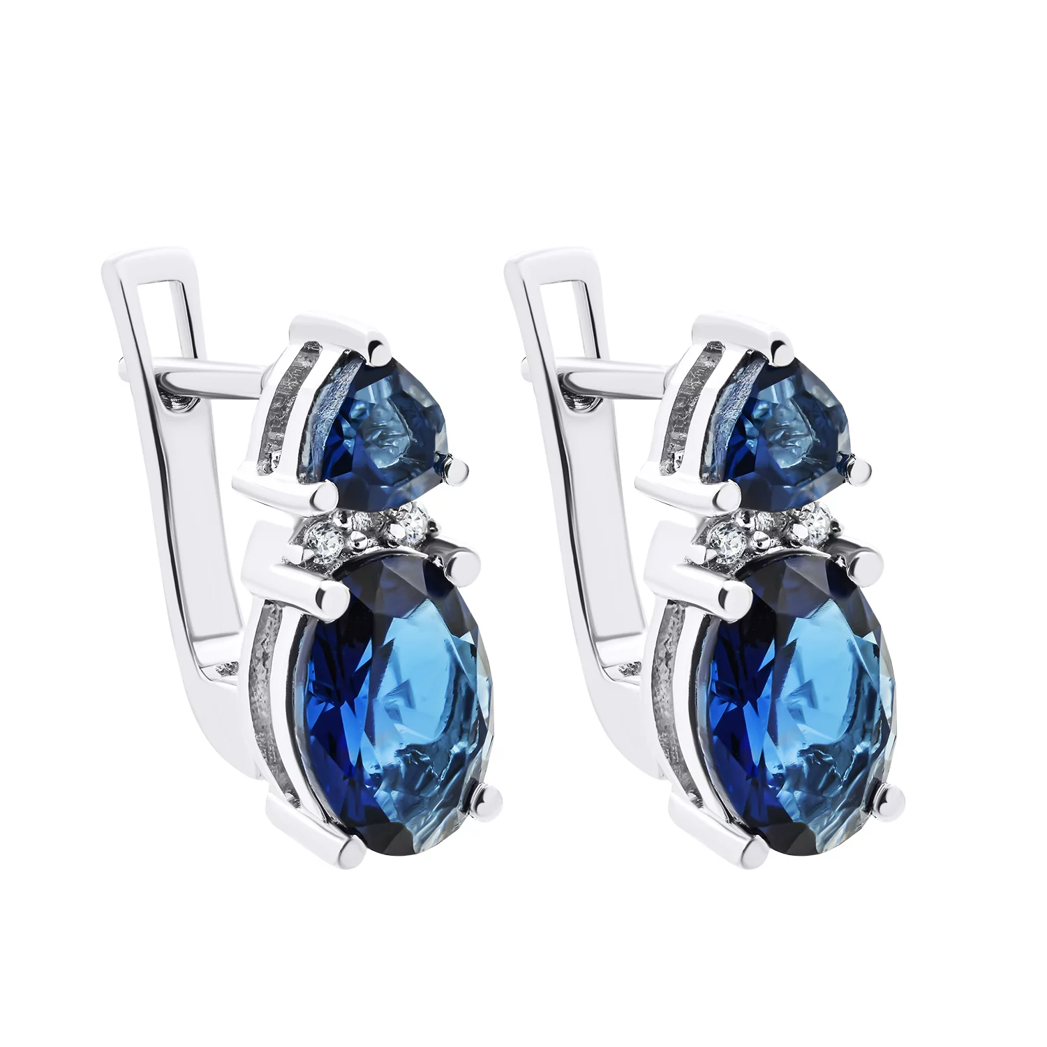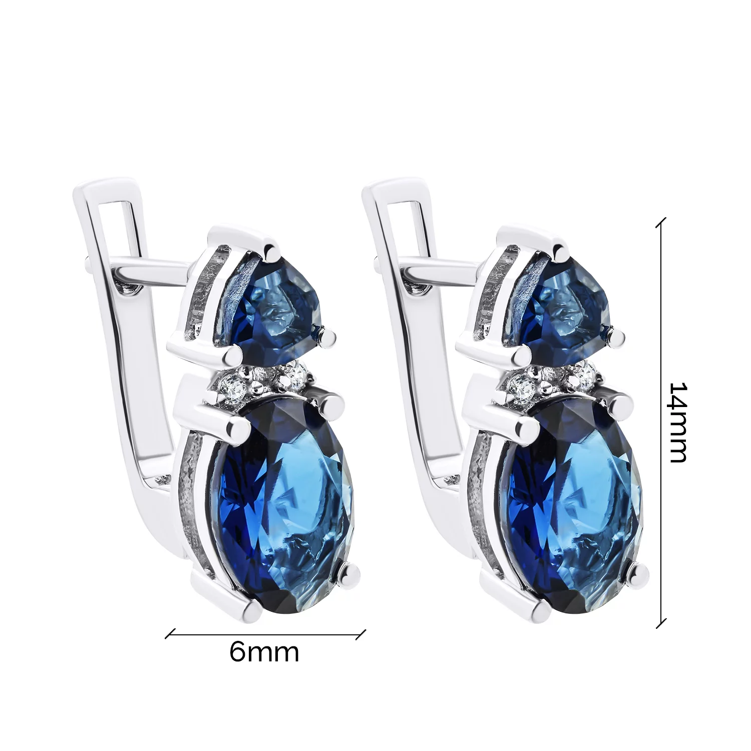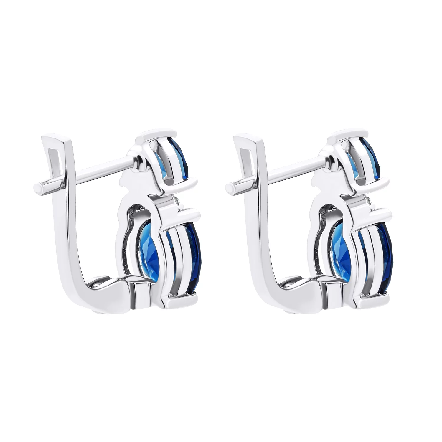 Сережки зі срібла з підвісом "Пантера" з альпінітами та фіанітами - 1809813