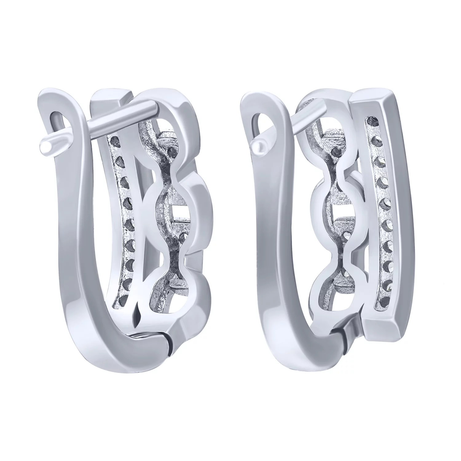 Срібні сережки "Ланки" з фіанітами - 1680033