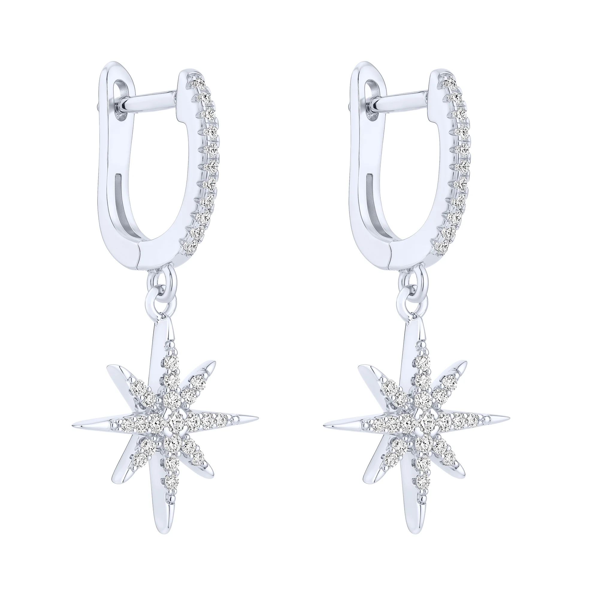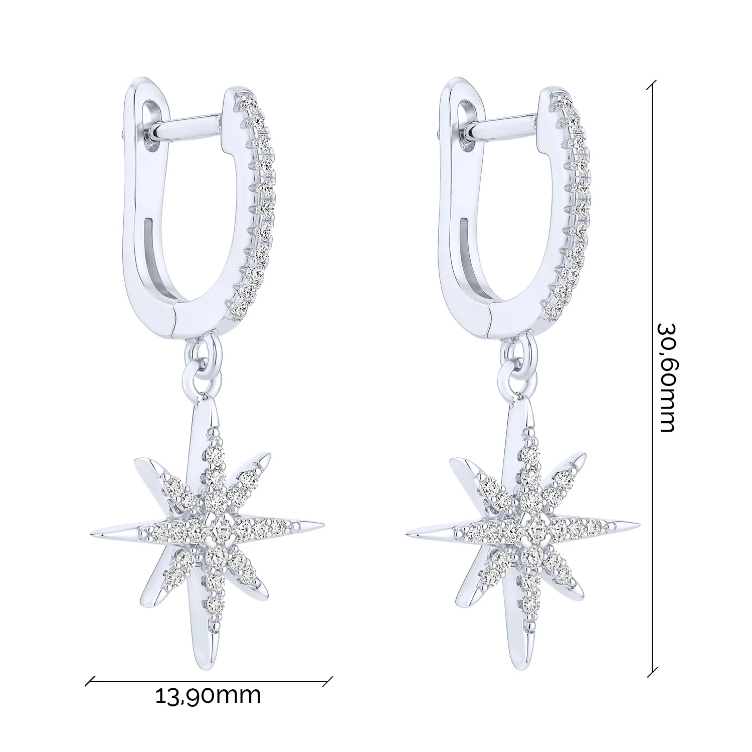 Срібні сережки "Зірка" з підвісом та фіанітами - 2162582