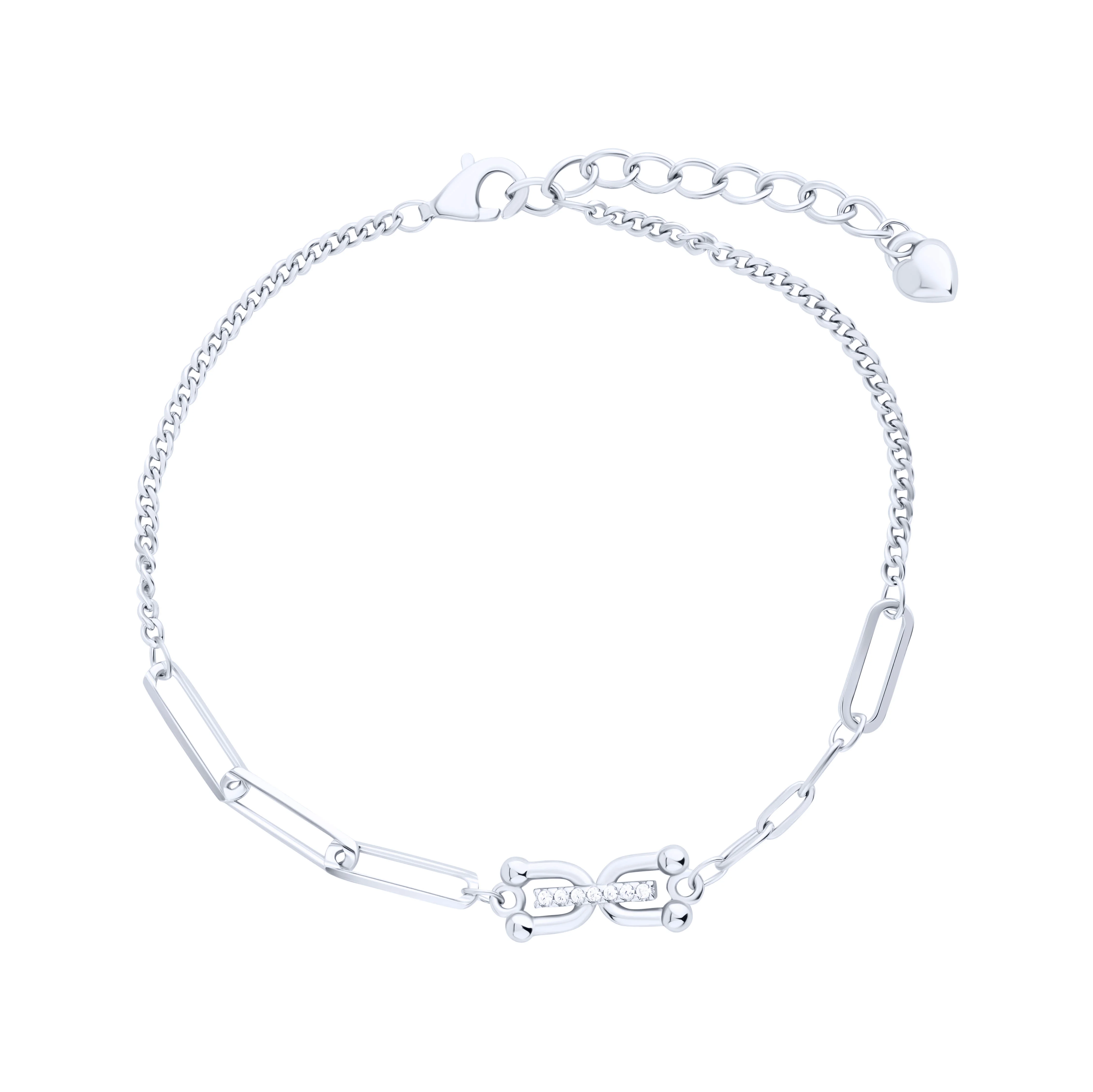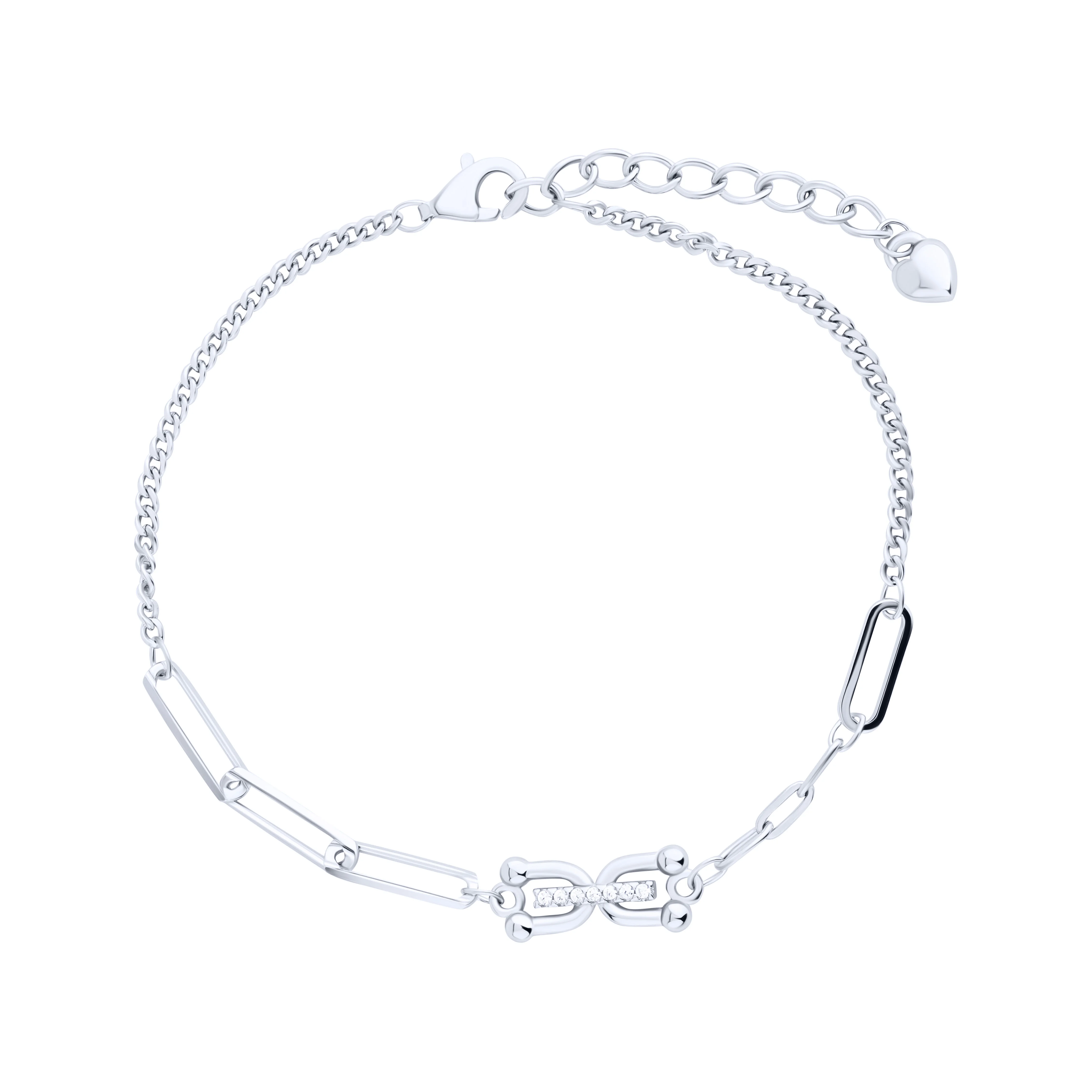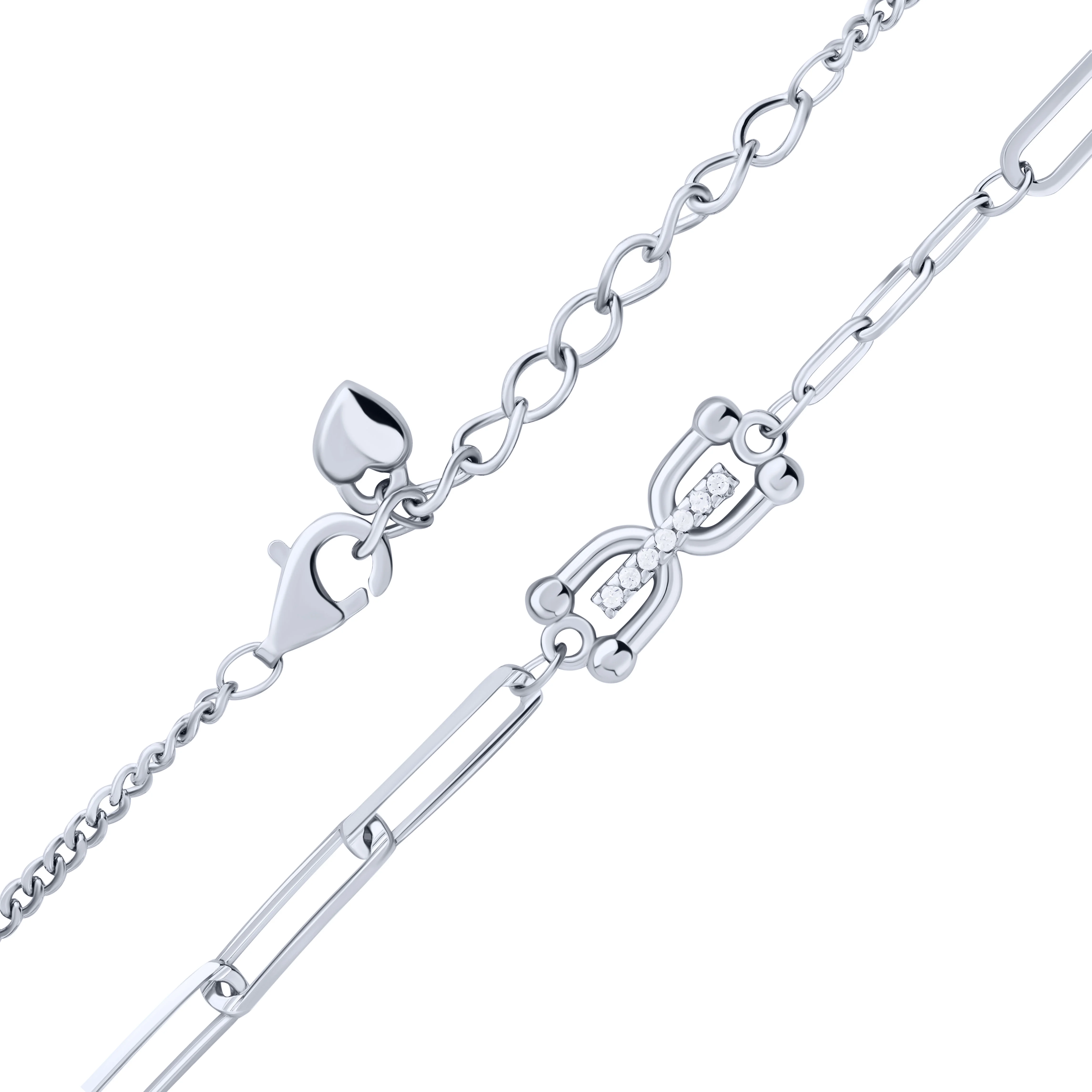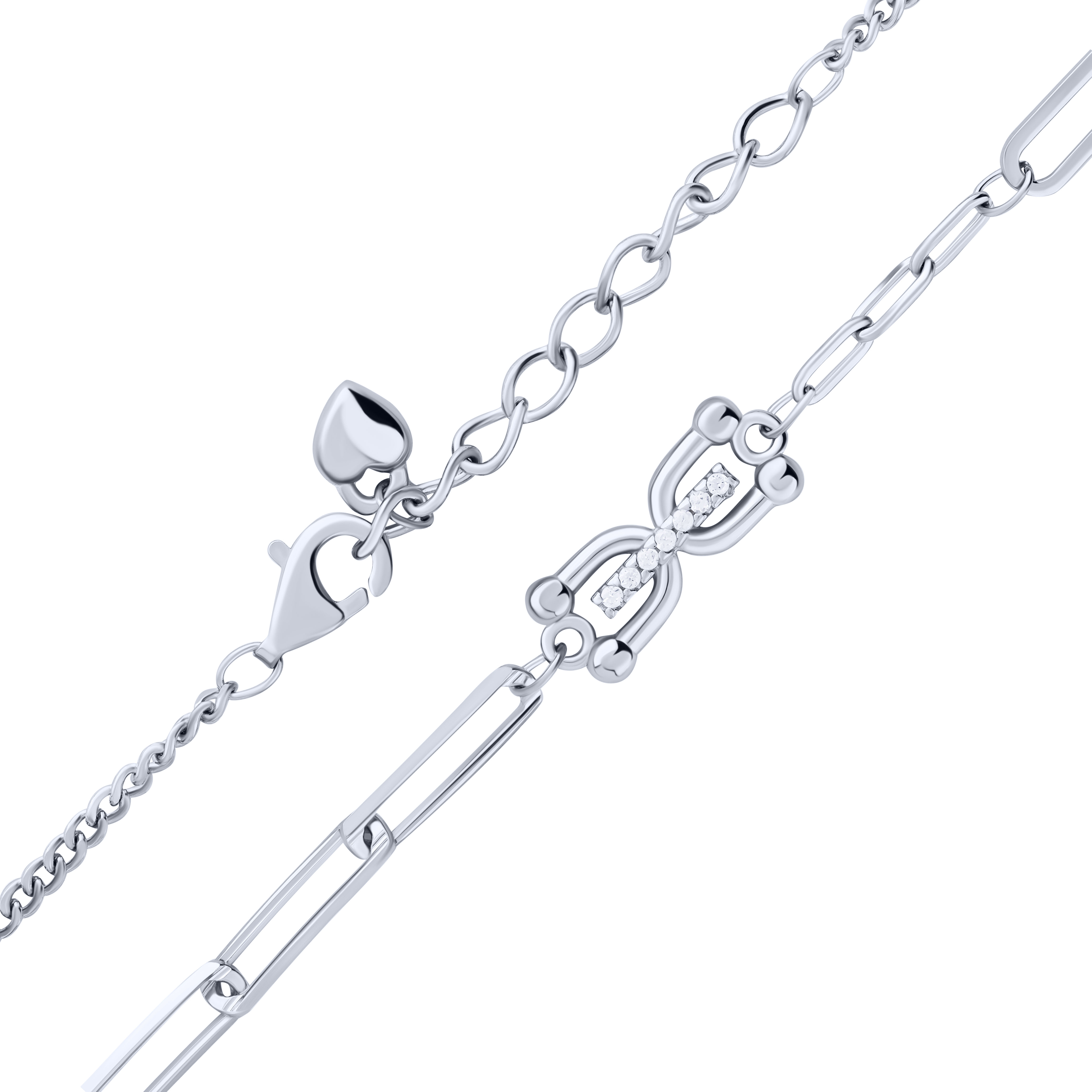 Срібний браслет у подвійному плетінні з фіанітами - 2127117