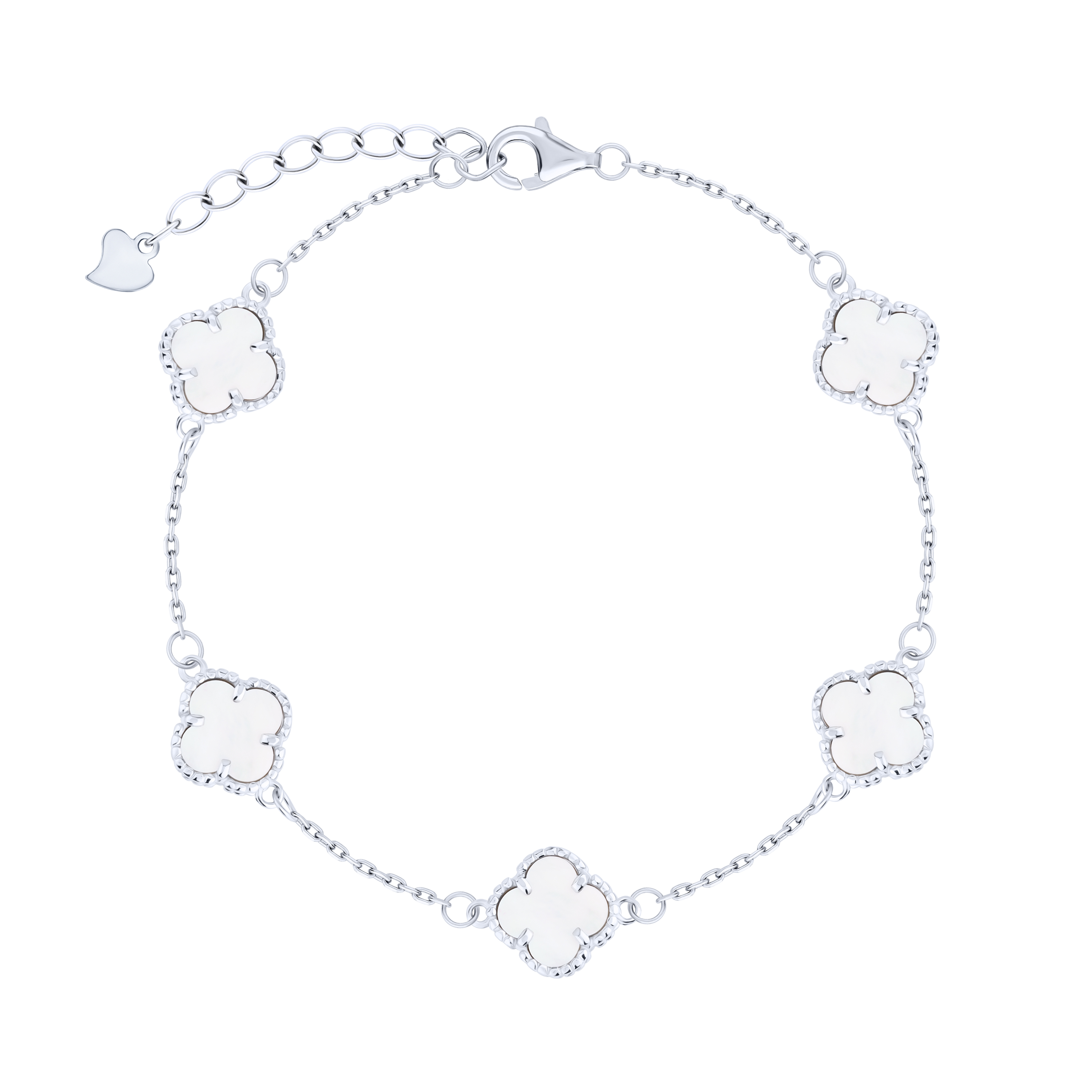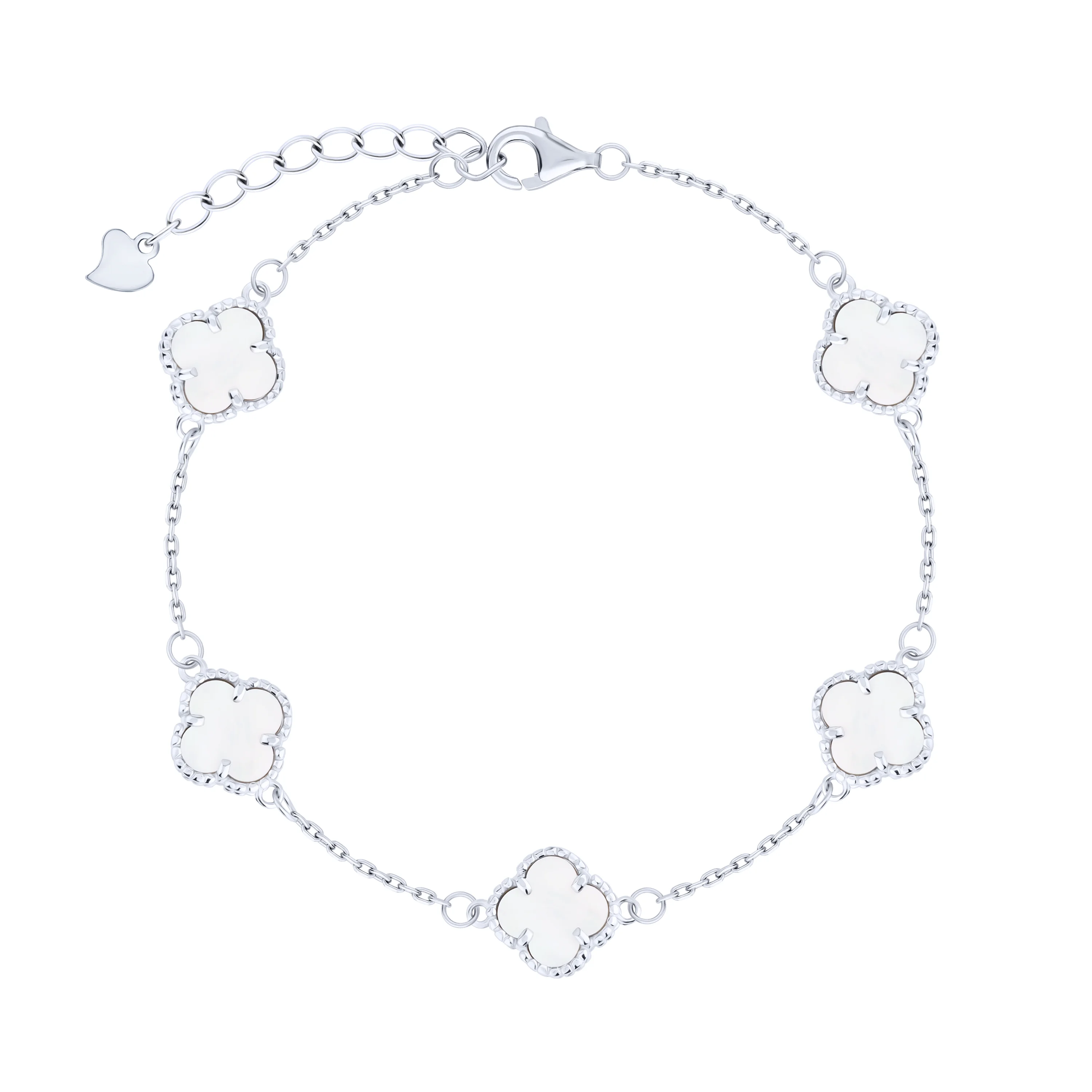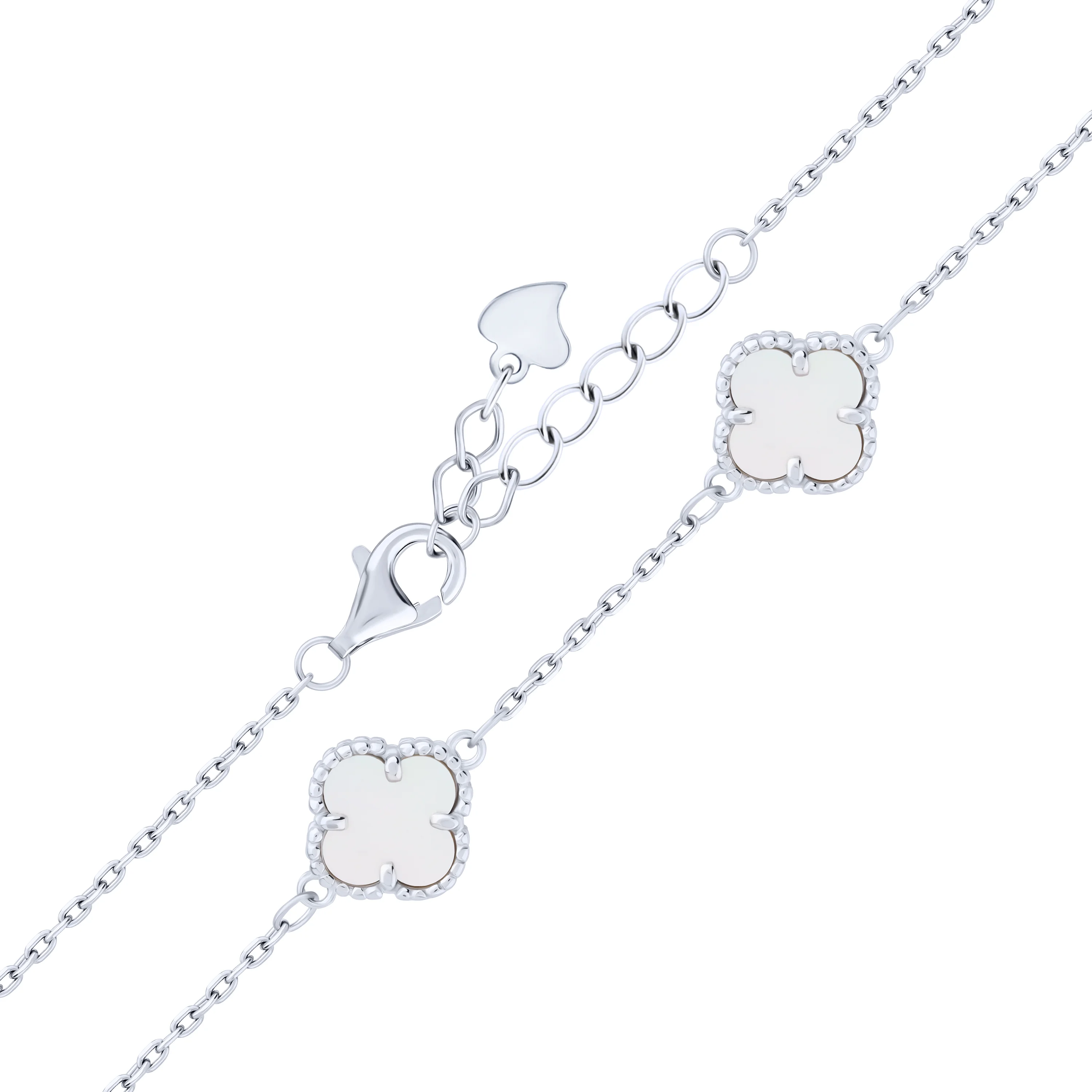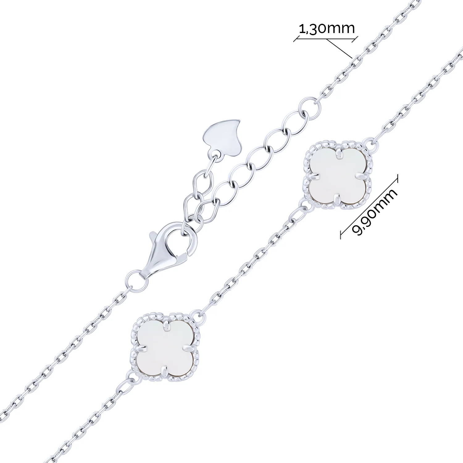 Срібний браслет "Конюшина" з перламутром плетіння якір - 2146919
