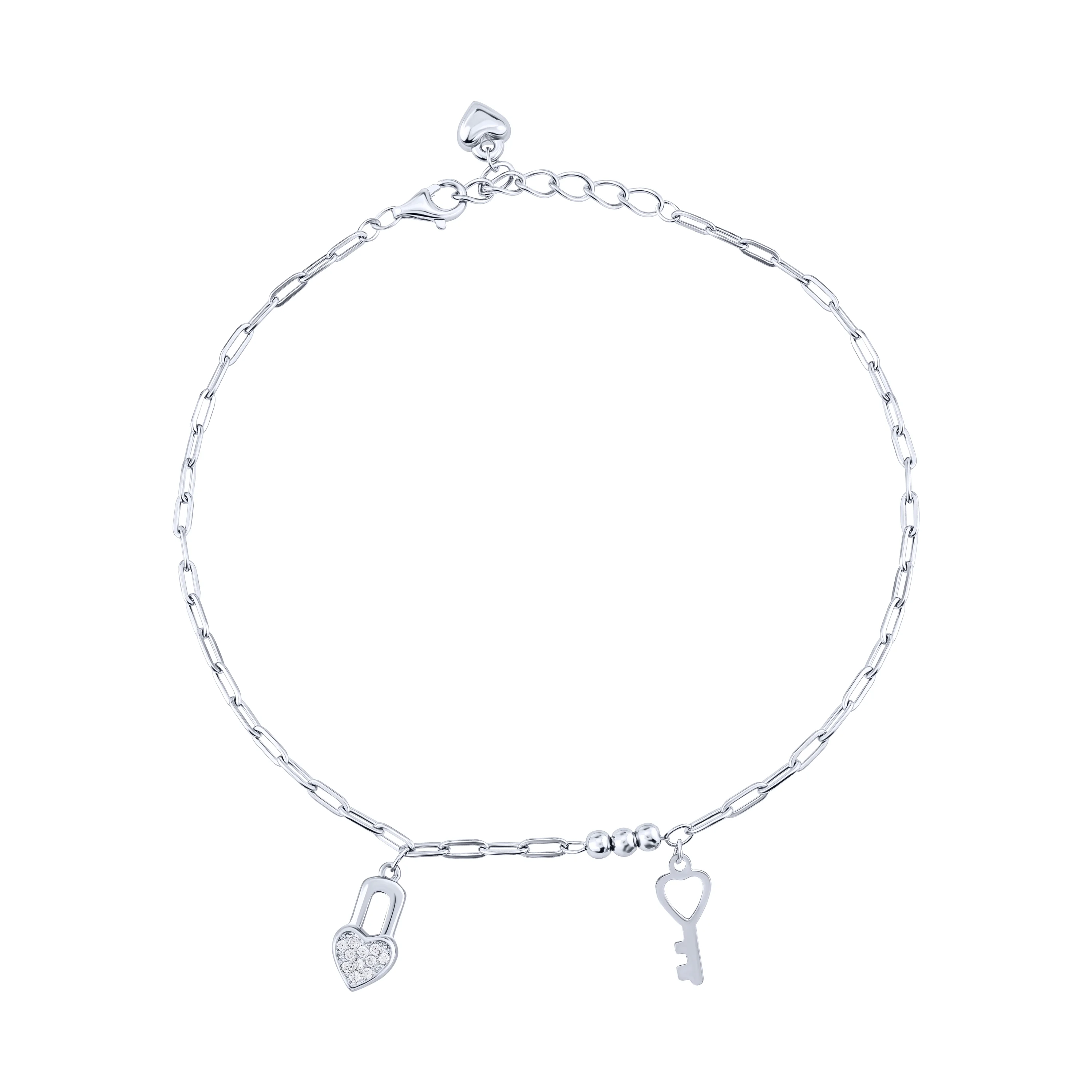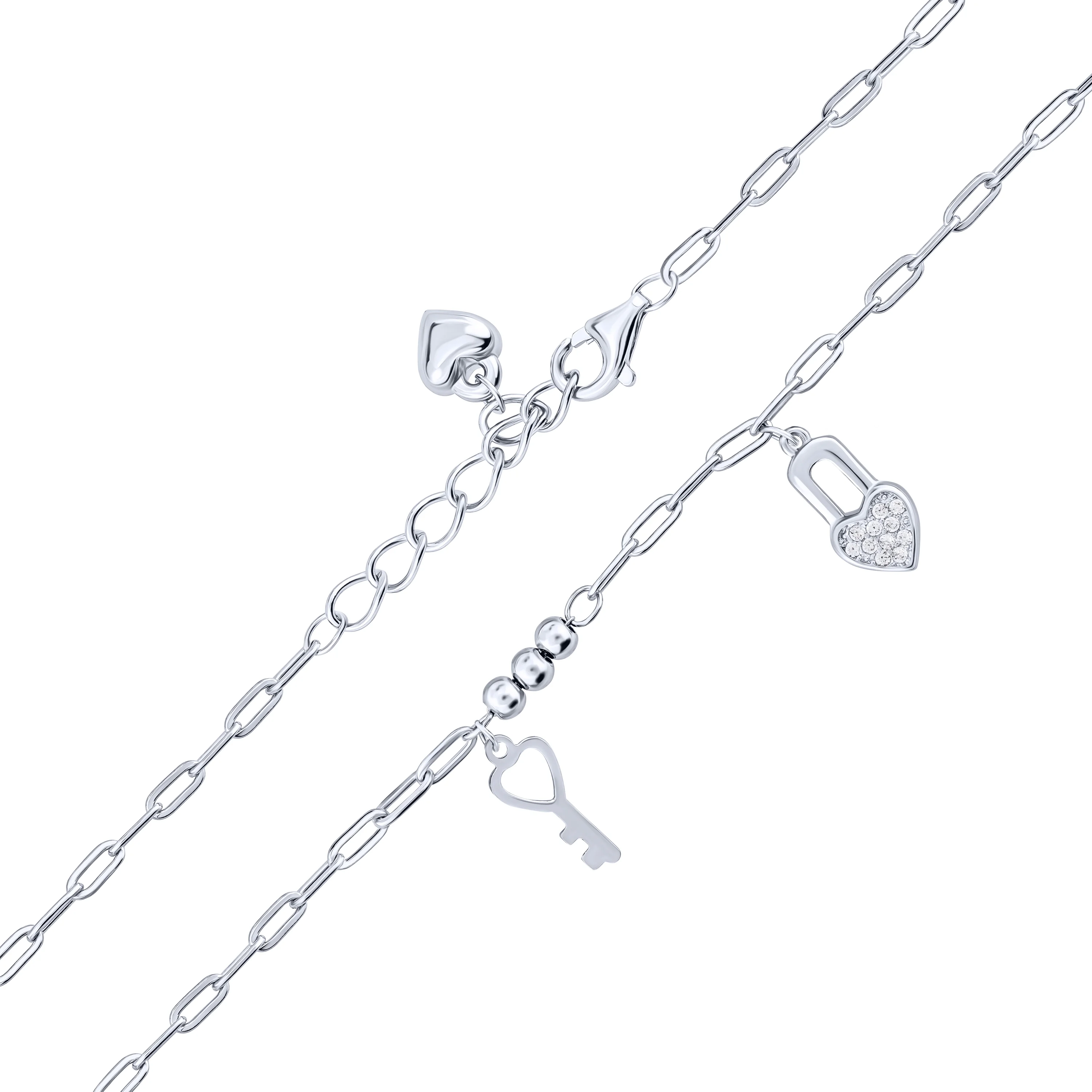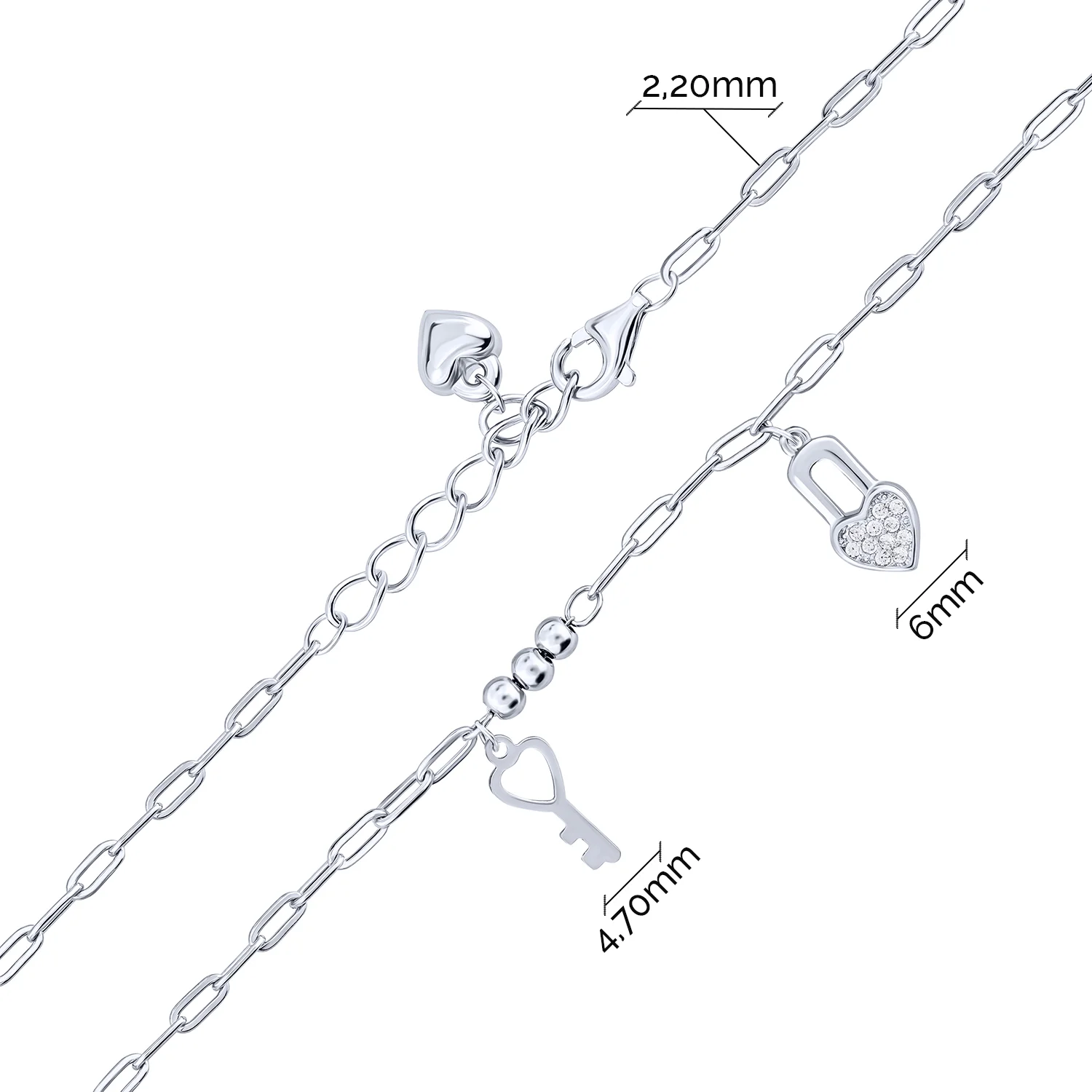 Срібний браслет "Ключ до серця" з підвісами якірне плетіння - 2102160