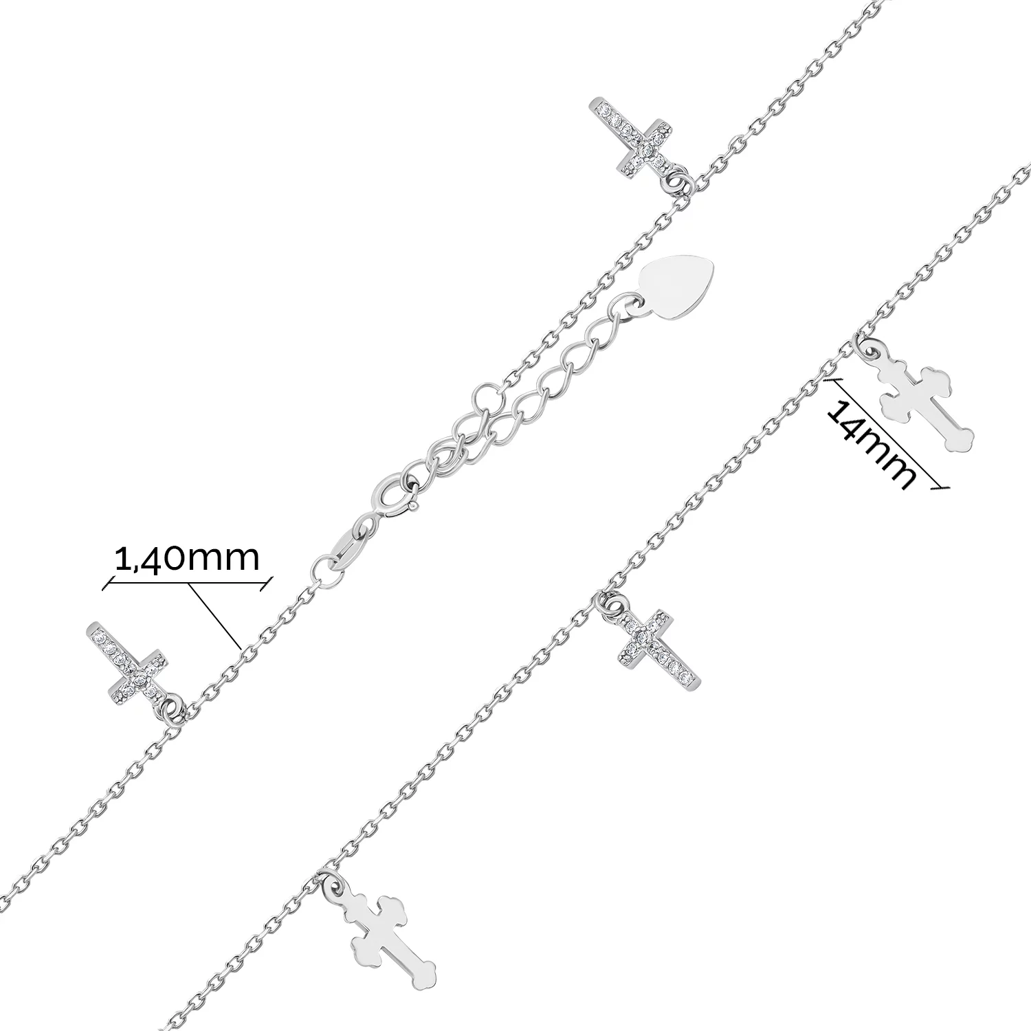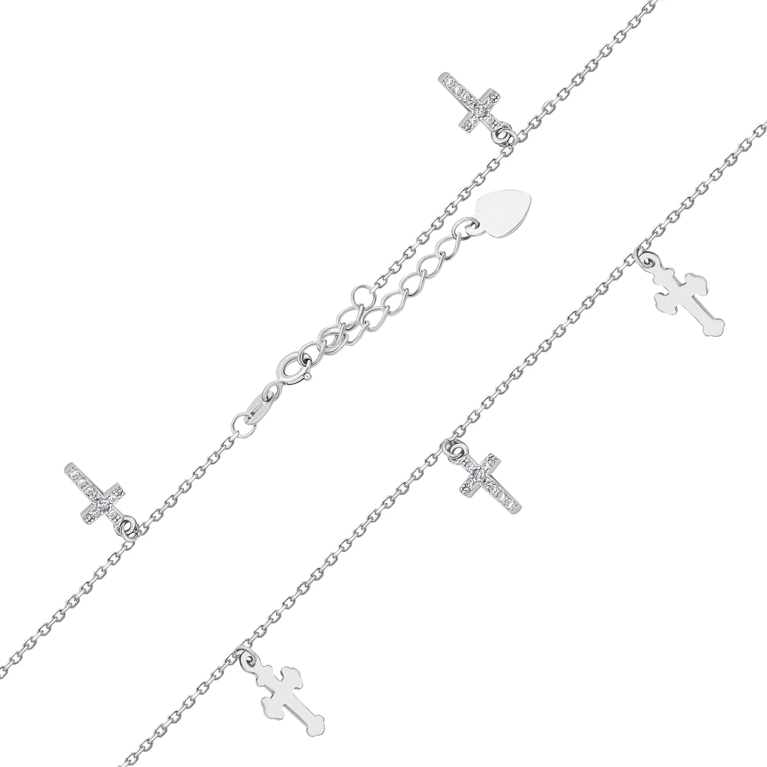 Срібний браслет з підвісками "Конюшина" з емаллю та фіанітами плетіння якір - 1693629