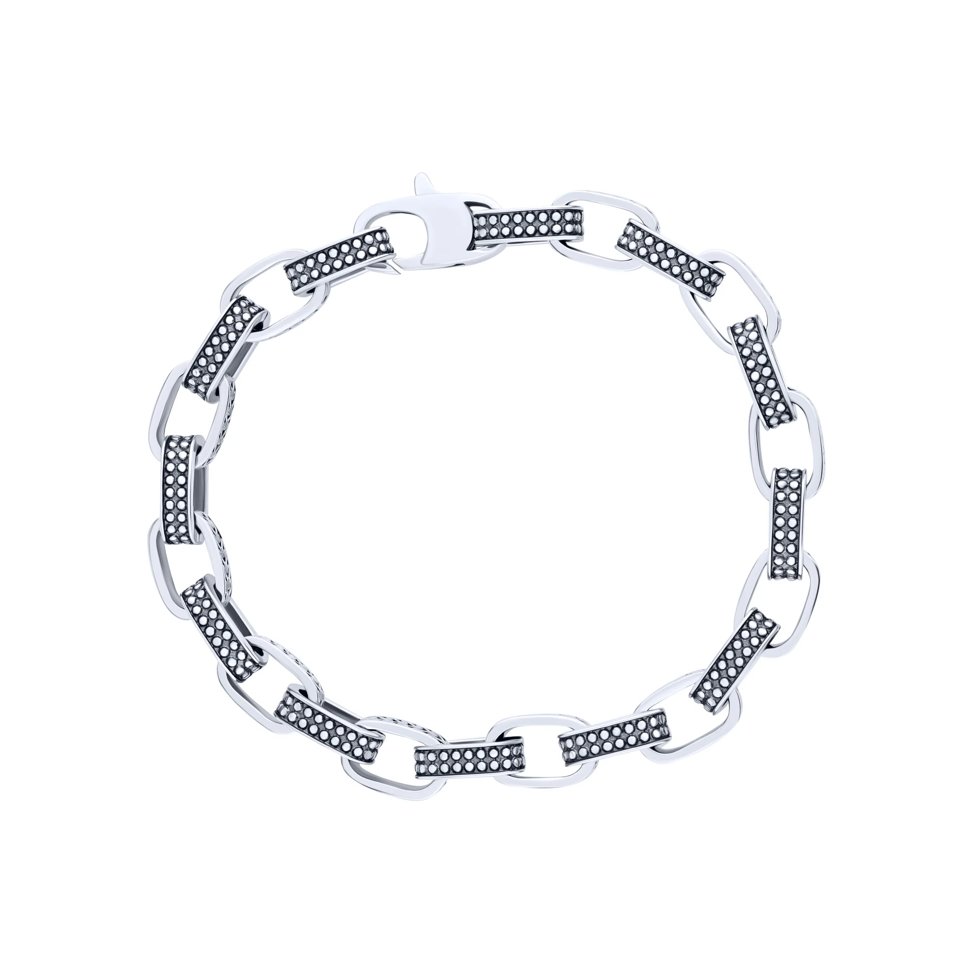 Срібний браслет з чорнінням плетіння якір - 2117833