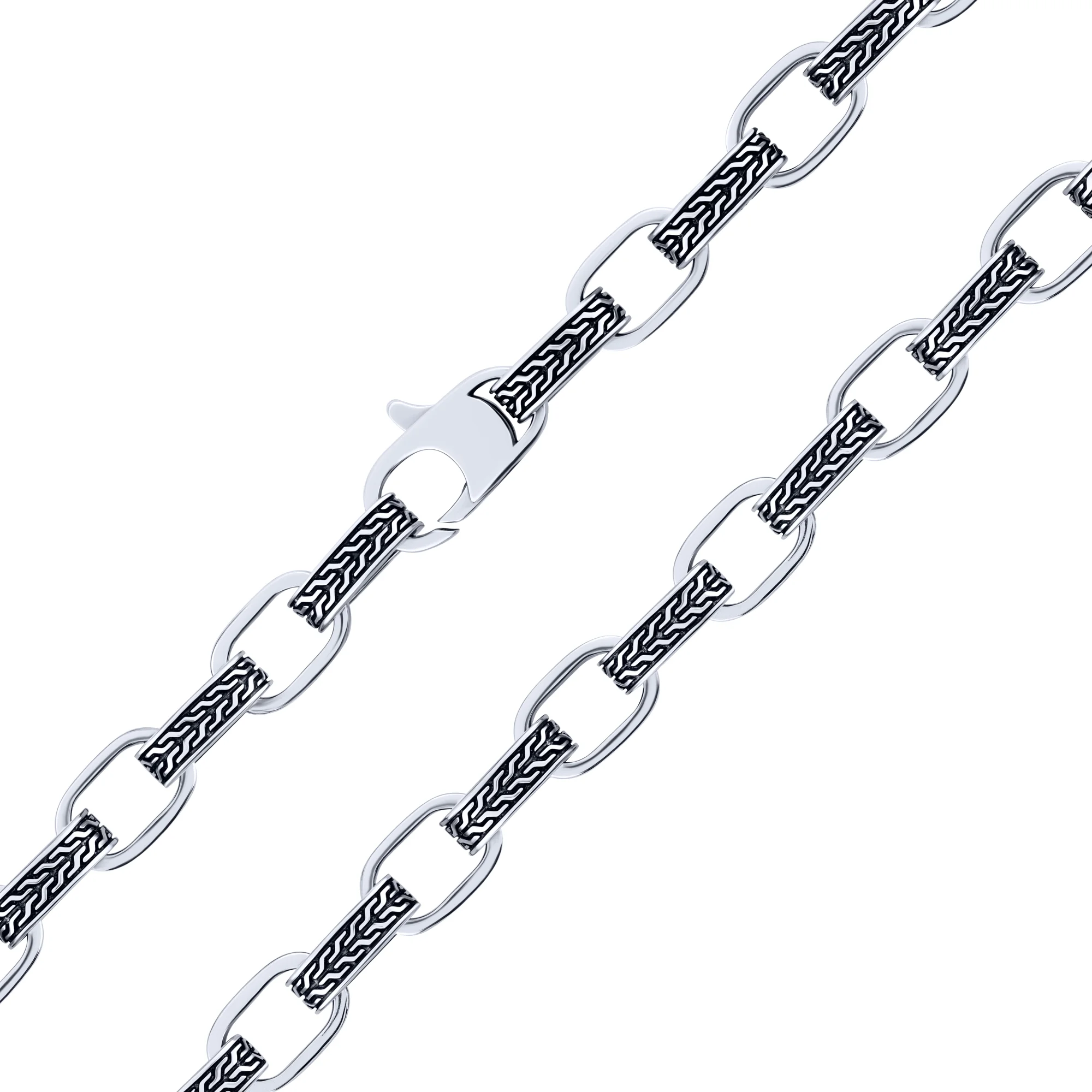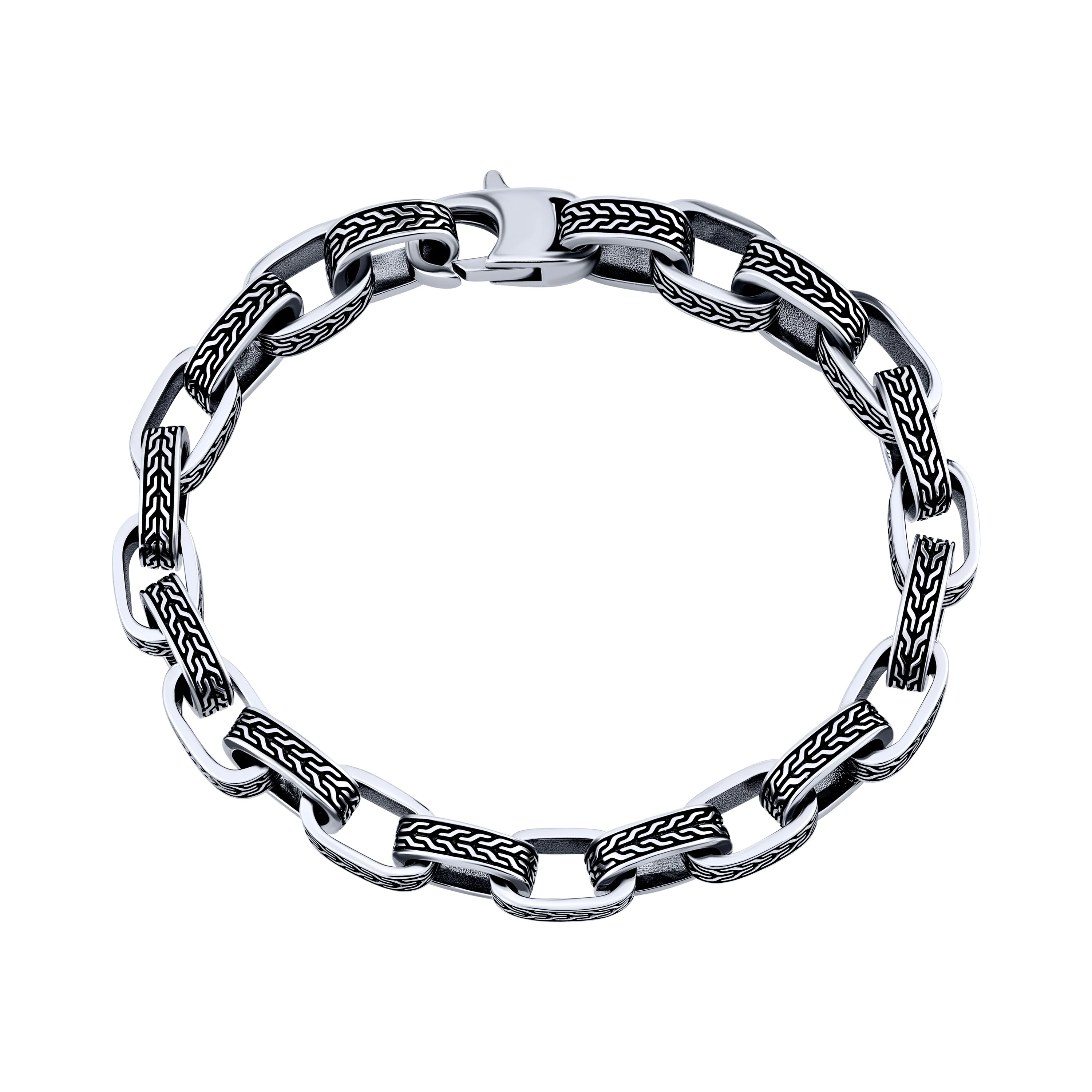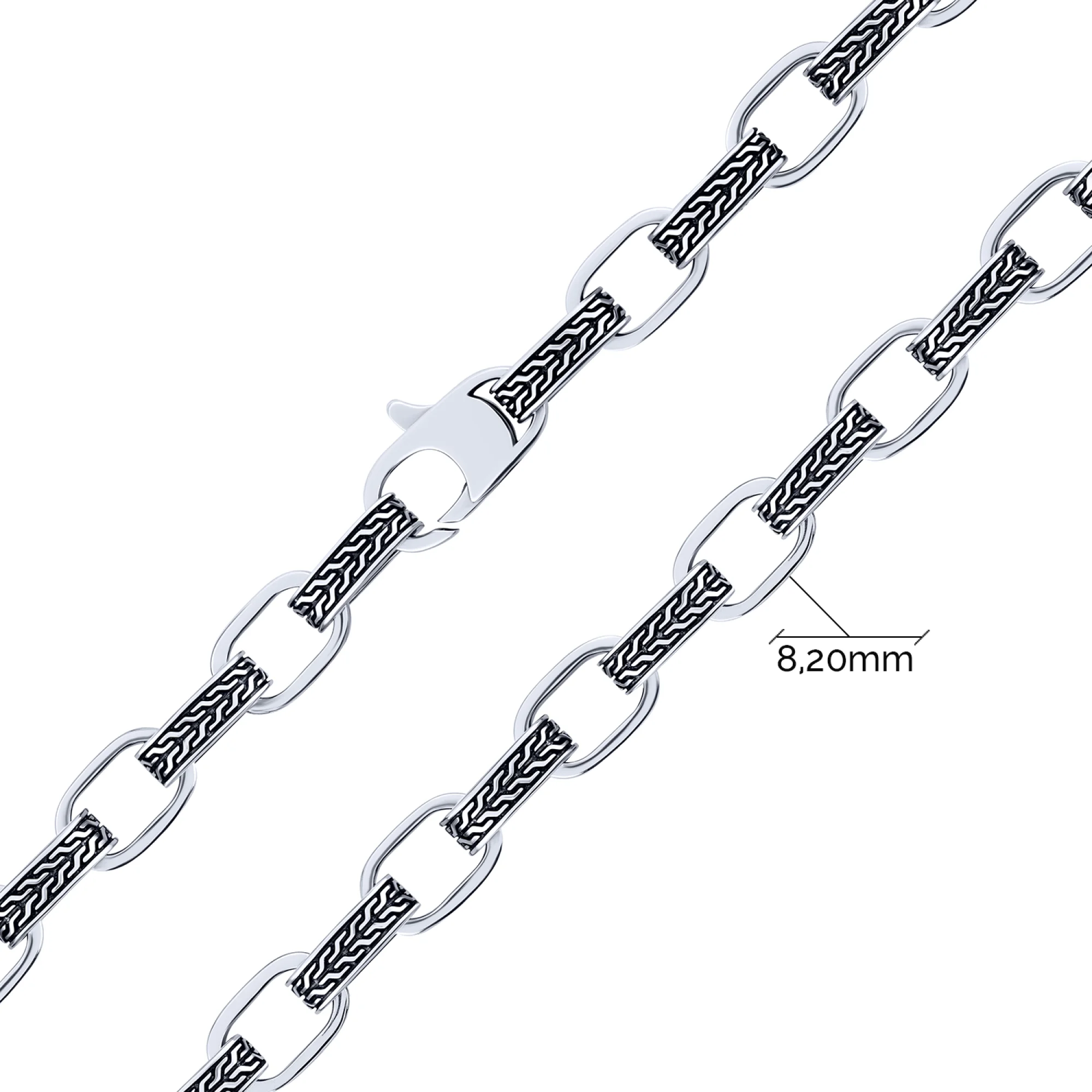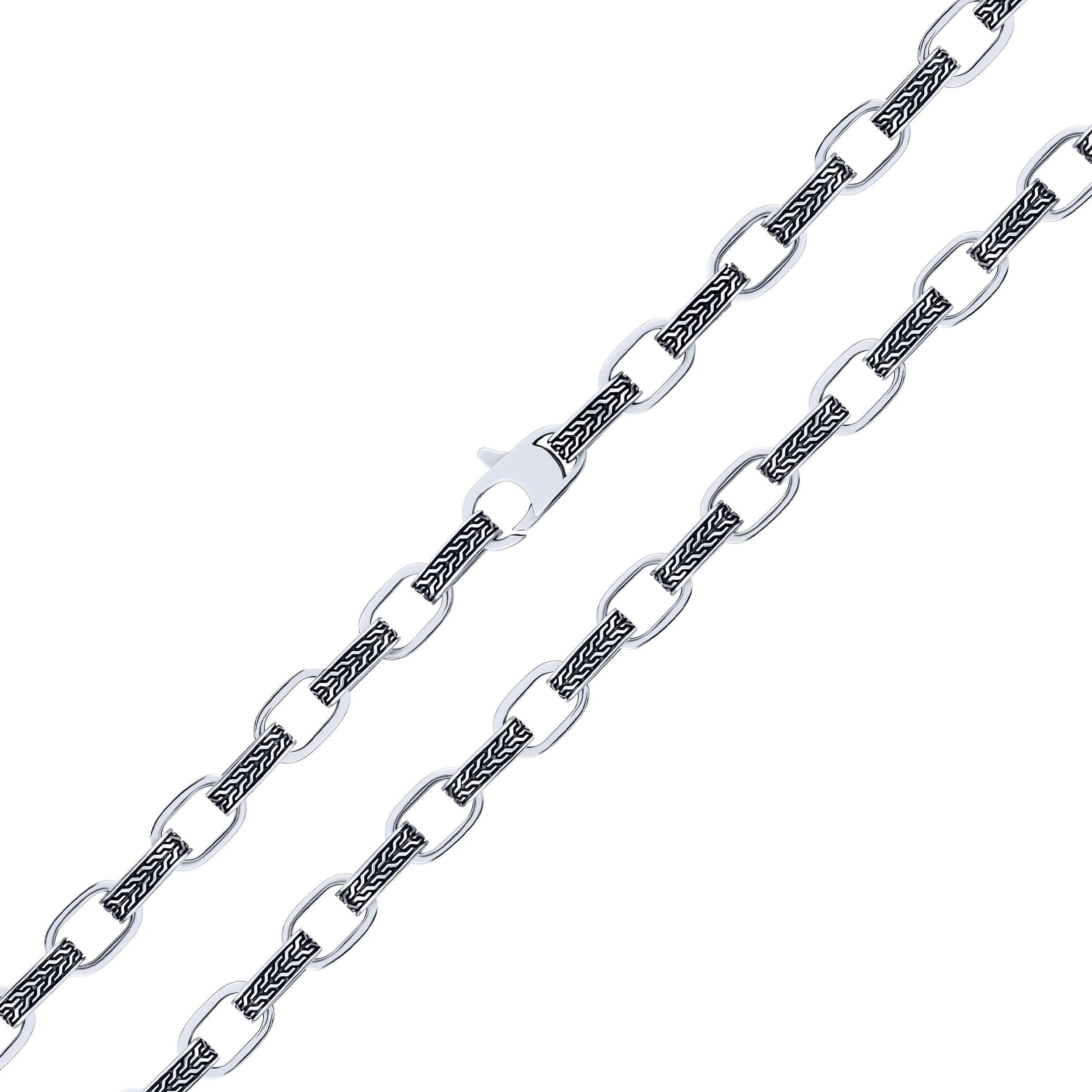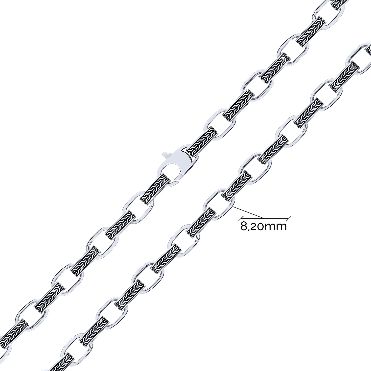 Срібний браслет з візерунком та чорнінням плетіння якірне - 2107921