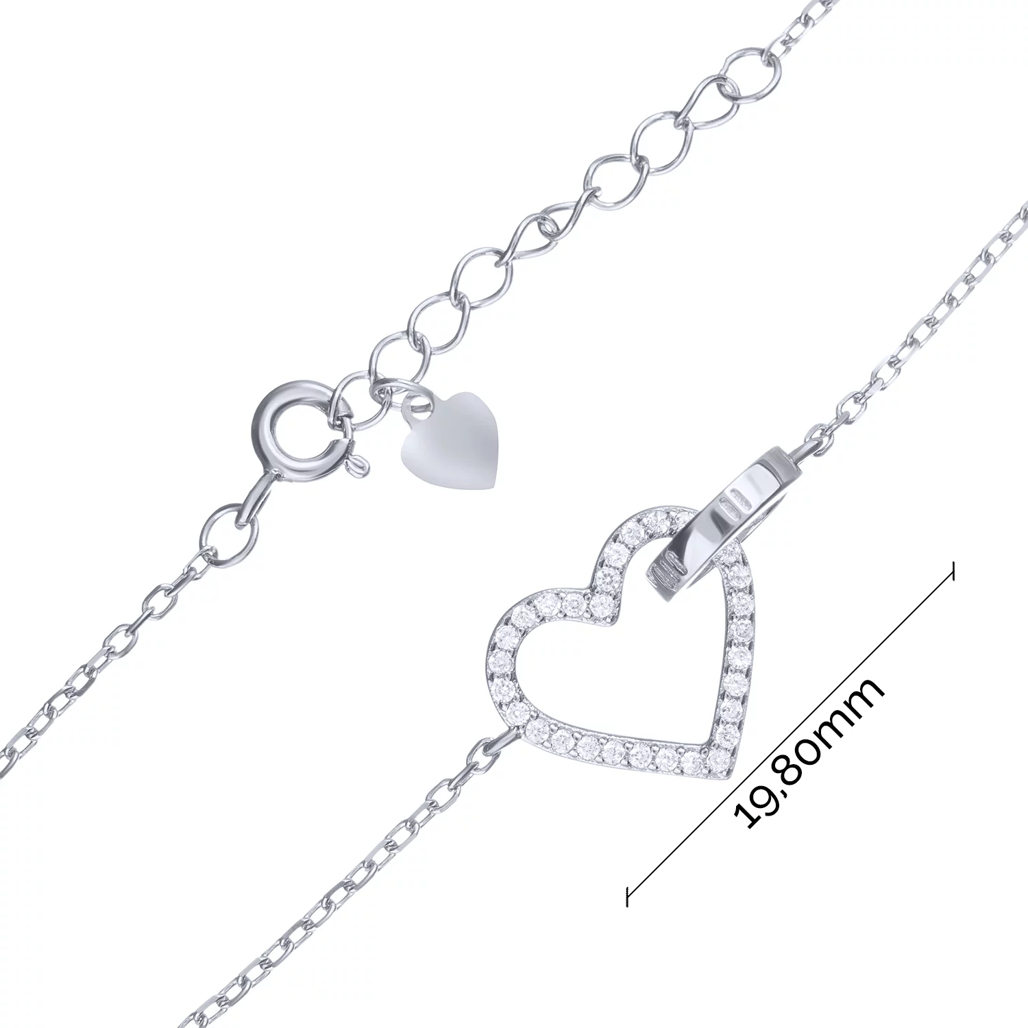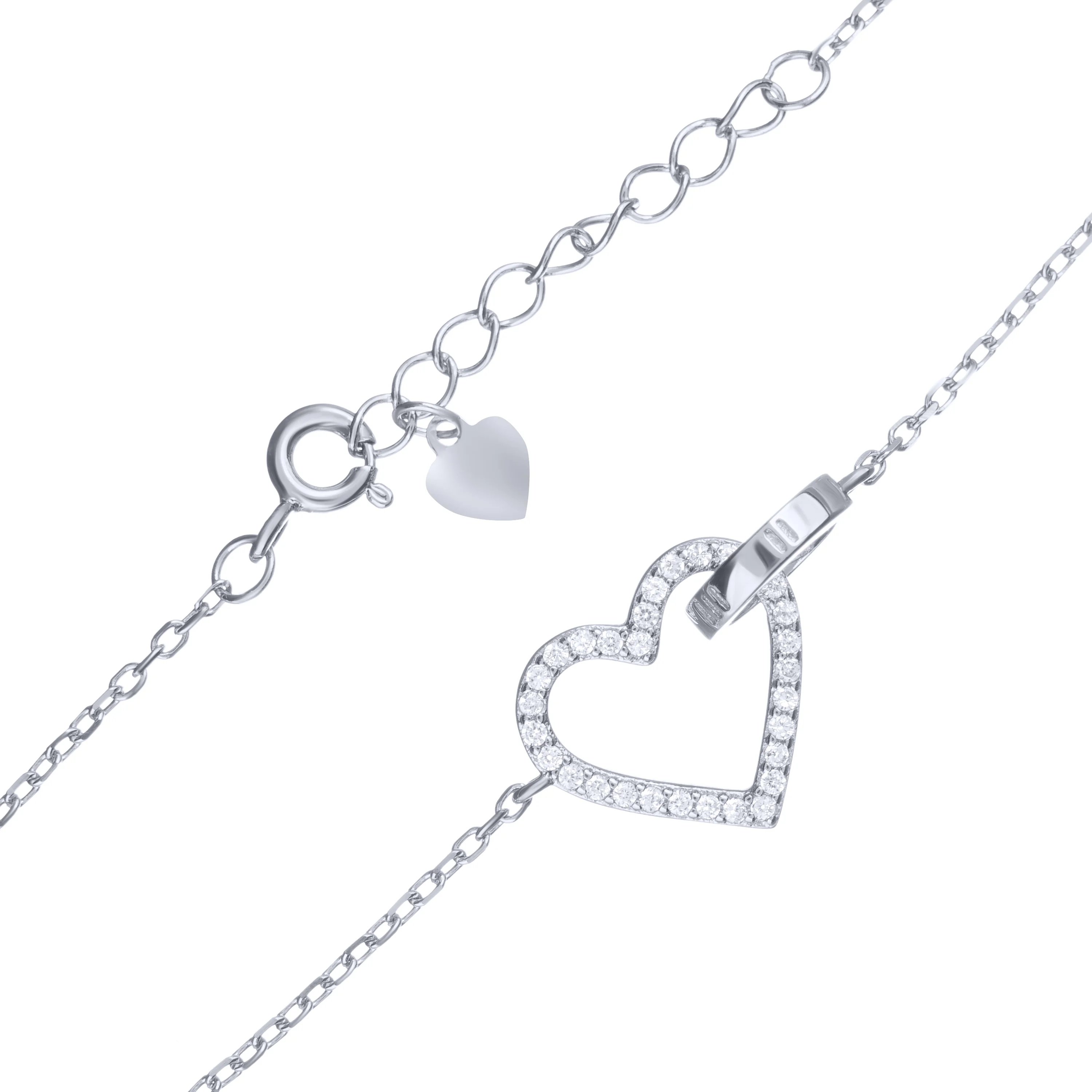 Срібний браслет з фіанітом "Серце" якірне плетіння - 1688461