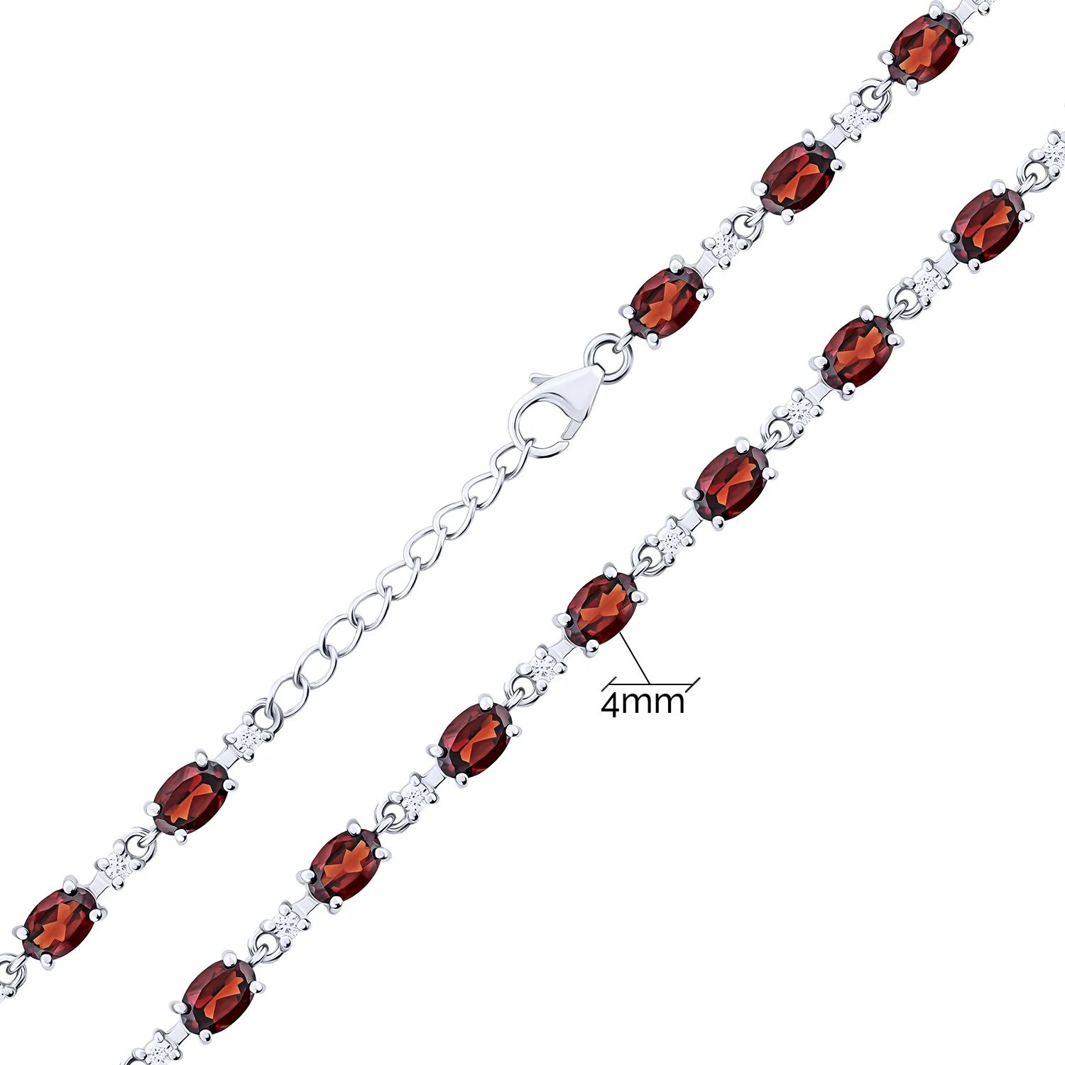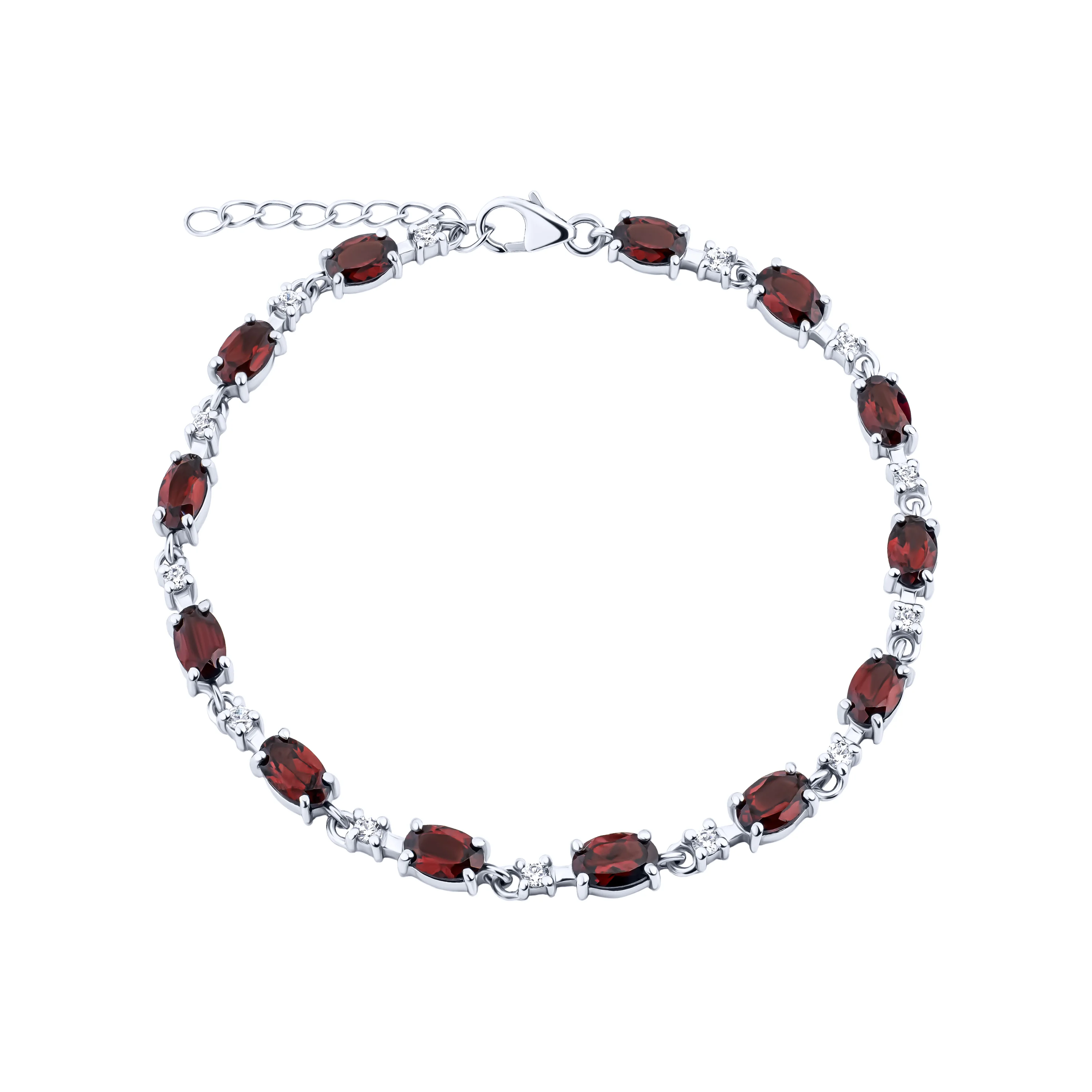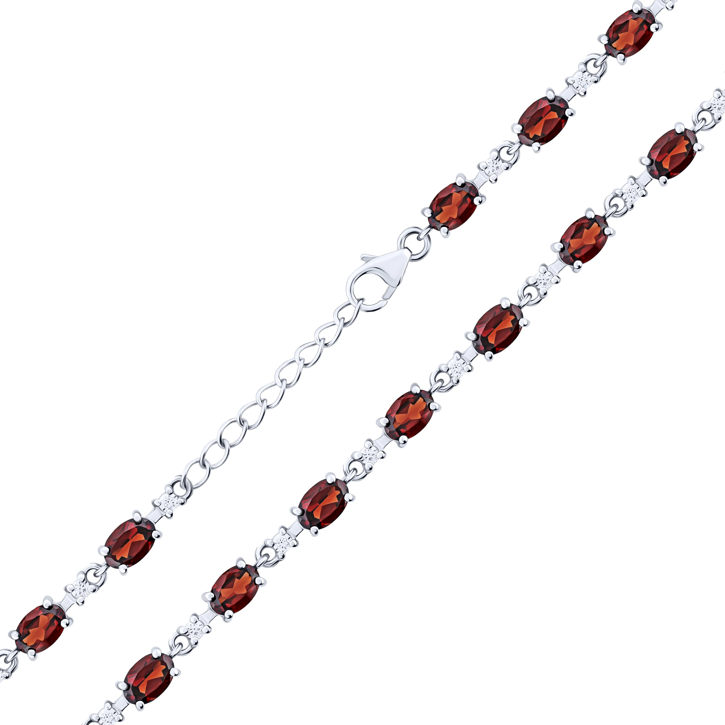 Срібний браслет з гранатом та фіанітами плетіння фантазія - 2167126