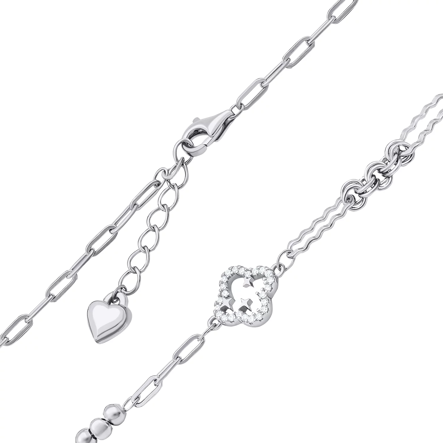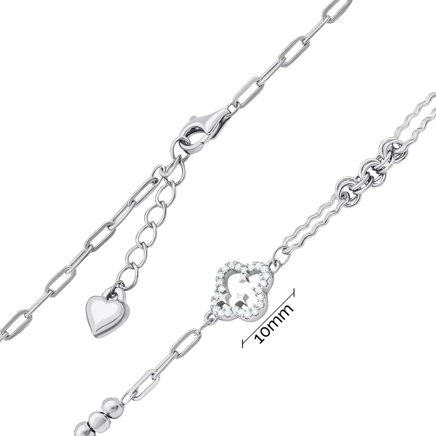 Срібний браслет з підвісками "Конюшина" з емаллю та фіанітами плетіння якір - 1693629