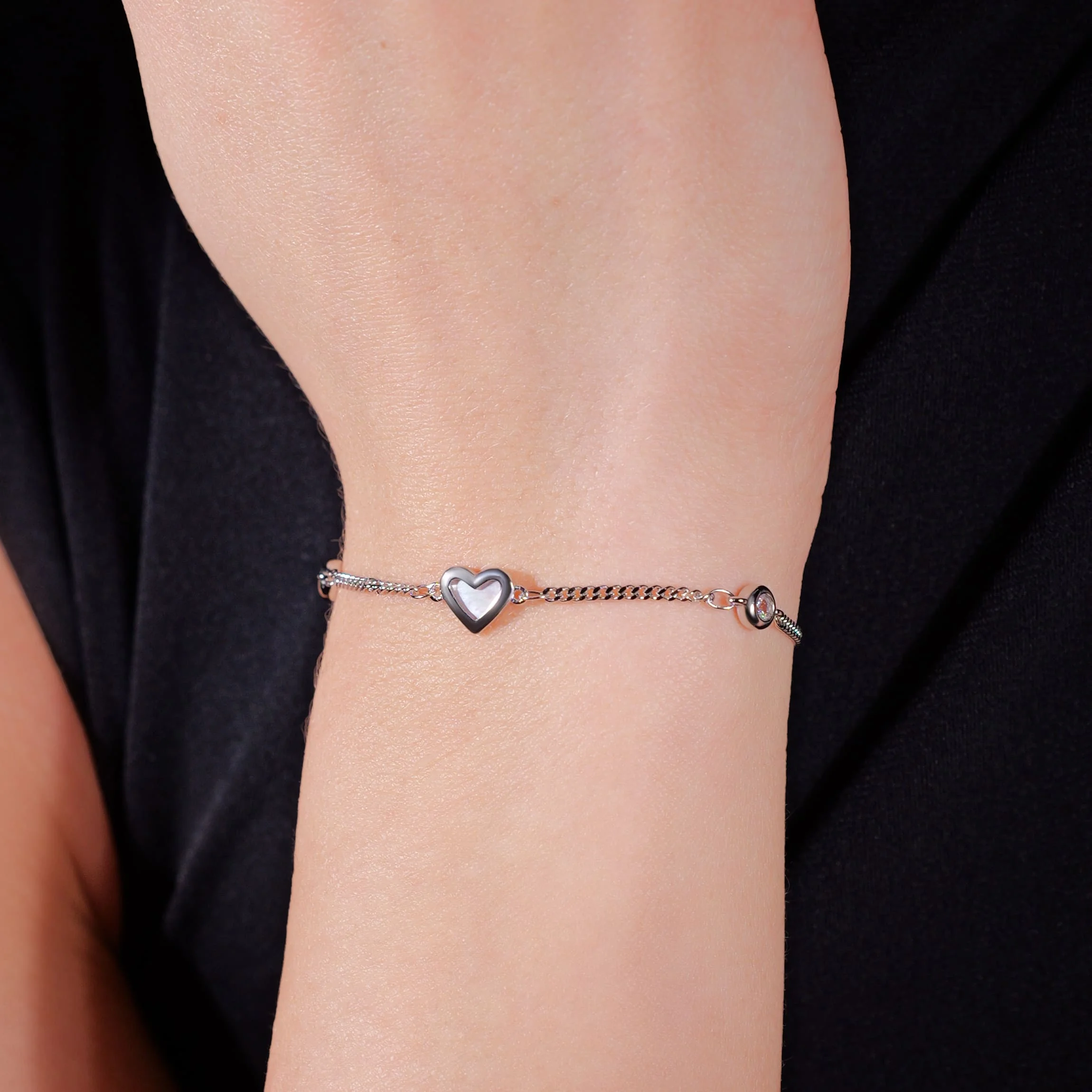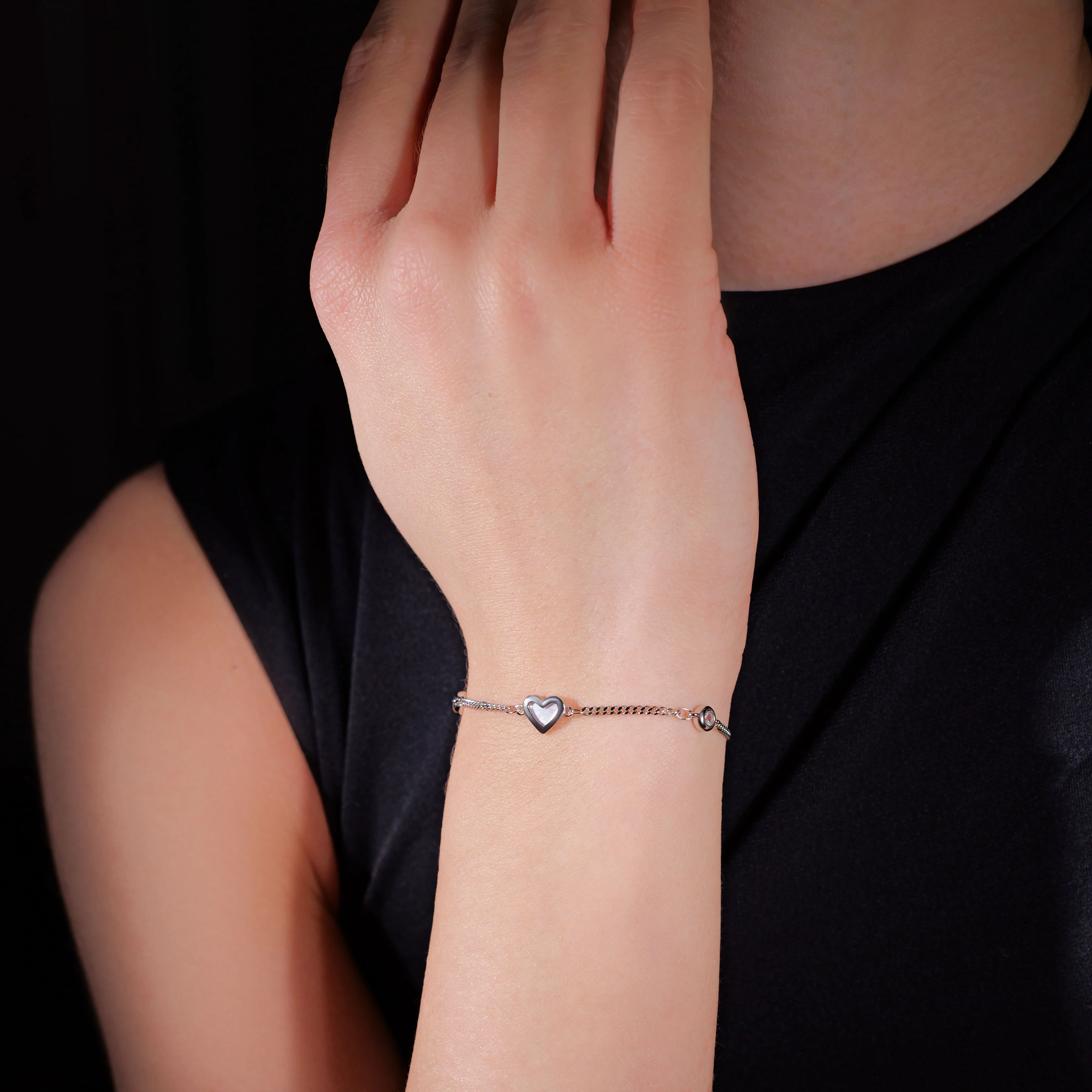 Елегантний срібний браслет з підвісами "Серце" з емаллю та фіанітами з комбінованим плетінням - 1961752