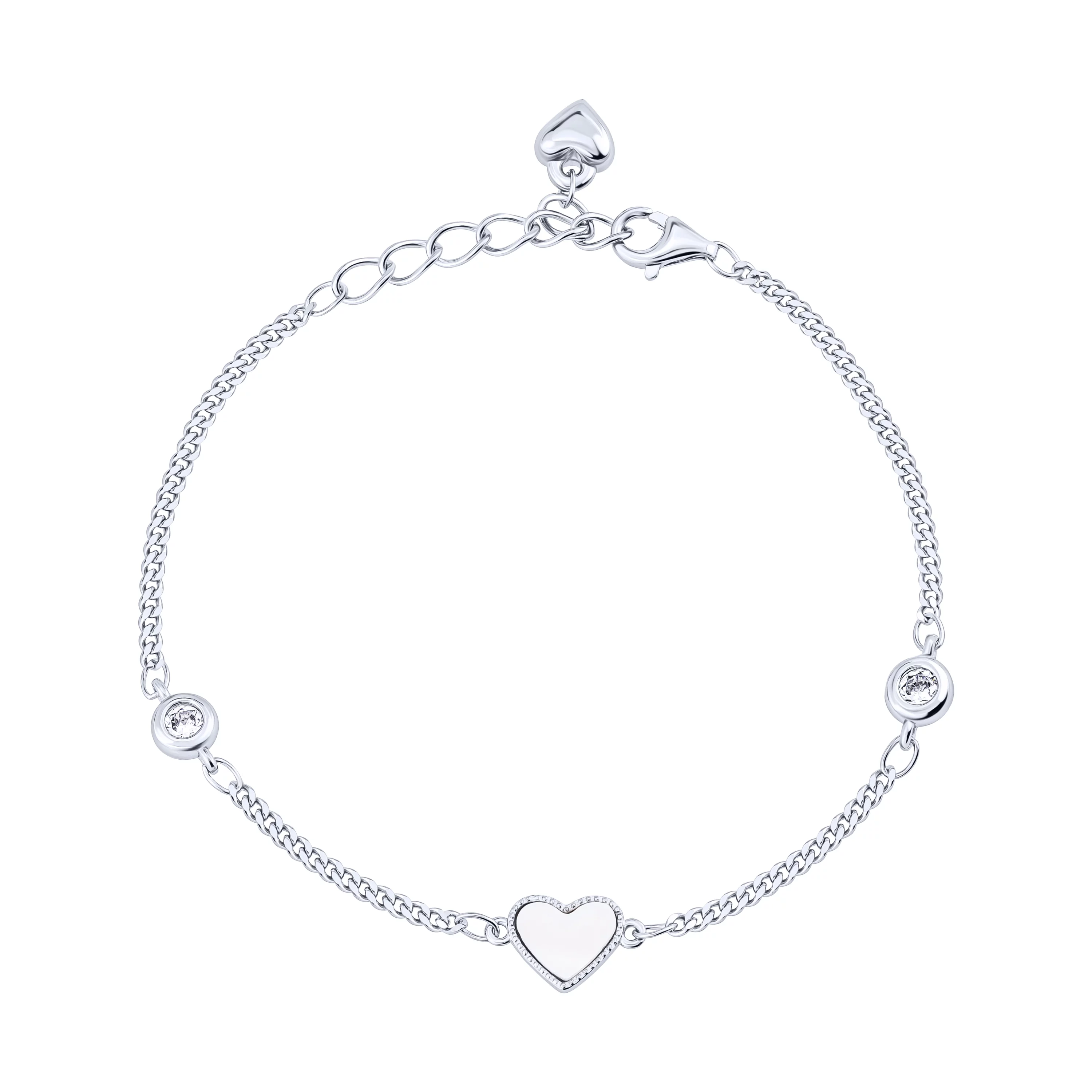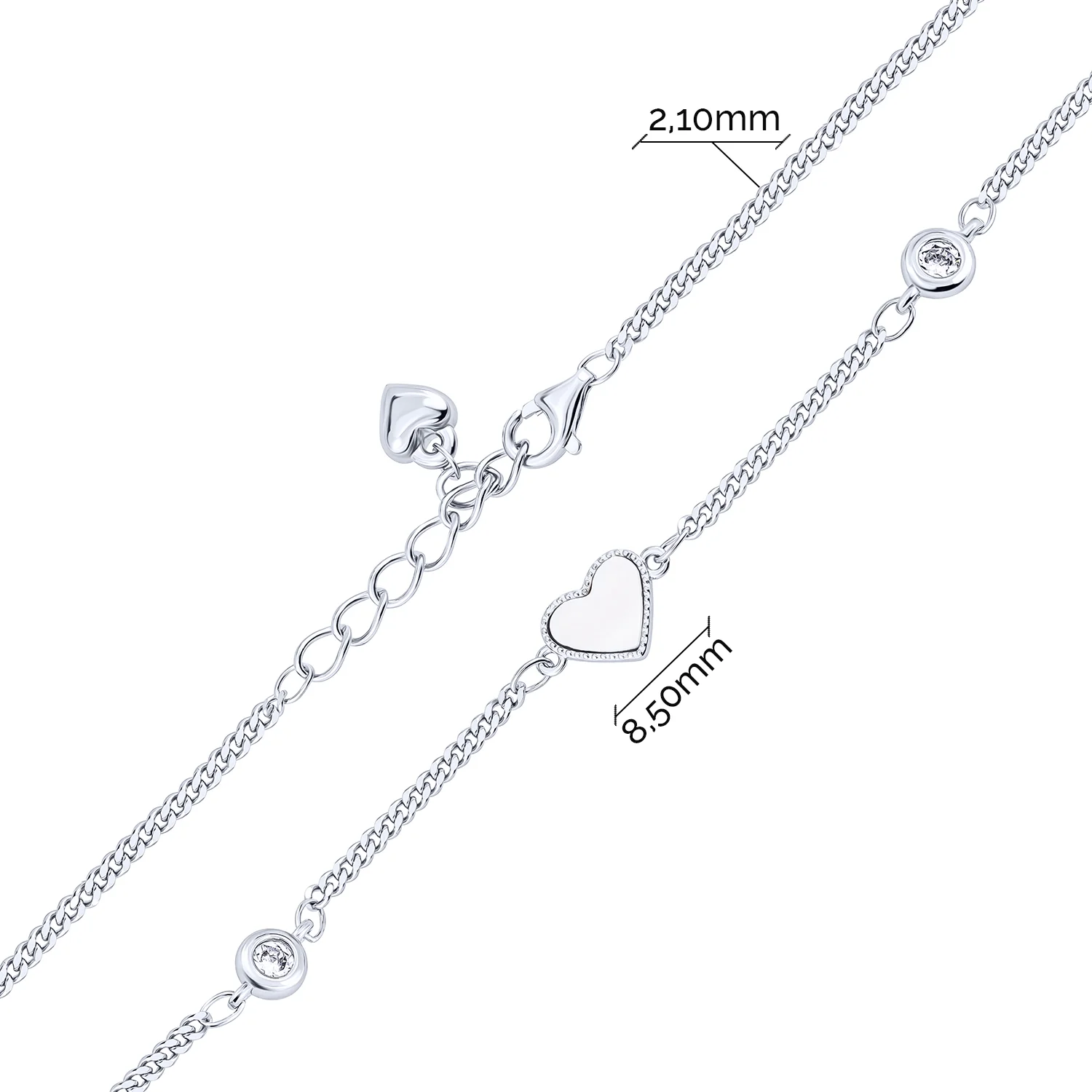 Срібний браслет з підвісами "Сердечка" з фіанітами плетіння якір - 1612545