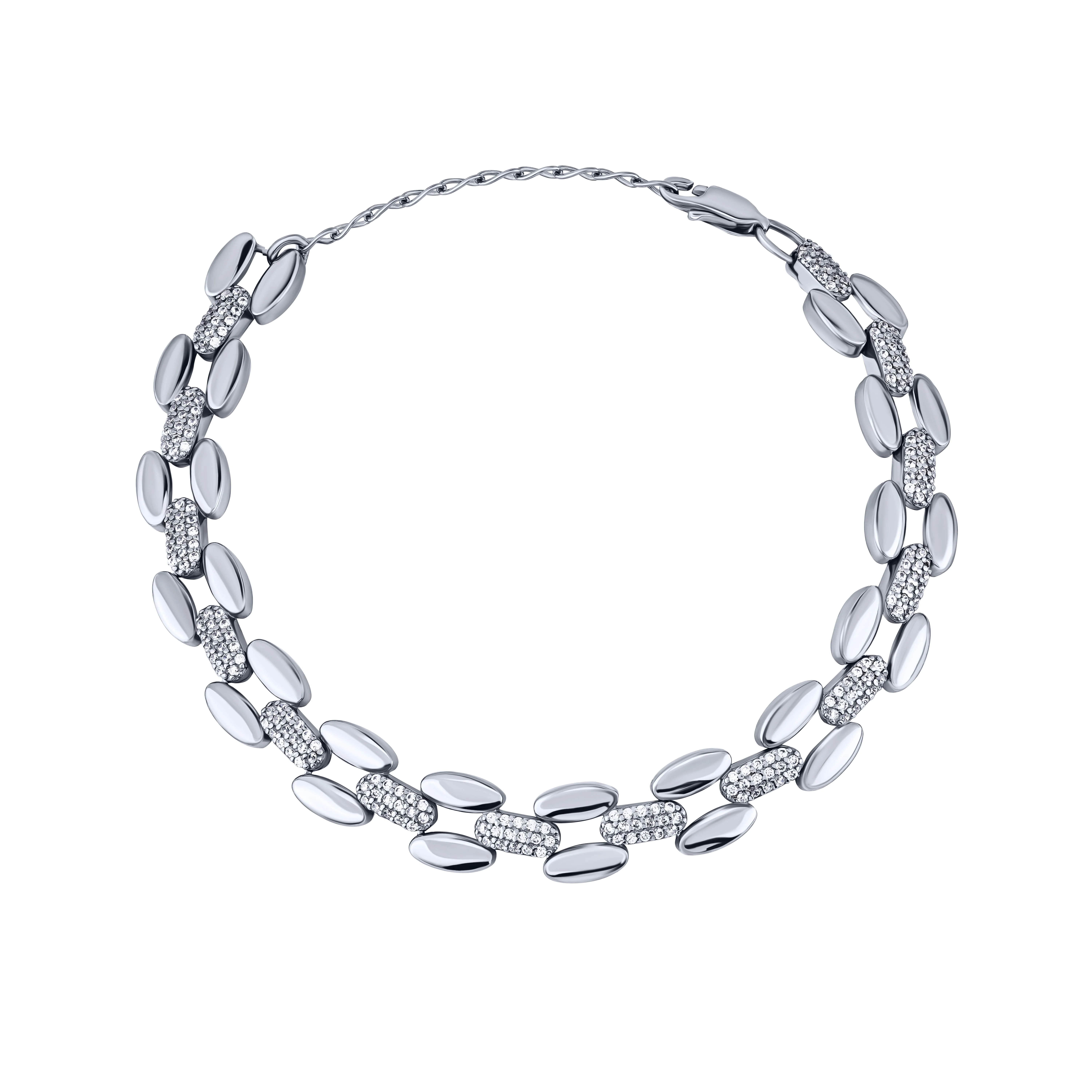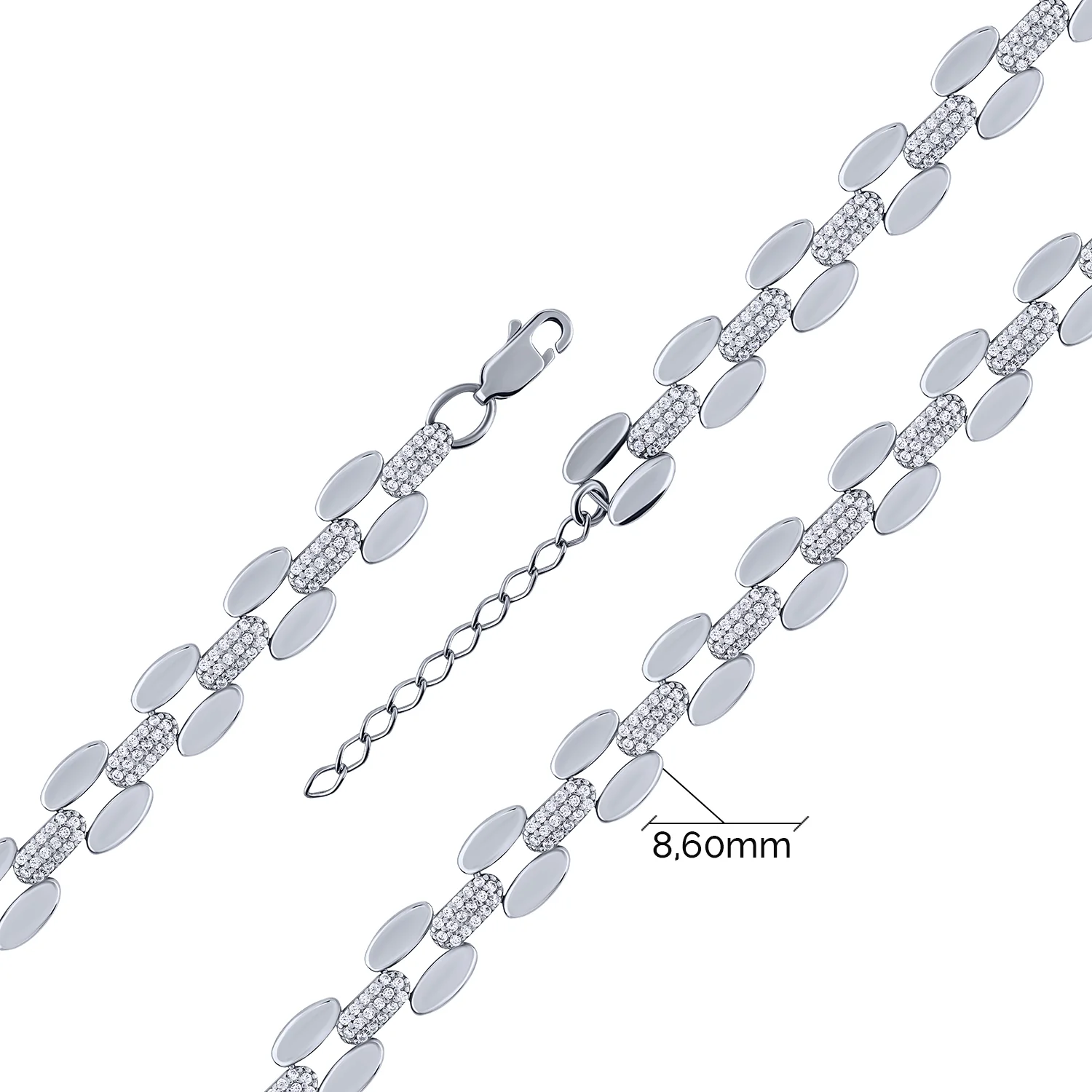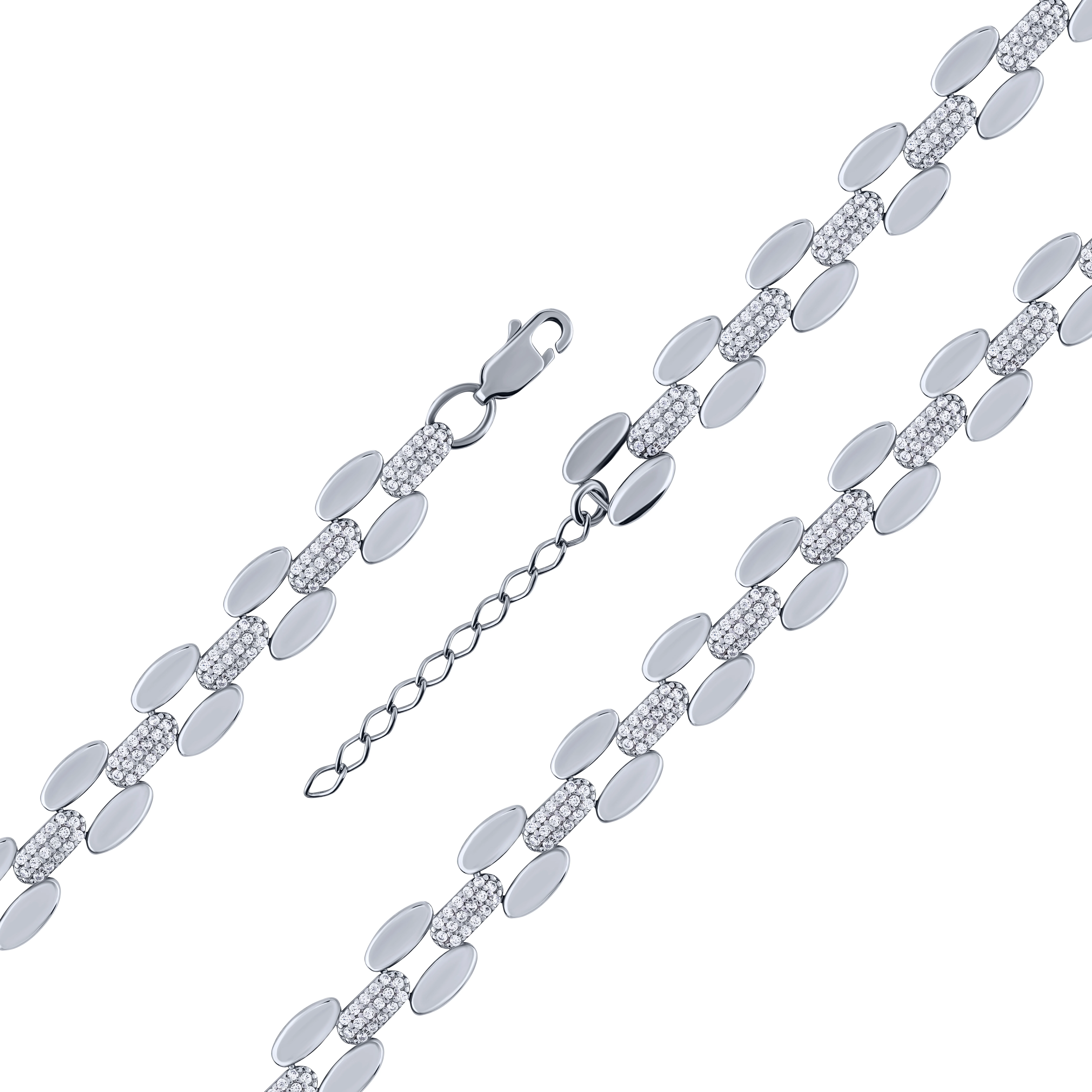 Срібний браслет у плетінні ролекс з фіанітами - 2082581