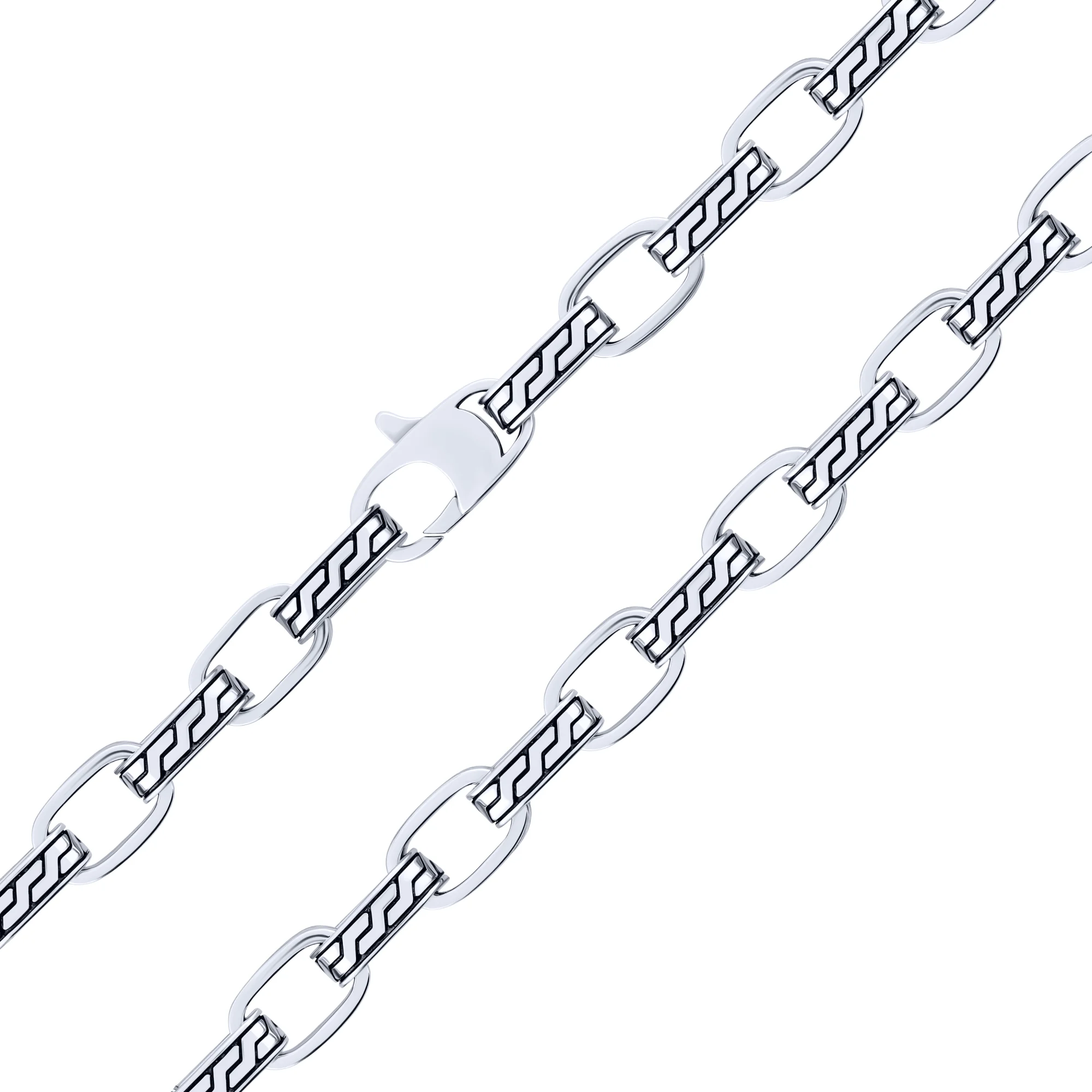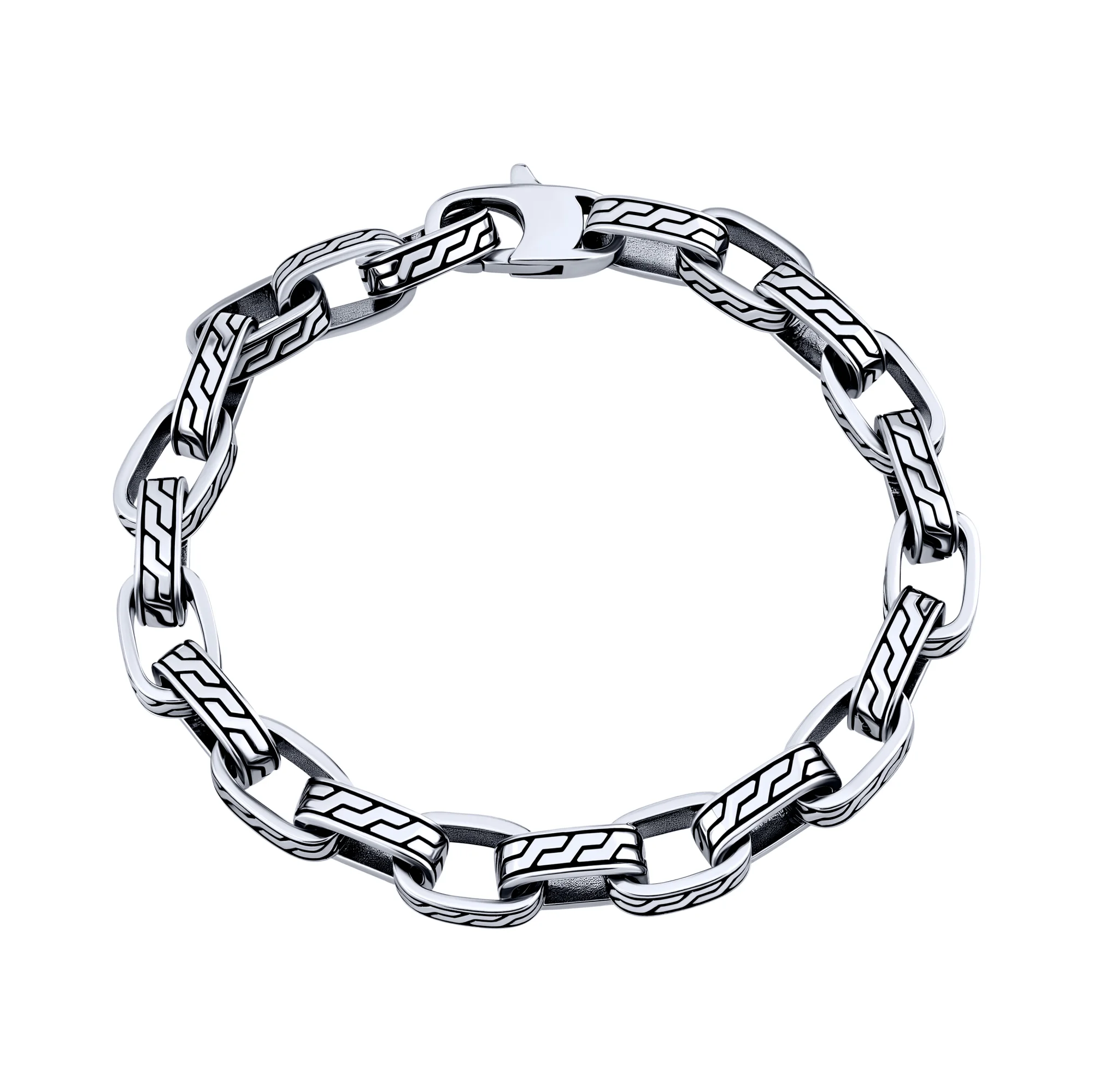 Срібний браслет у якірному плетінні з візерунком та чорнінням - 2107922