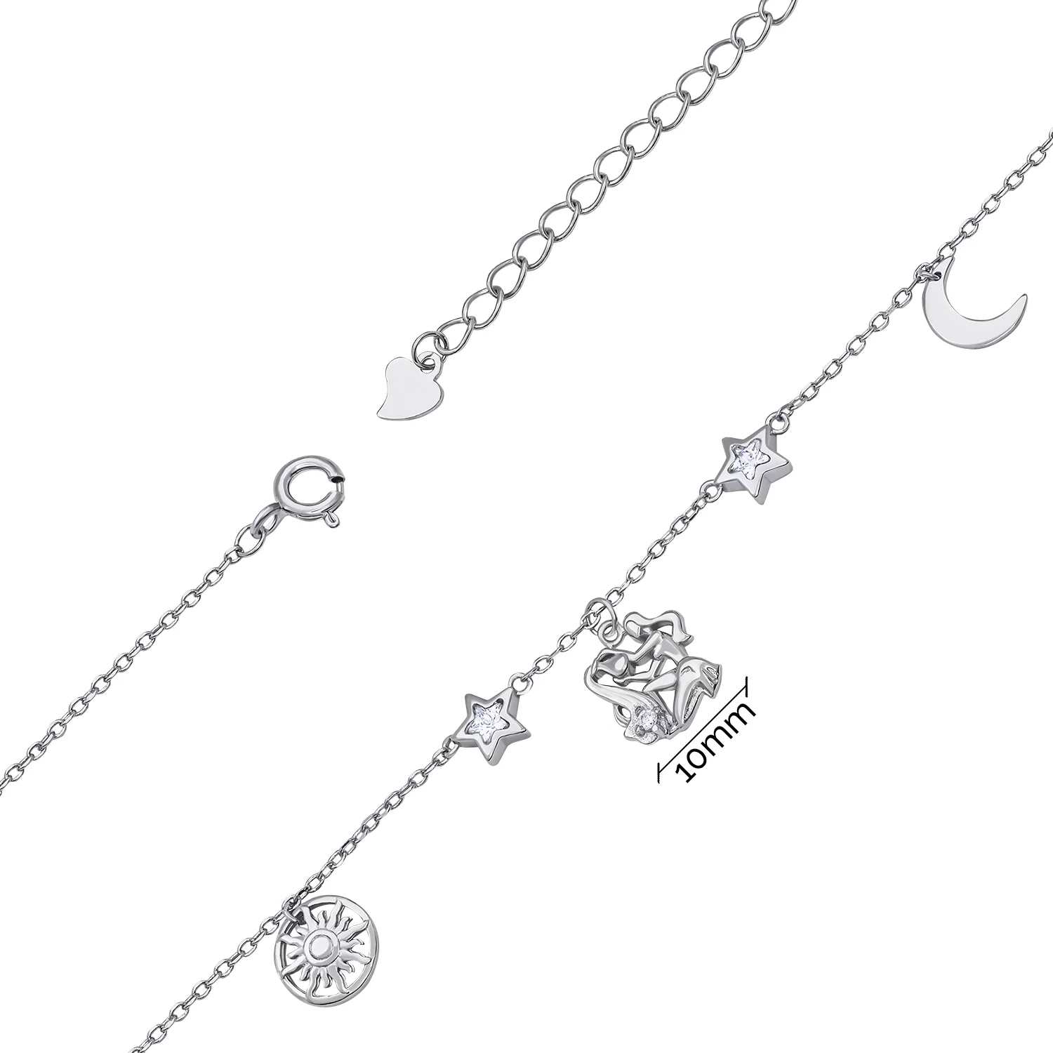 Стильний подвійний срібний браслет "Зірка" з якірним плетінням та фіанітами - 1939932