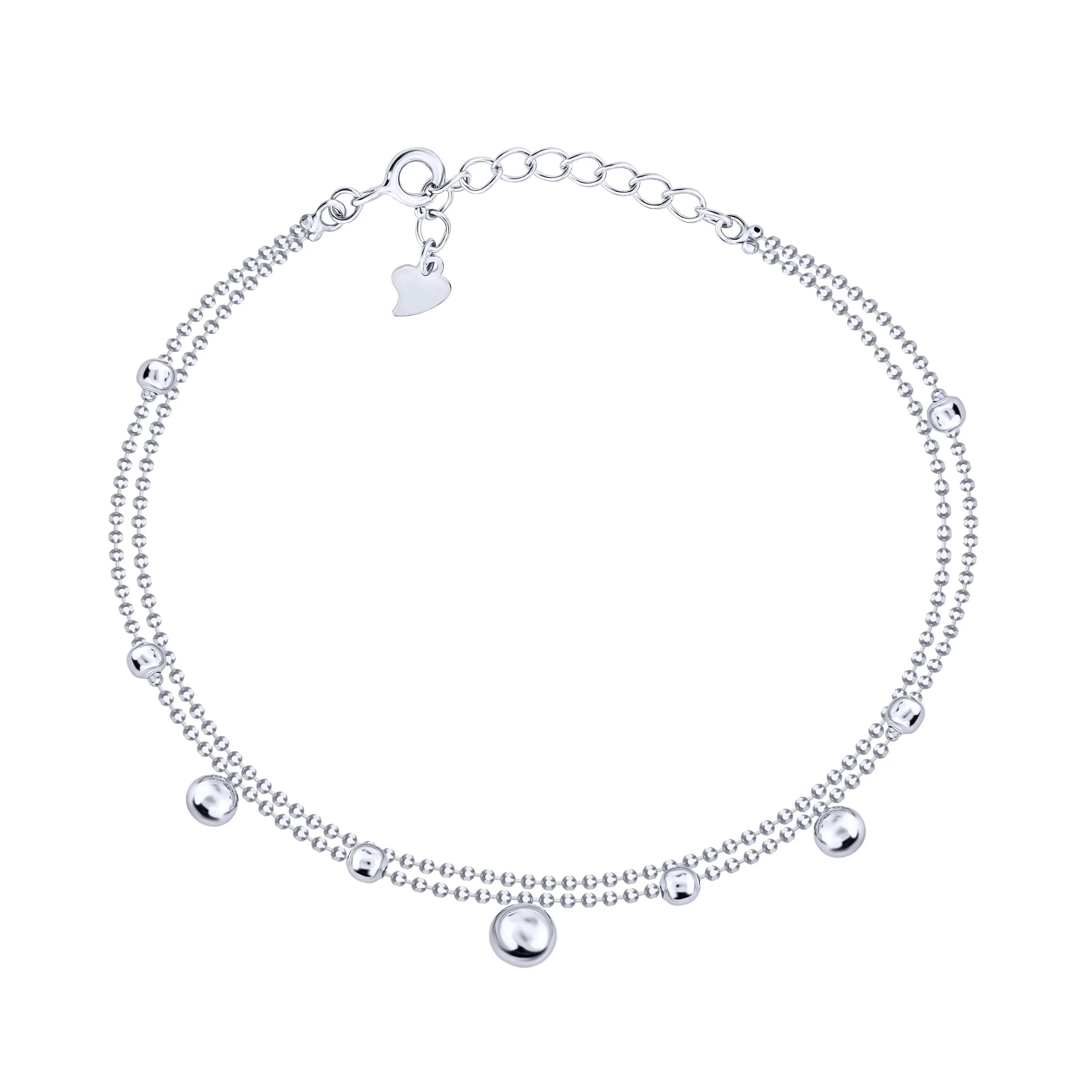 Подвійний браслет зі срібла "Серце" з кульками плетіння венеціанське та якір - 1824080