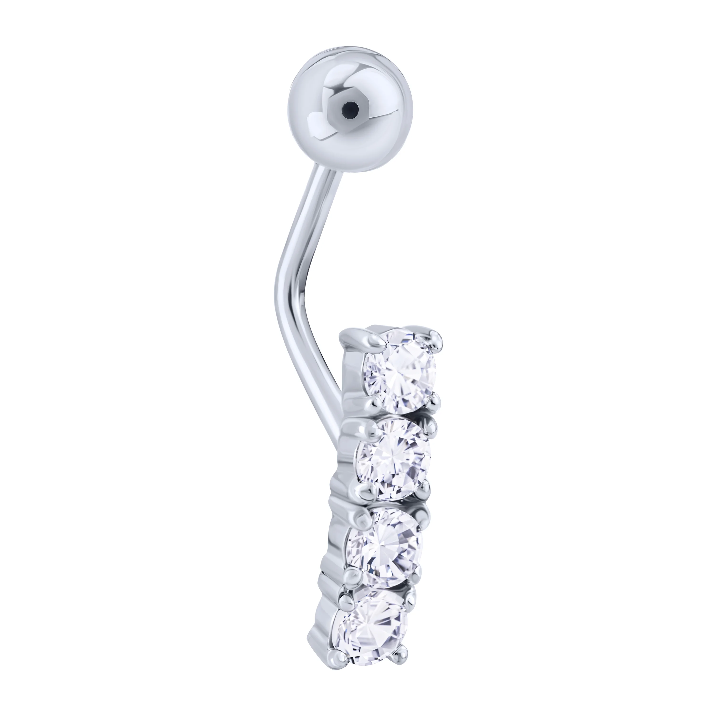 Срібний пірсинг в пупок з фіанітами - 2095819