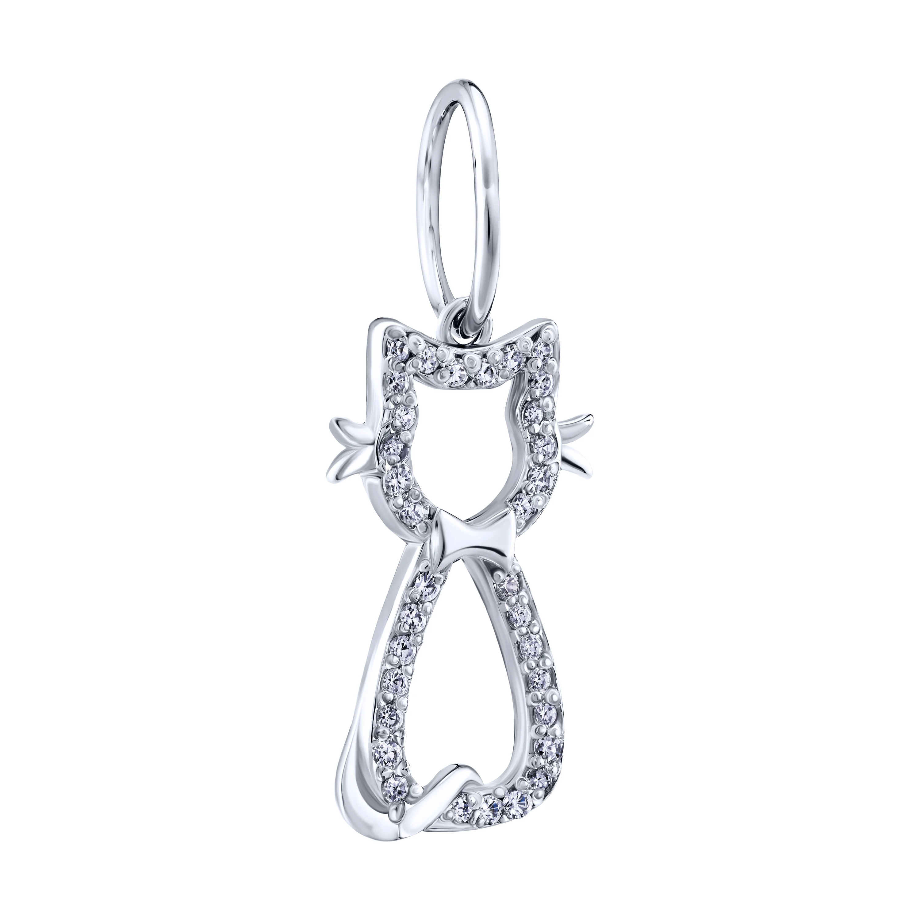 Срібний підвіс "Кішка" з фіанітами - 2095197
