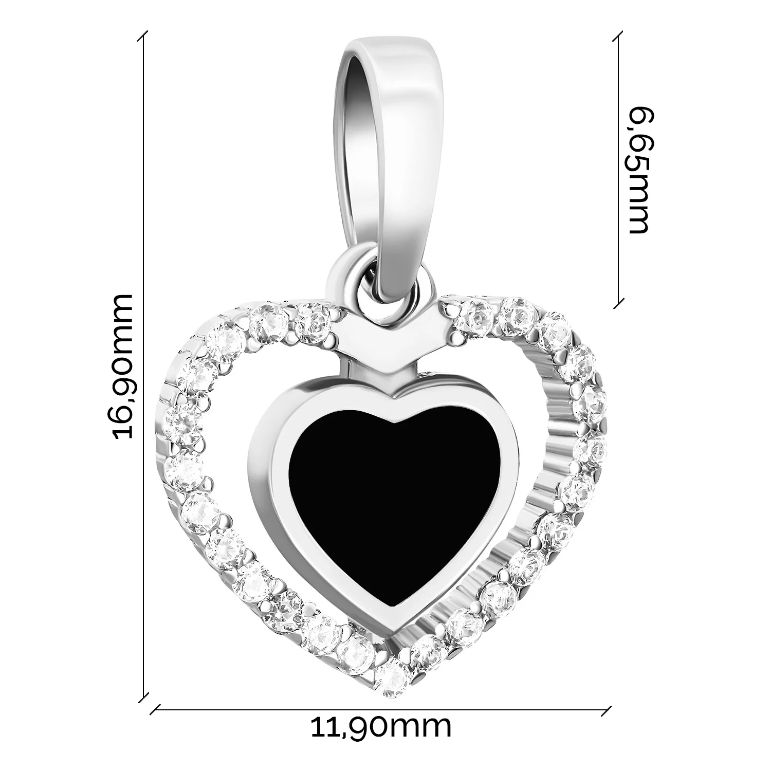 Срібний підвіс з фіанітами та емаллю "Сердечка" - 1546158