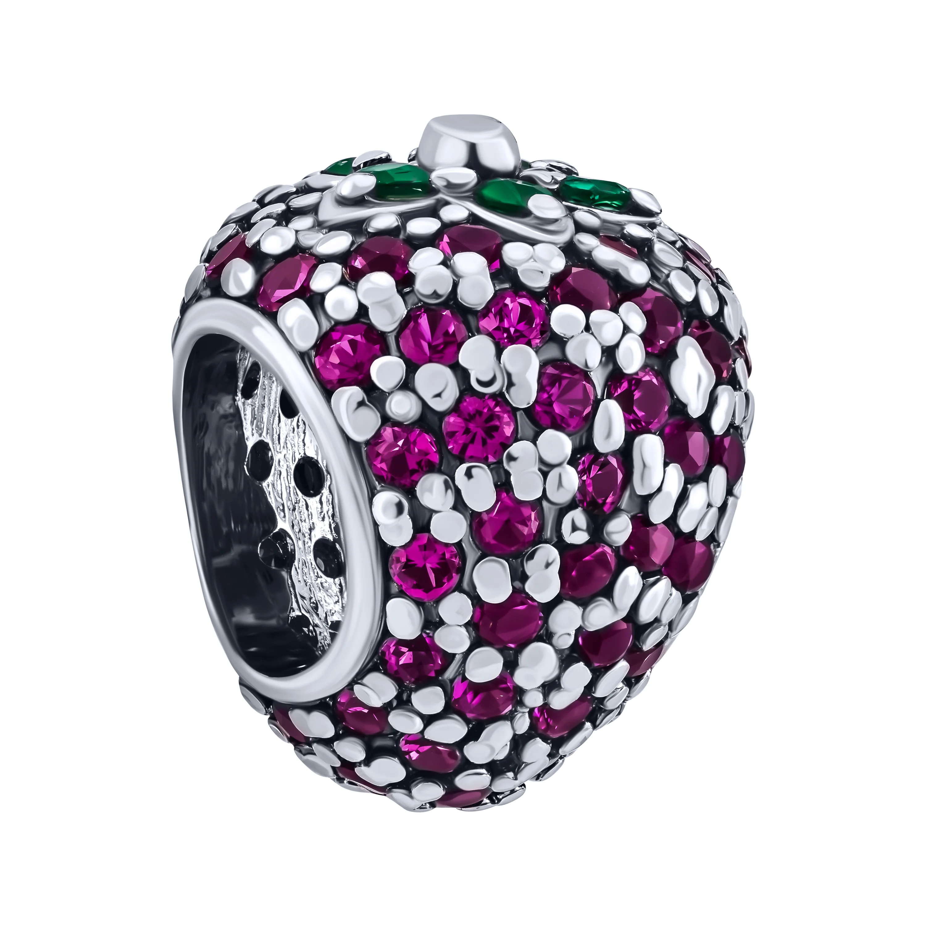 Срібний шарм "Полуниця" з кольоровими фіанітами - 2092237