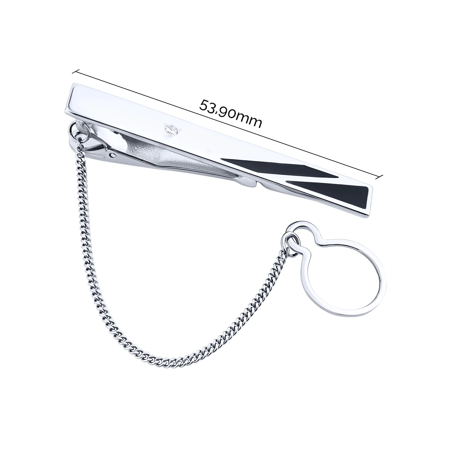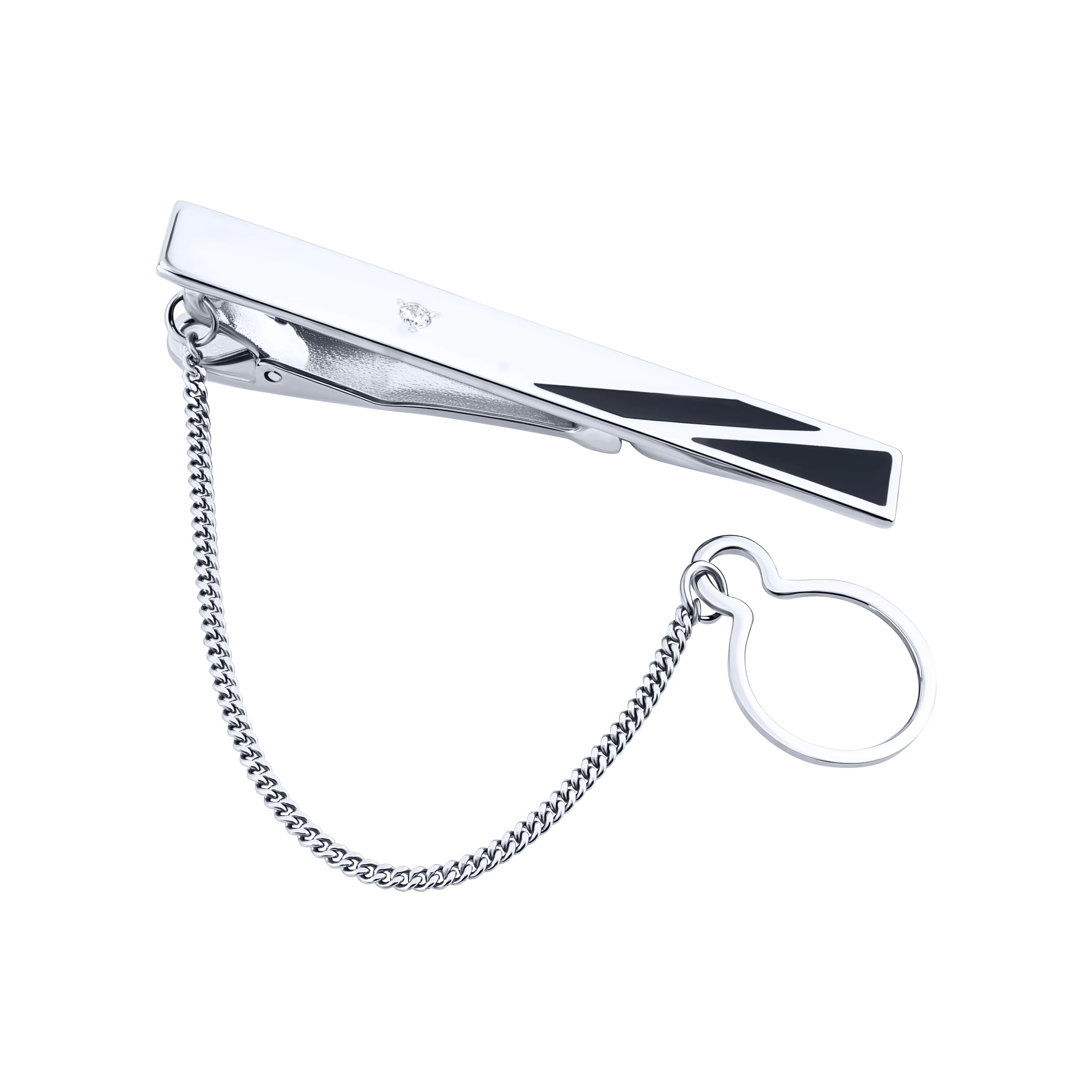 Срібний затискач для краватки з фіанітом та емаллю - 2102014
