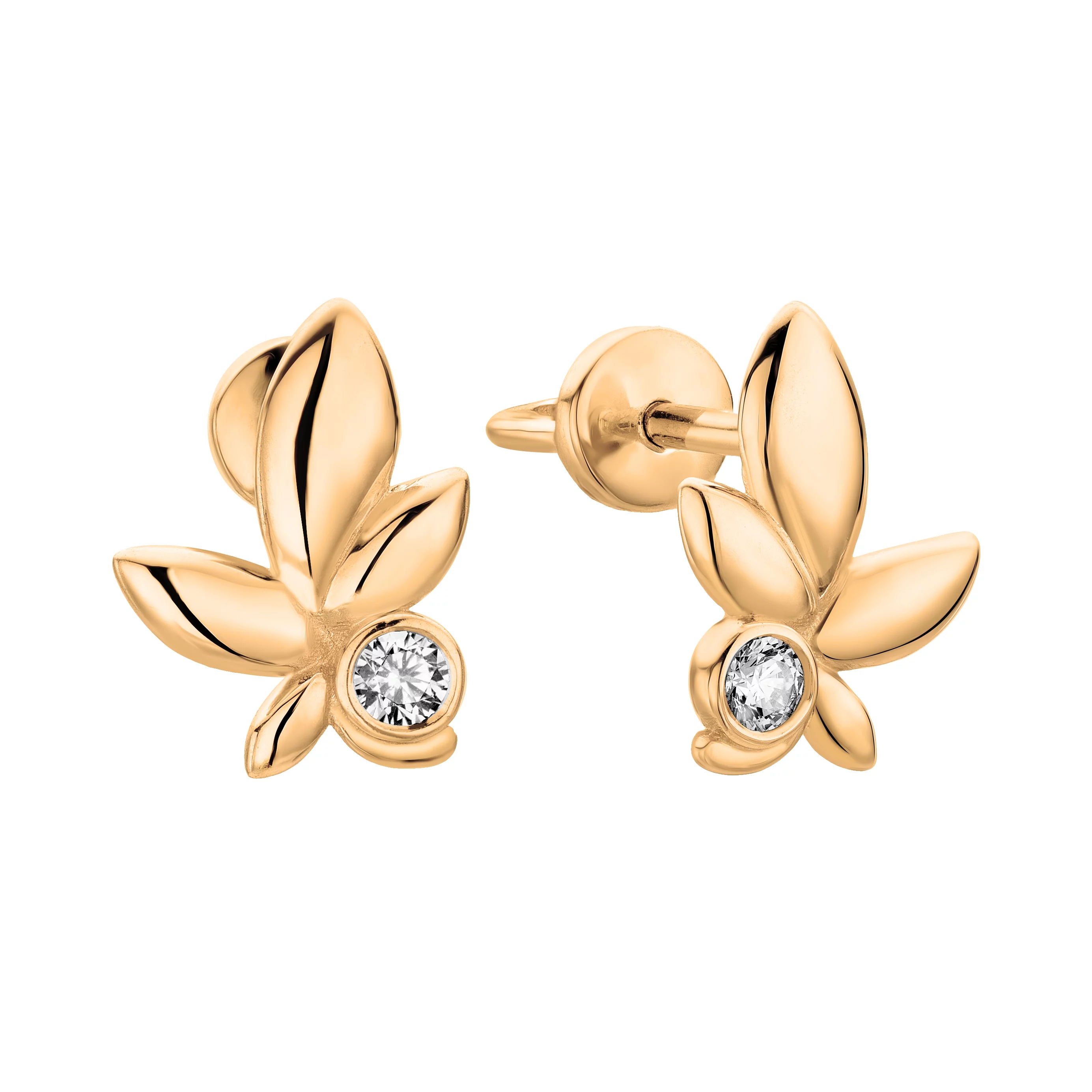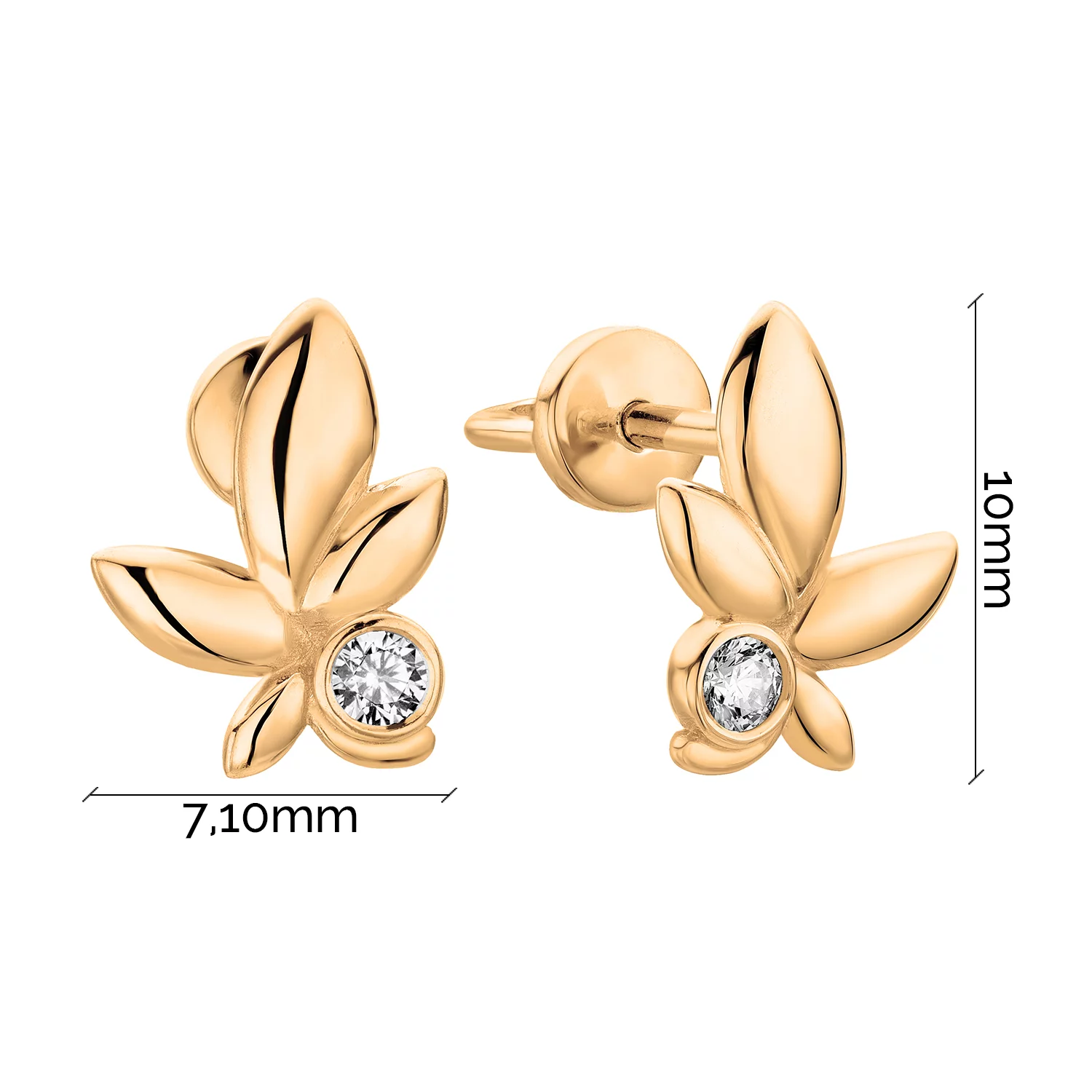 Стильні сережки-гвоздики "Флора" з червоного золота з емаллю та фіанітом - 1927691