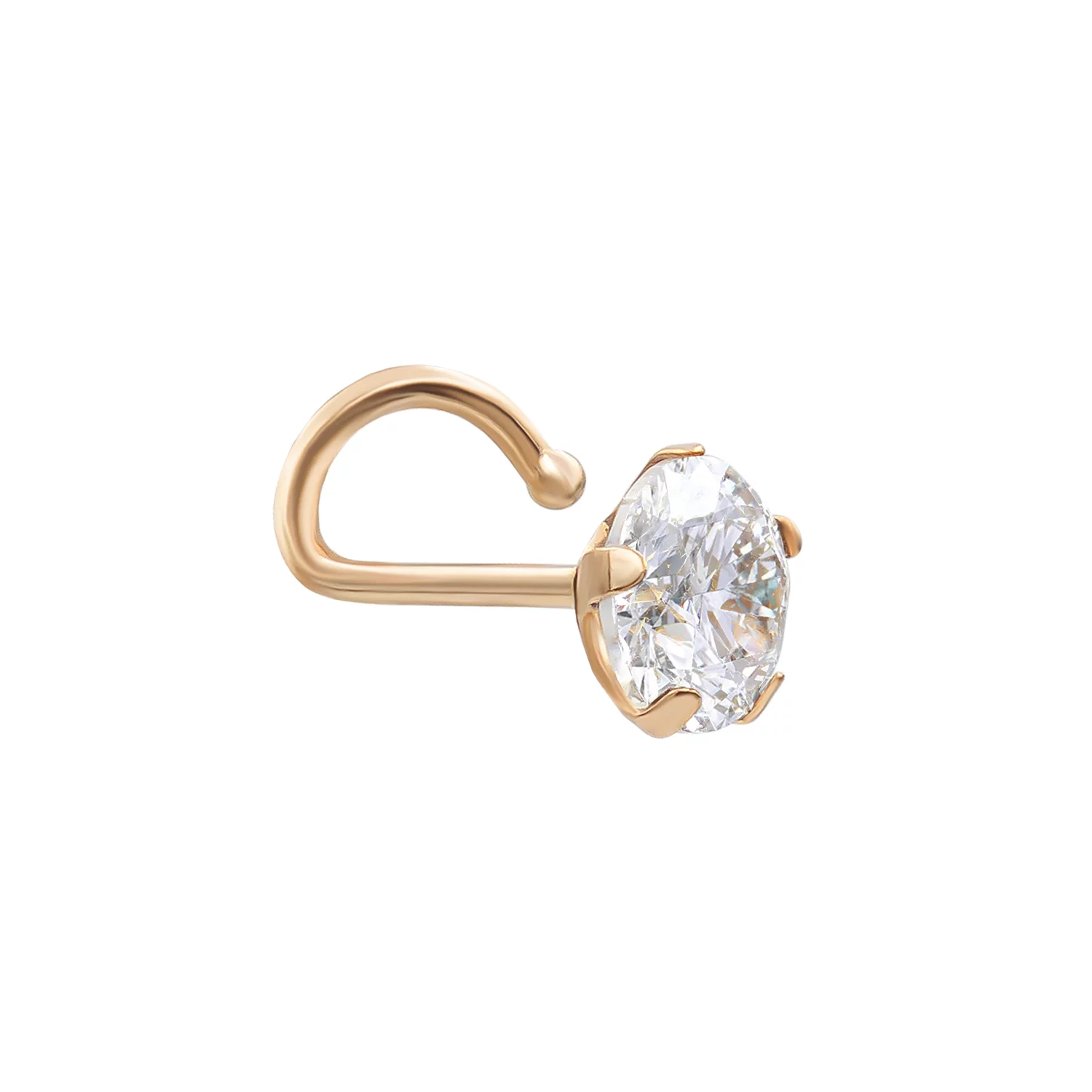 Пірсинг у ніс із червоного золота з фіанітом - 1391521