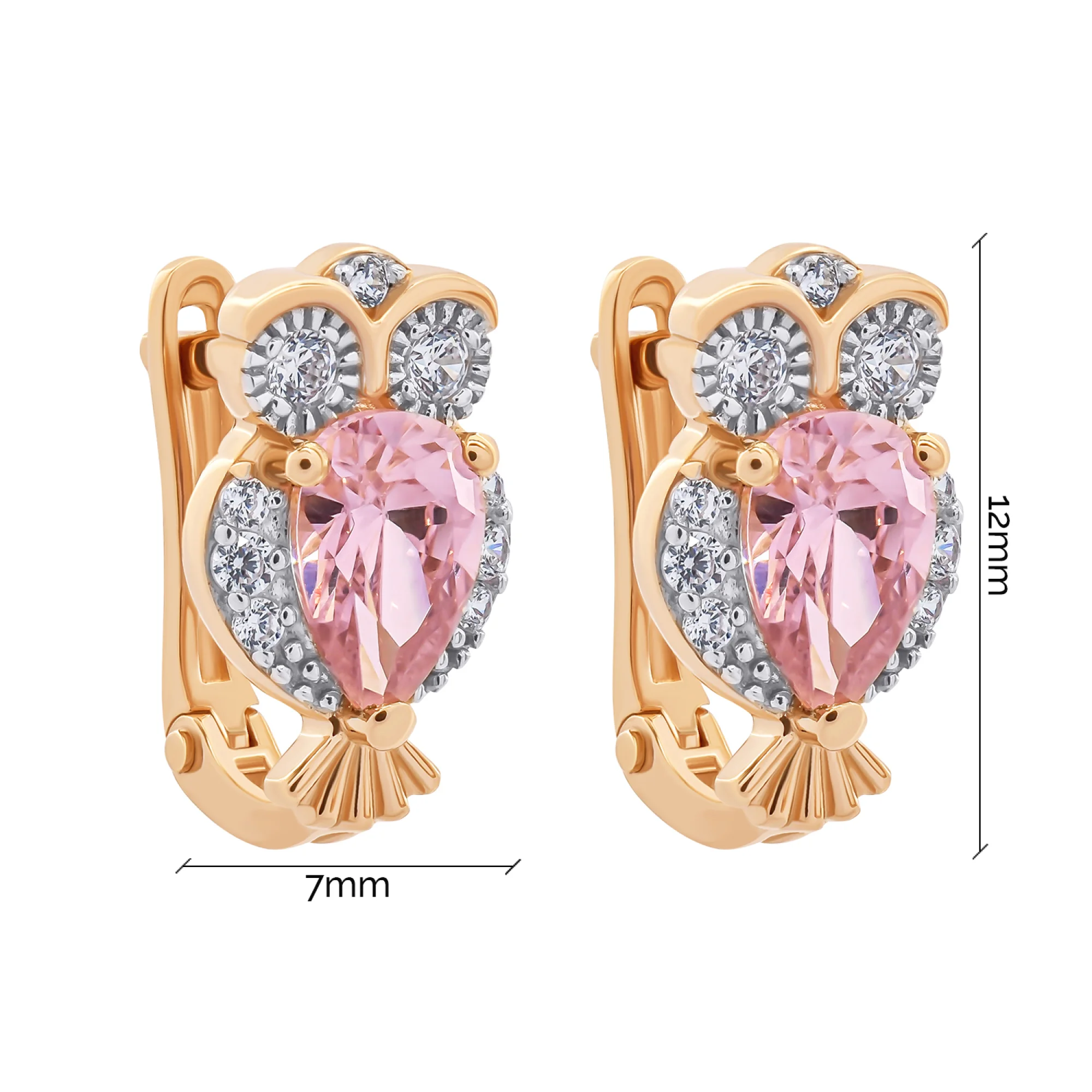 Сережки дитячі з червоного золота "Киця у короні" з фіанітами - 1775168