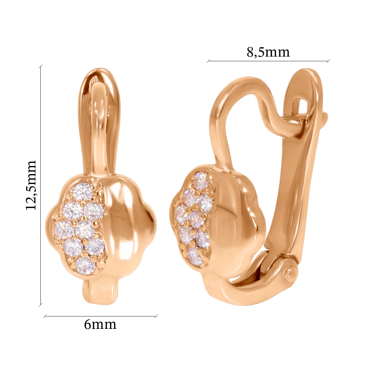 Сережки дитячі з червоного золота з фіанітом - 1397397