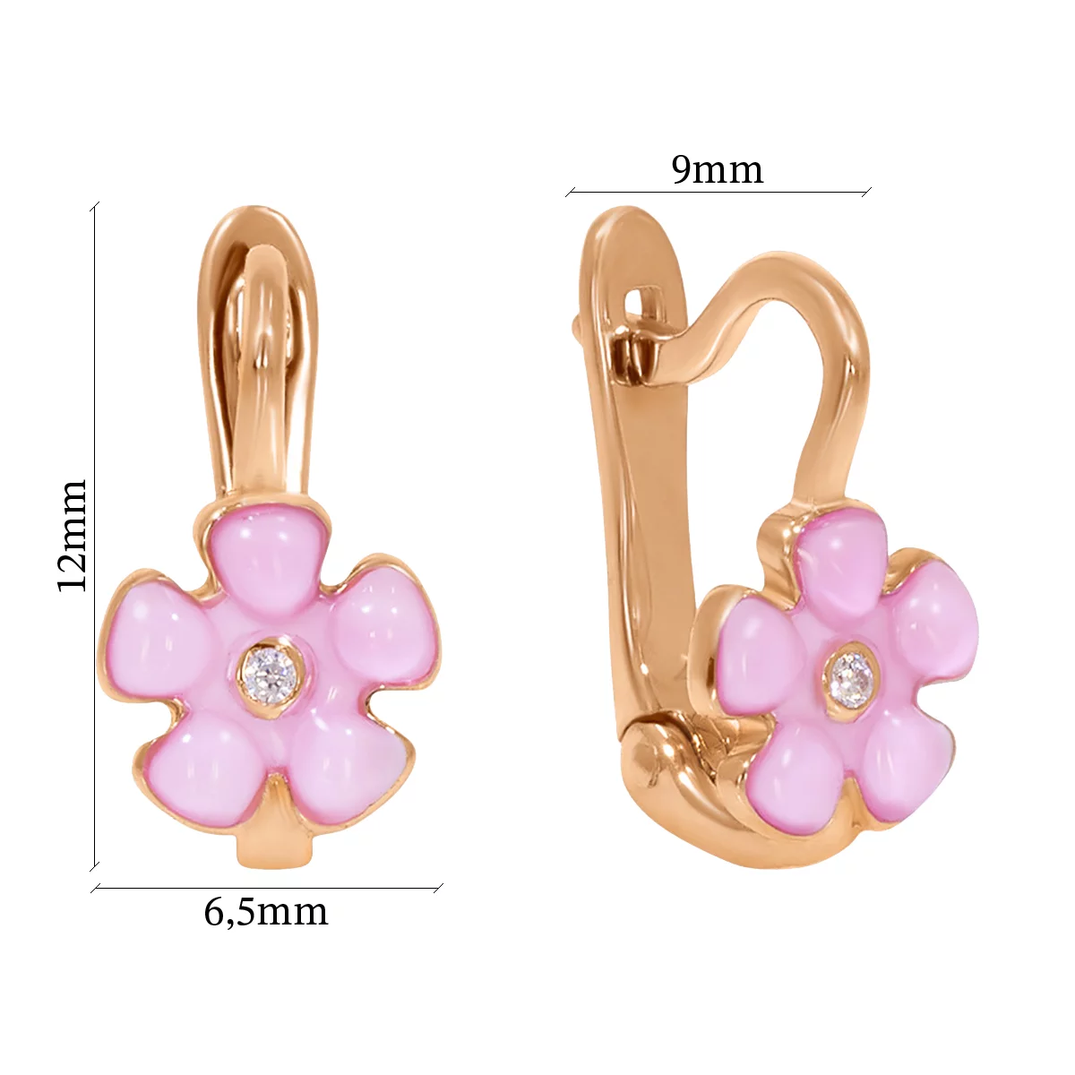 Сережки-гвоздики з червоного золота з фіанітом у вигляді квіточки - 1445201