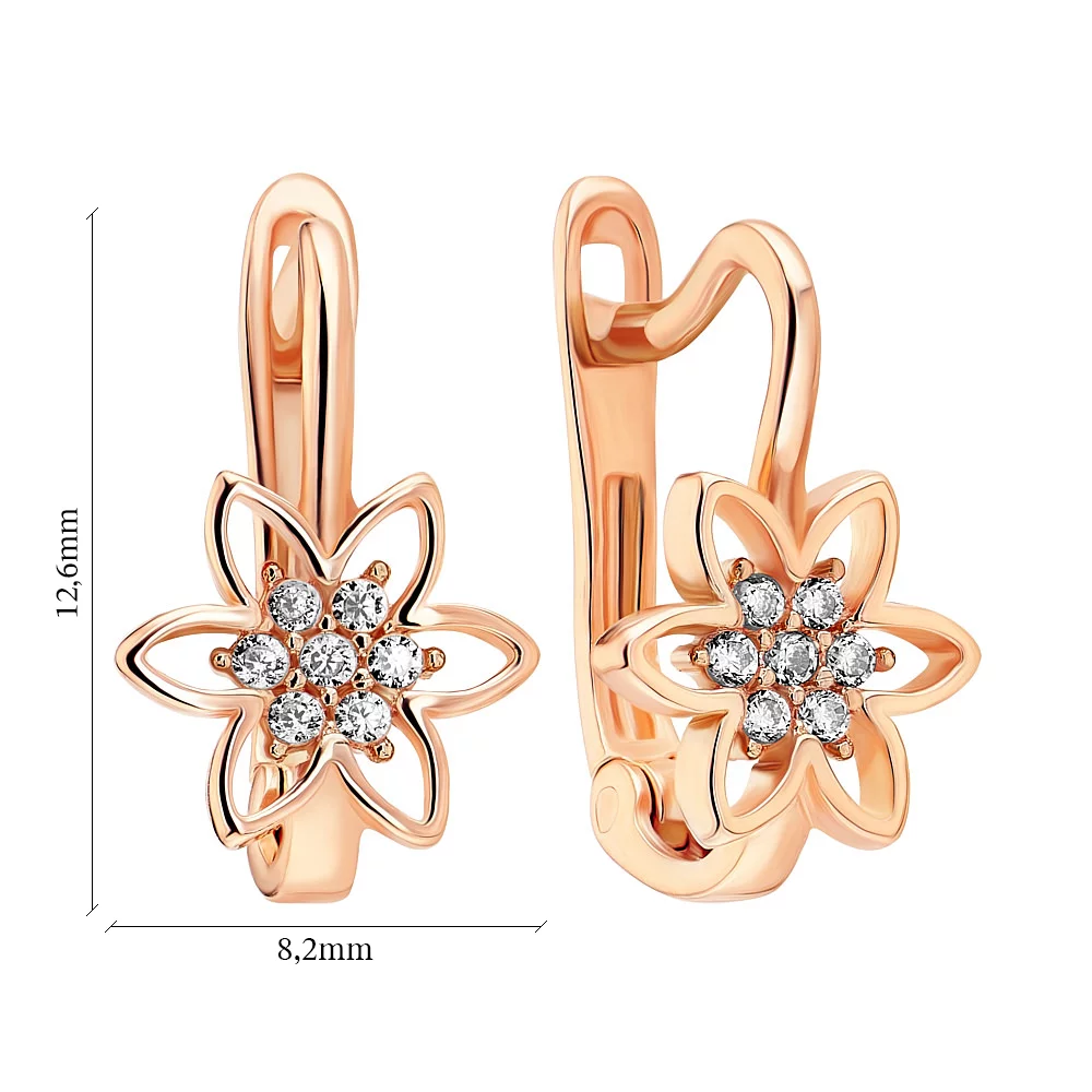 Стильні сережки-гвоздики "Флора" з червоного золота з емаллю та фіанітом - 1927691