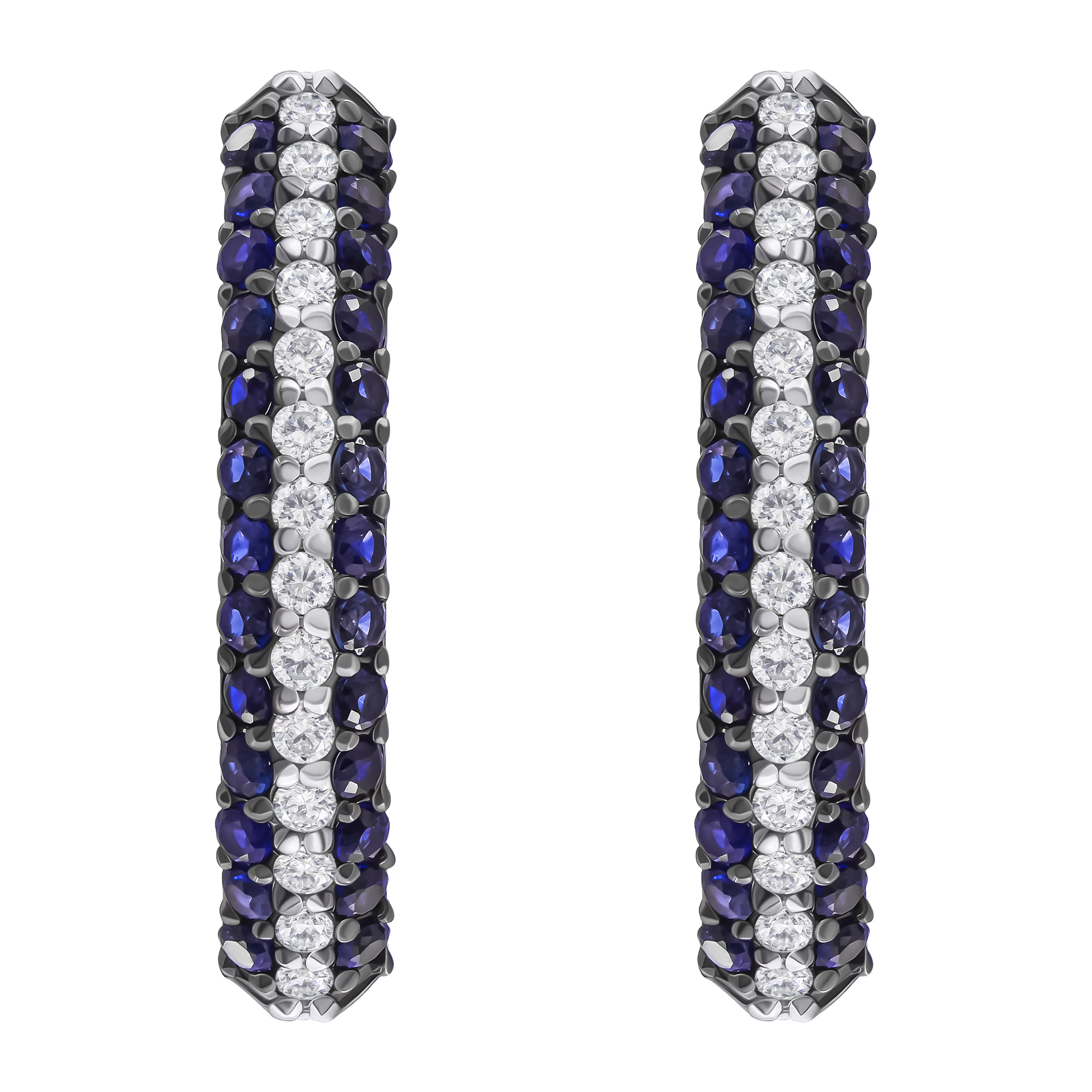 Сережки-гвоздики в білому золоті з діамантами і підвісними прямокутниками - 1704447
