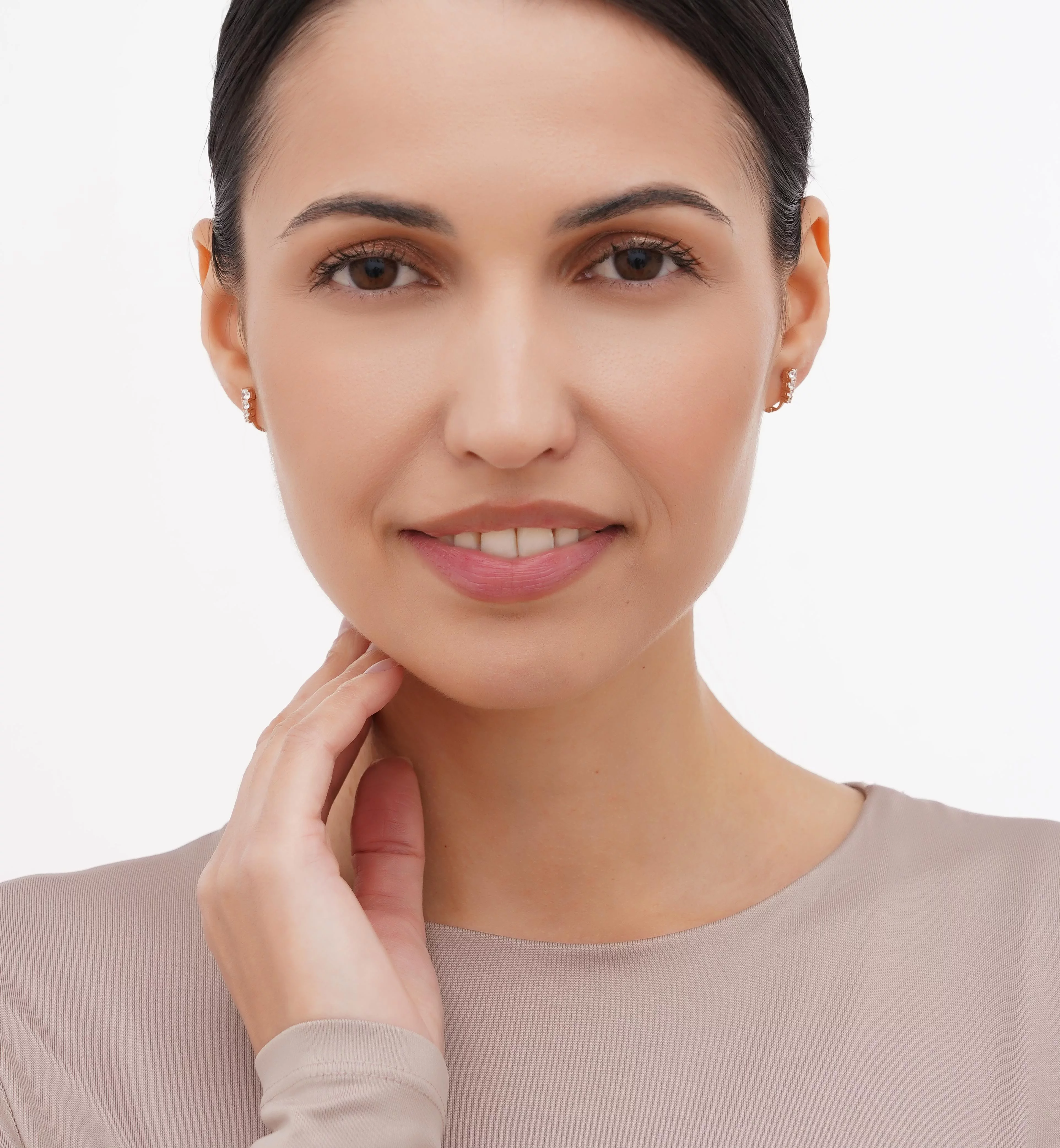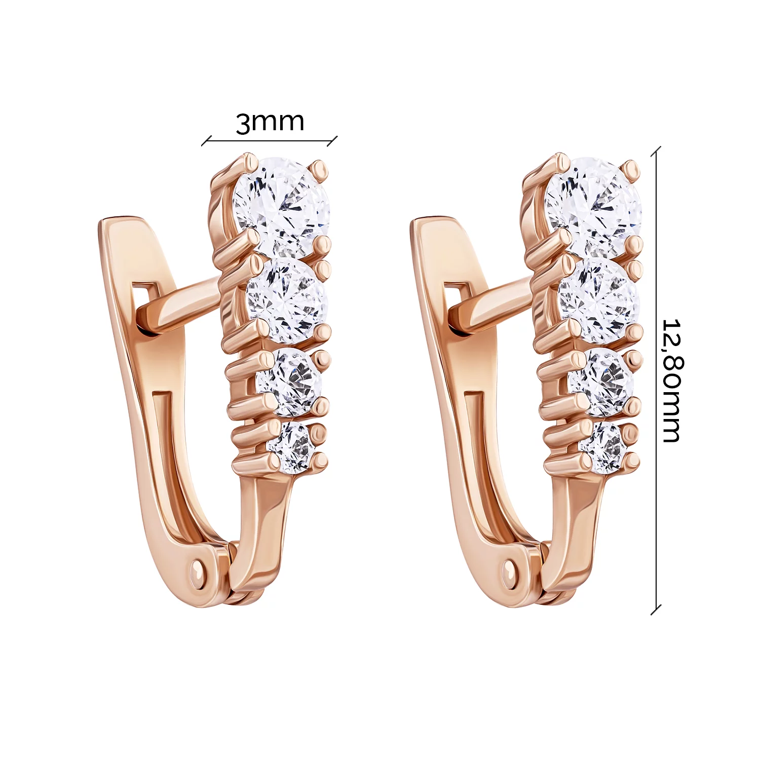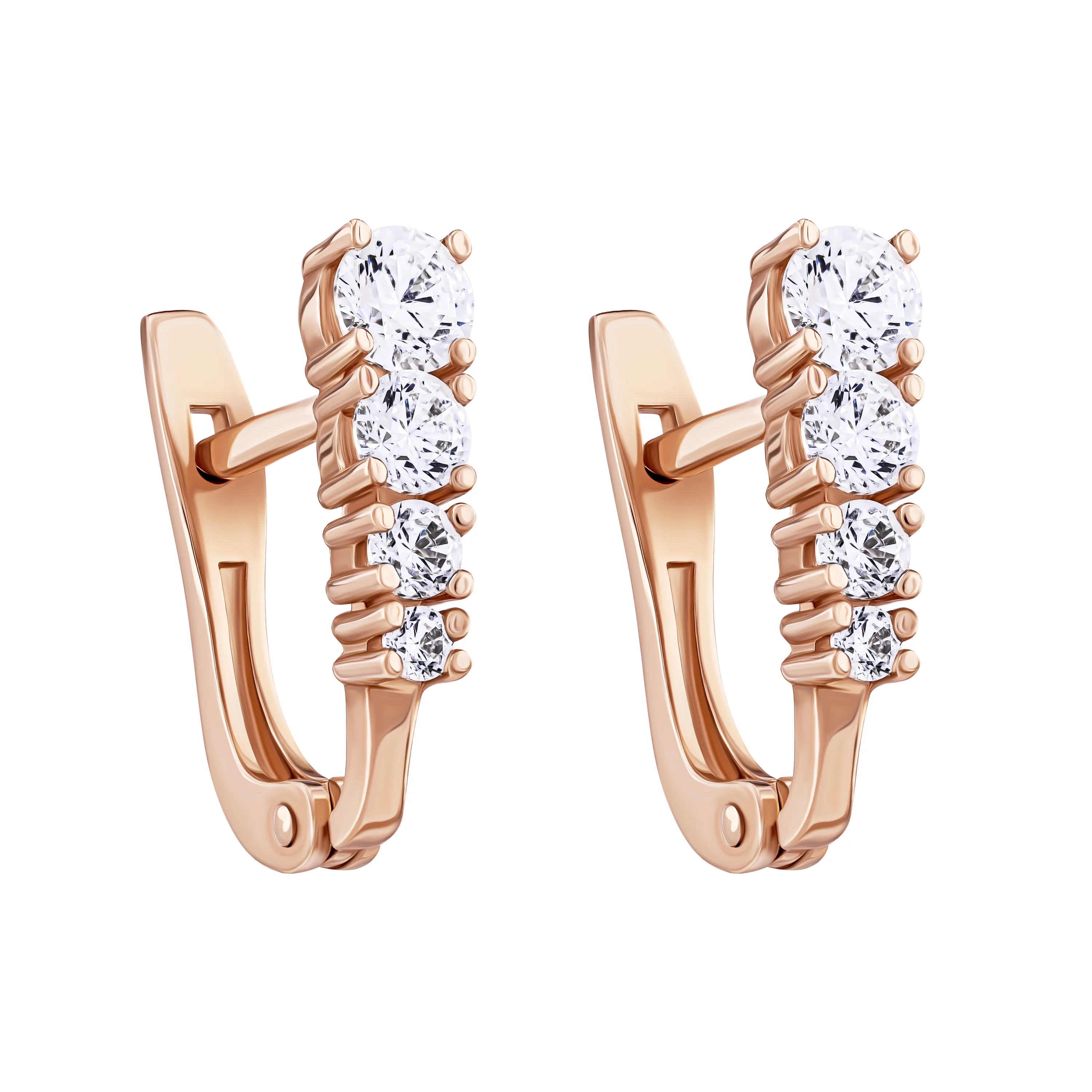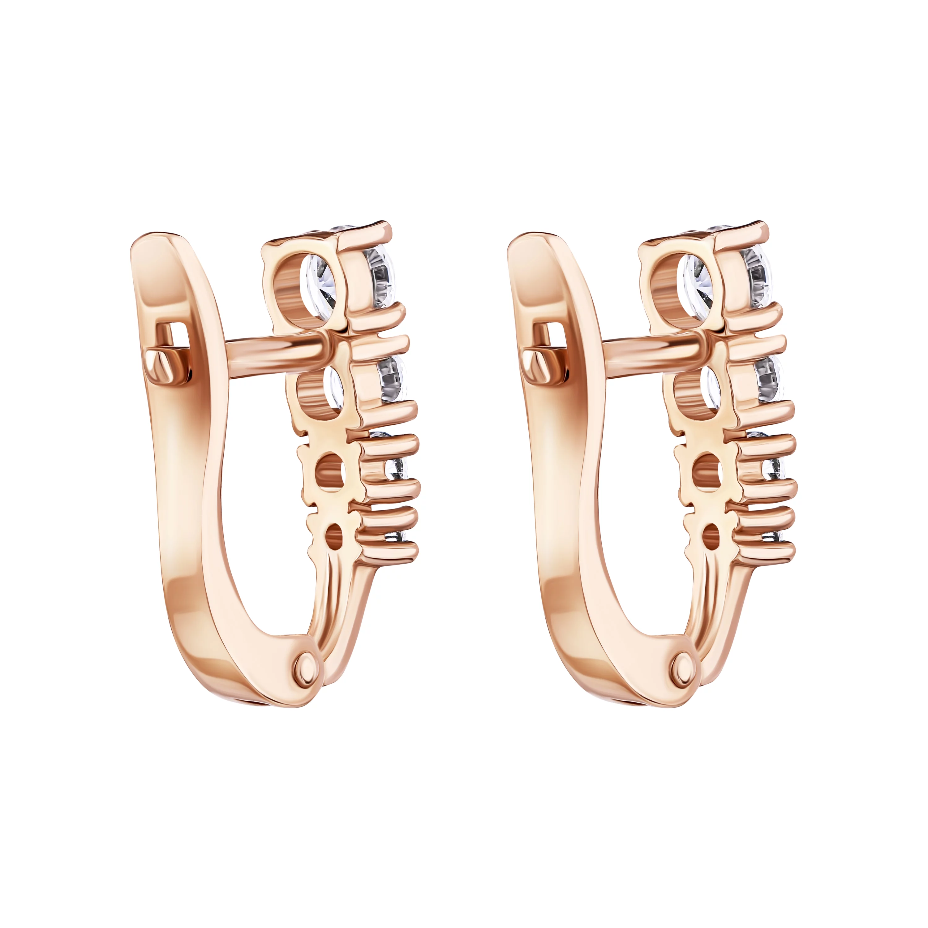 Елегантні сережки з червоного золота з фіанітами - 1687845