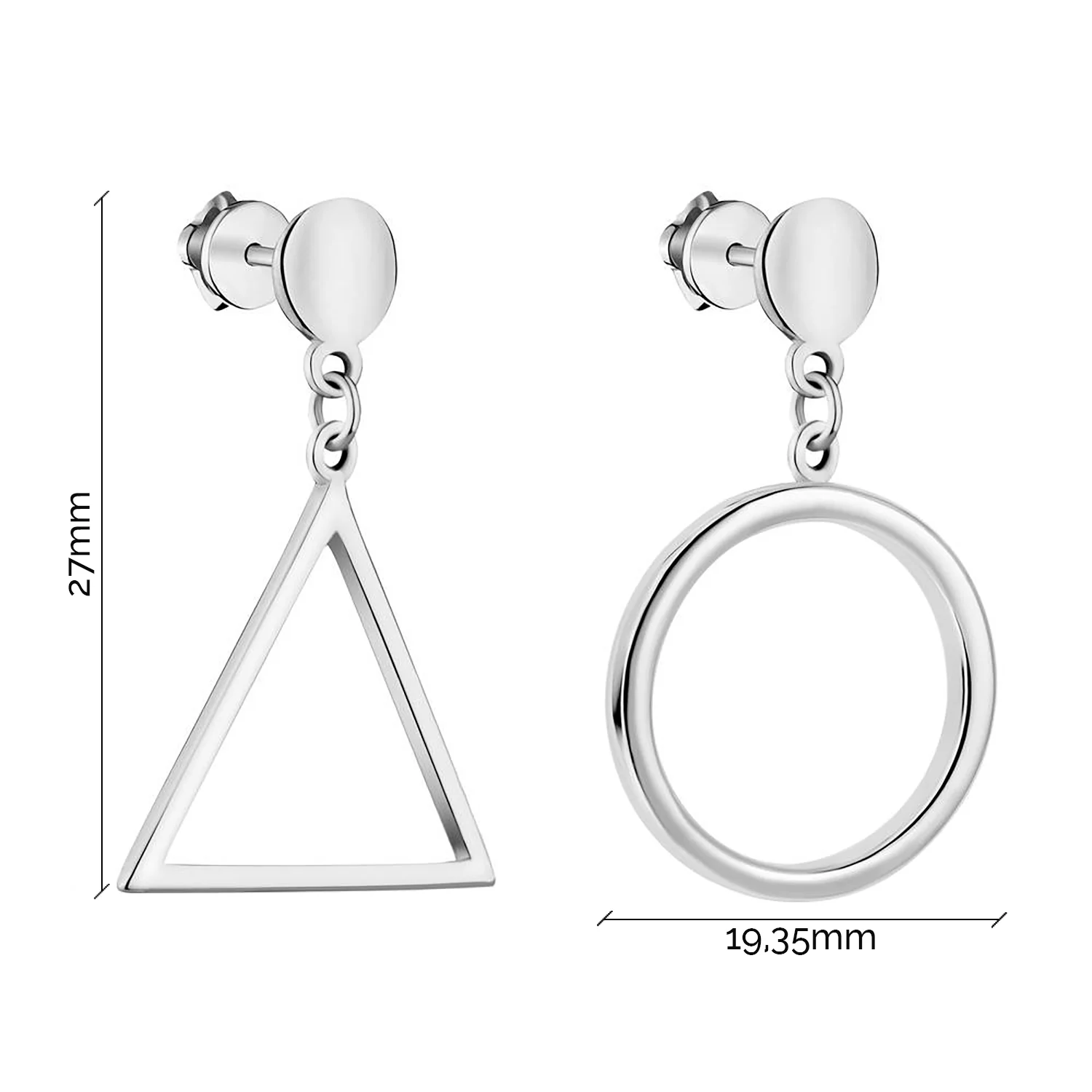Геометричні срібні сережки-пусети з підвісами - 970139