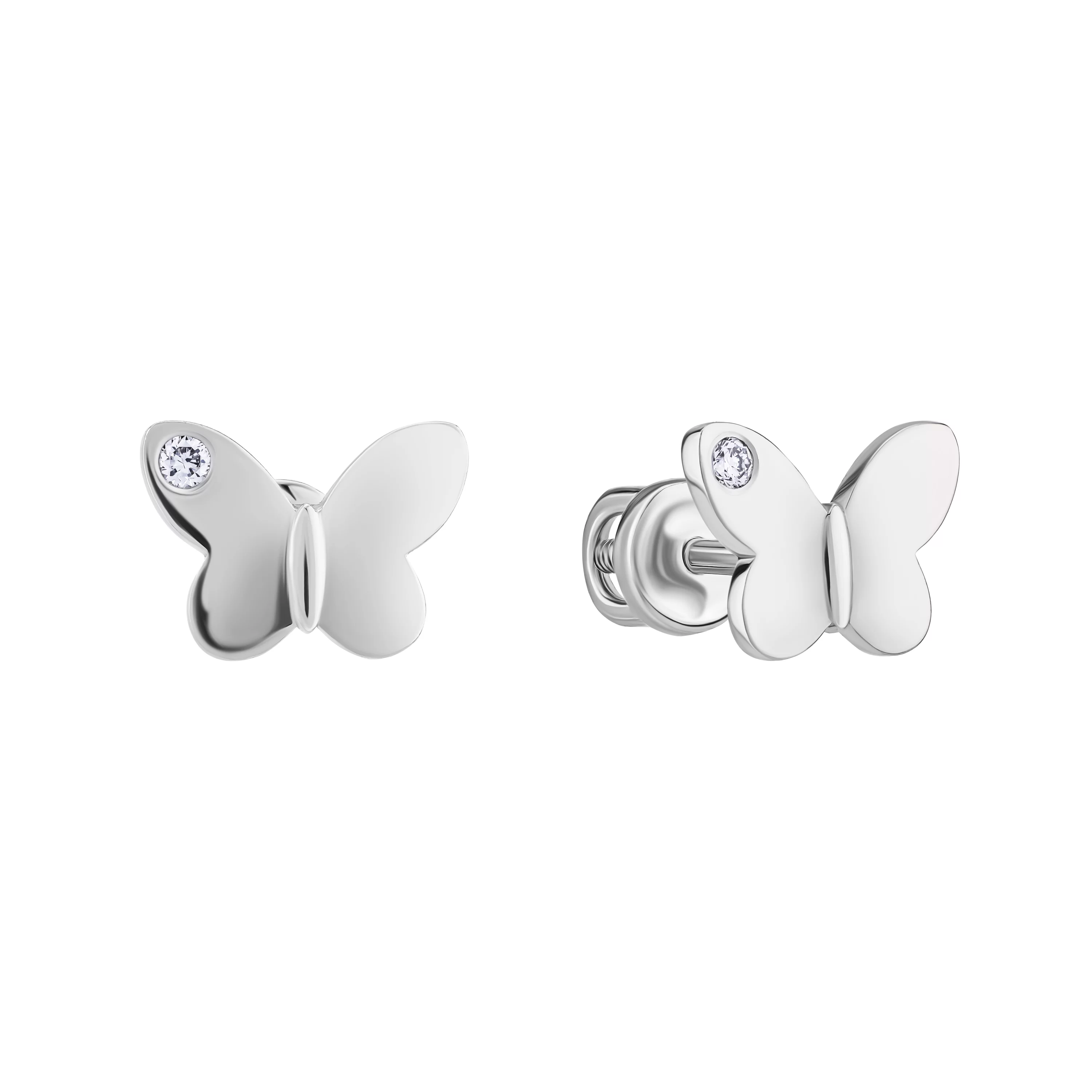 Сережки-гвоздики в білому золоті "Місячне Сяйво" з діамантами - 1707237