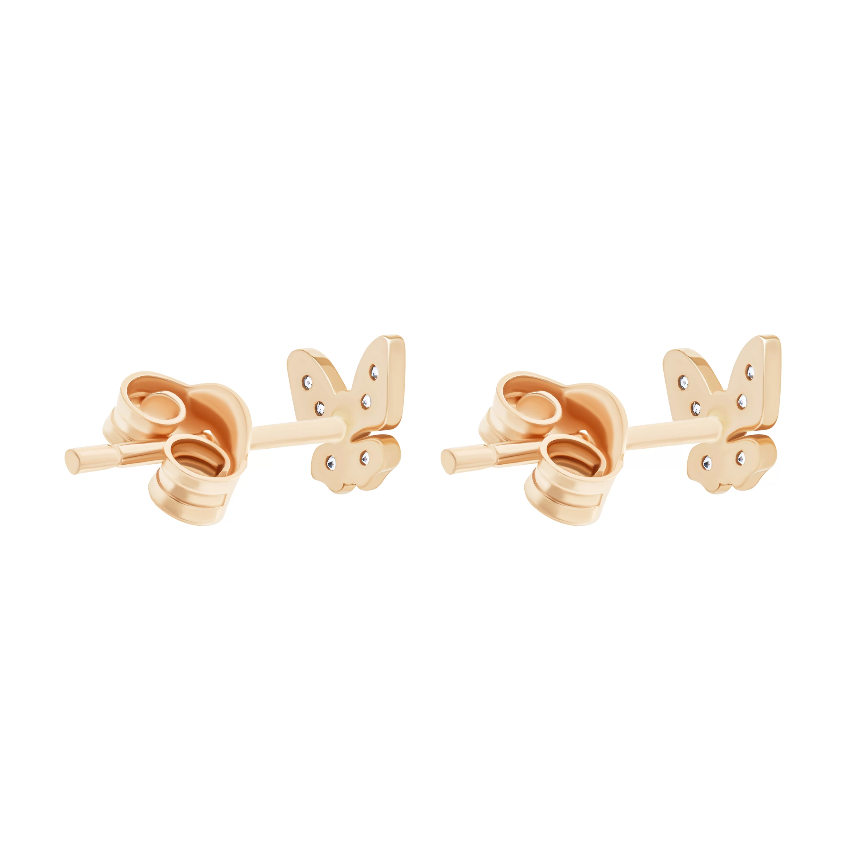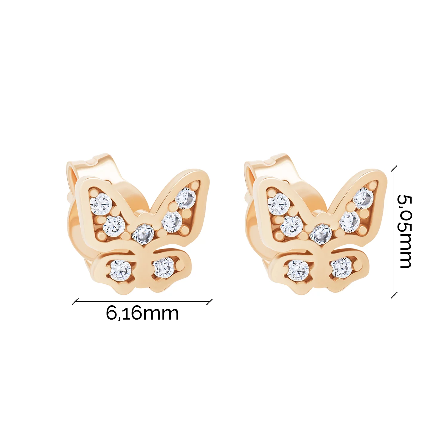 Сережки-гвоздики дитячі "Метелик" з червоного золота з фіанітами - 1782774