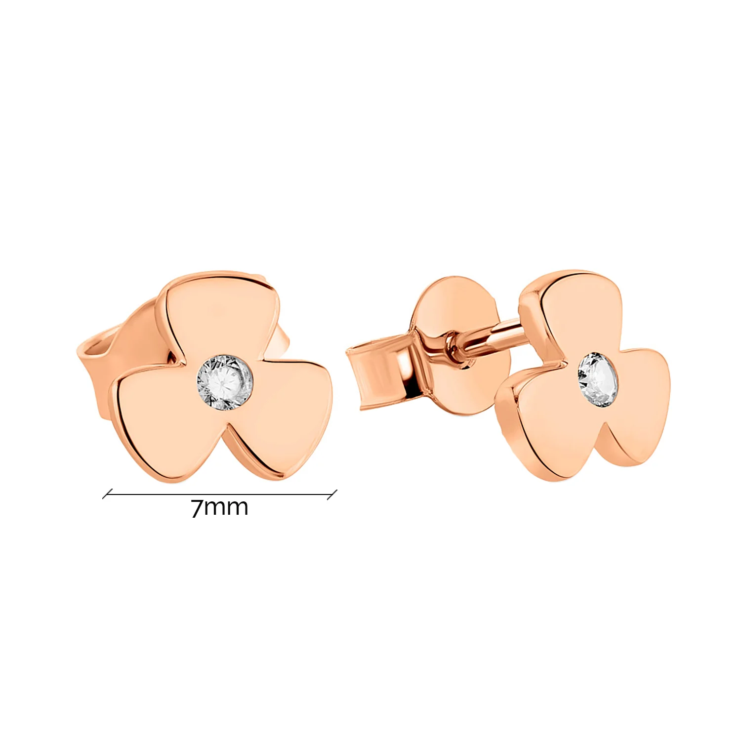 Сережки-гвоздки "Тризуб-Герб України" з червоного золота з фіанітами - 1922442