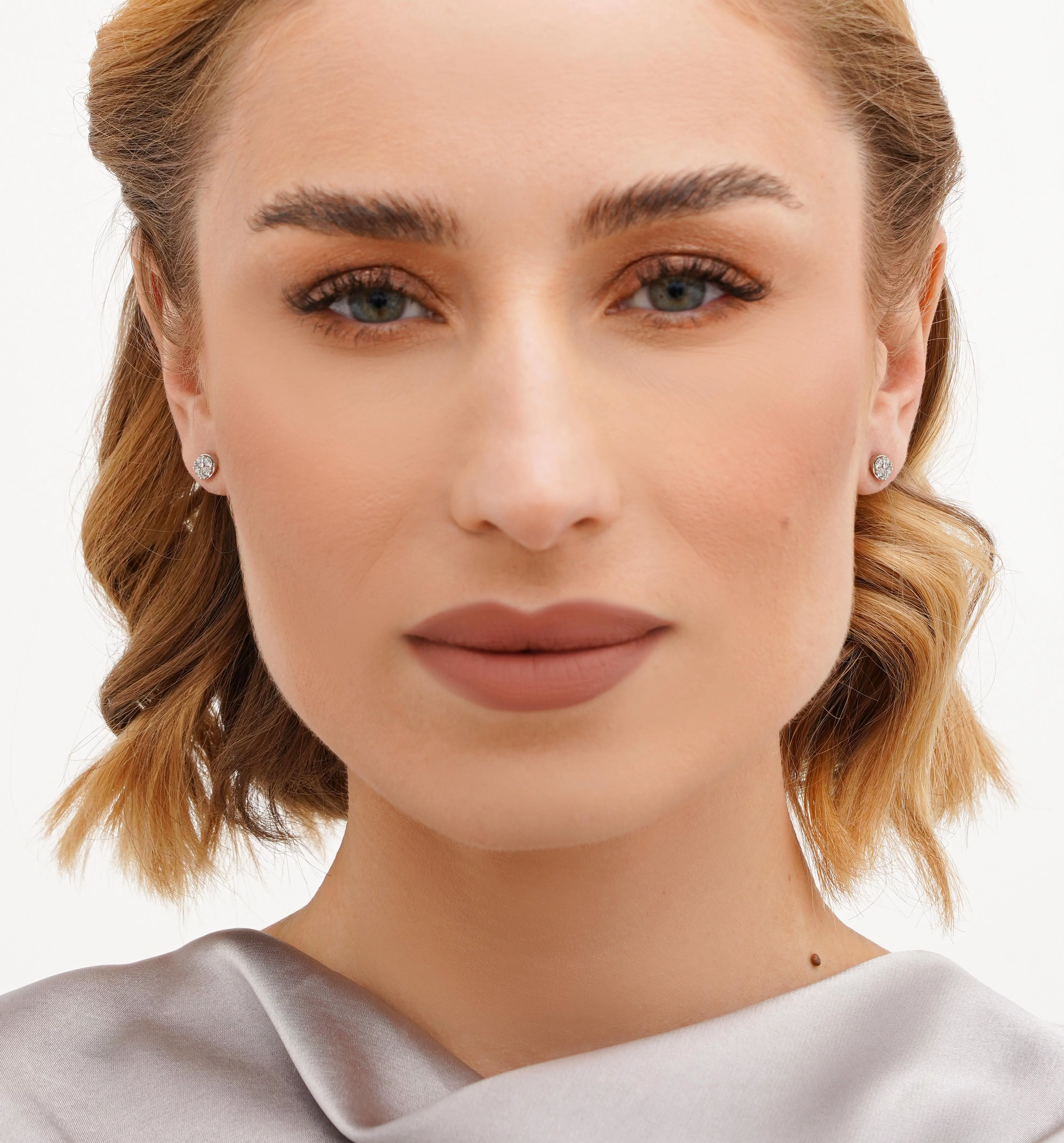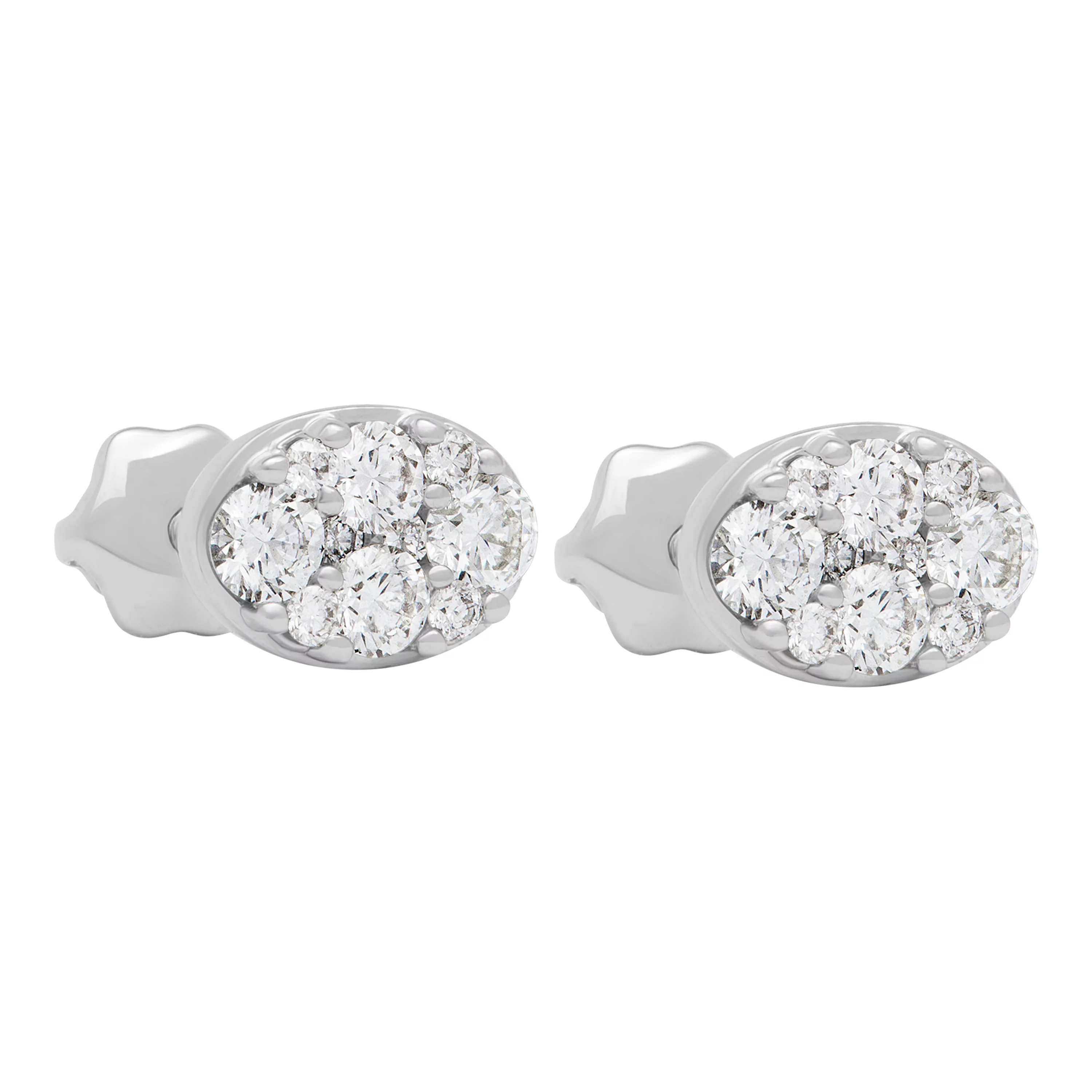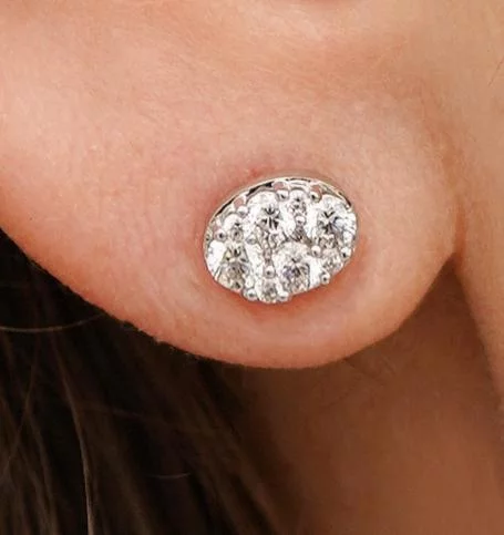 Круглі сережки-гвоздики з розсипом діамантів із білого золота - 1738517