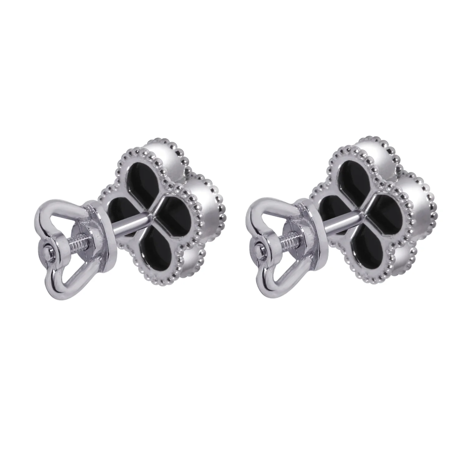 Стильні сережки-гвоздики "Конюшина" з червоного золота з оніксом - 1878296